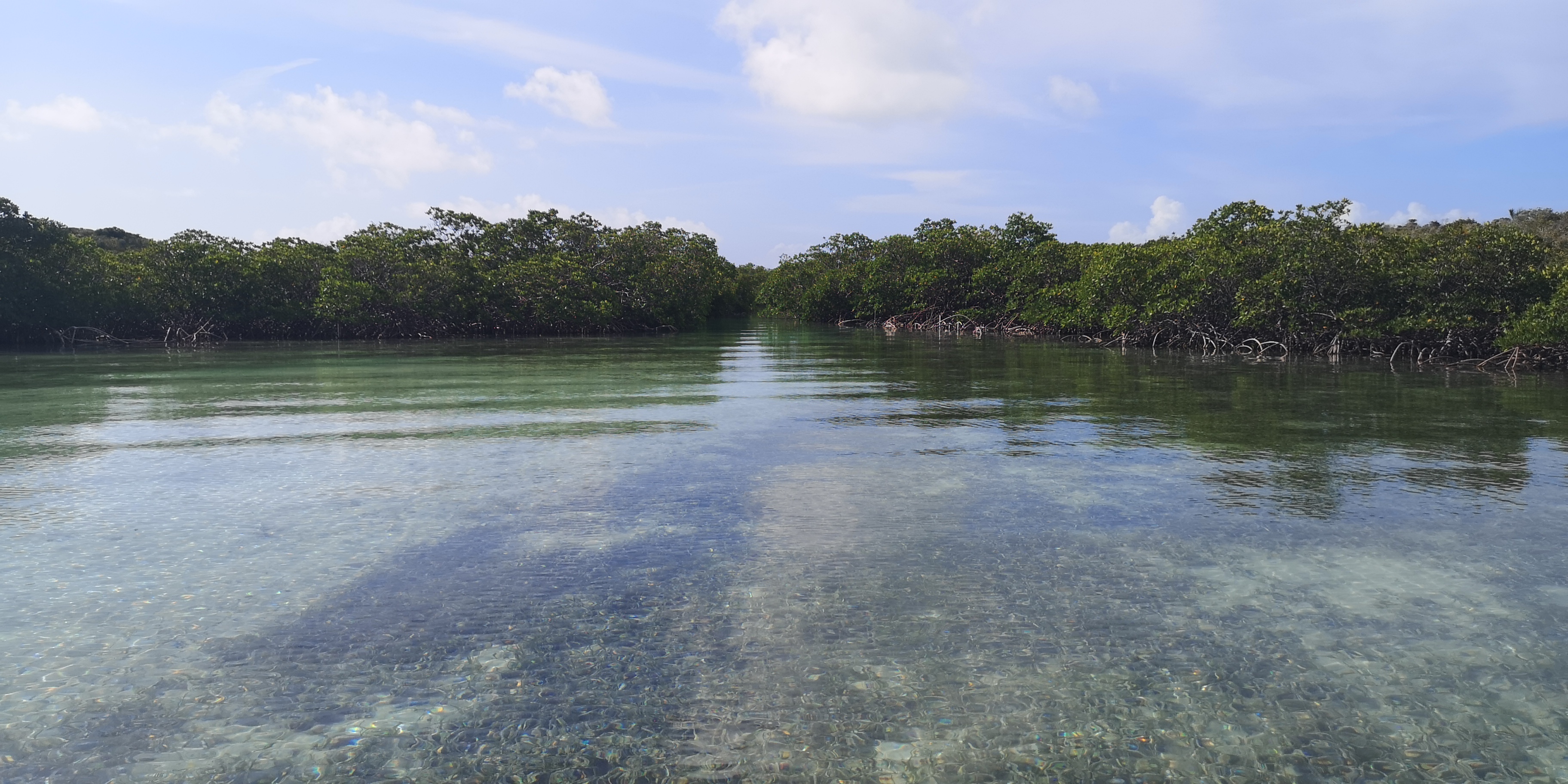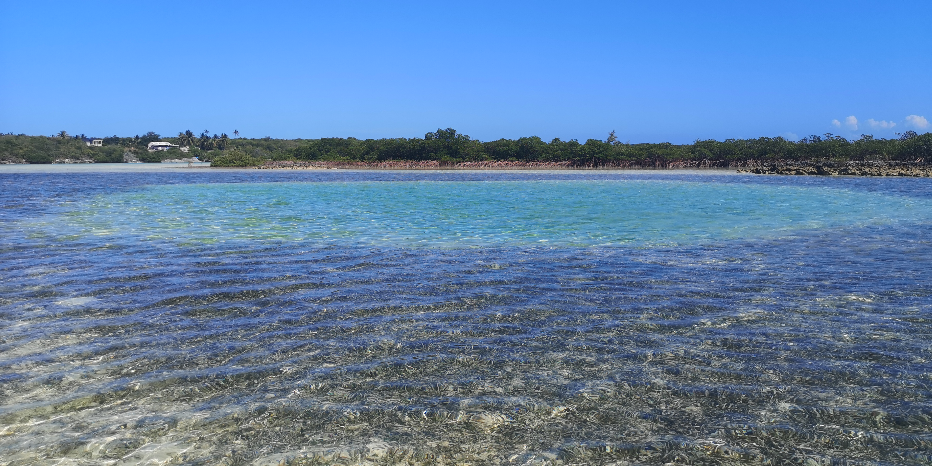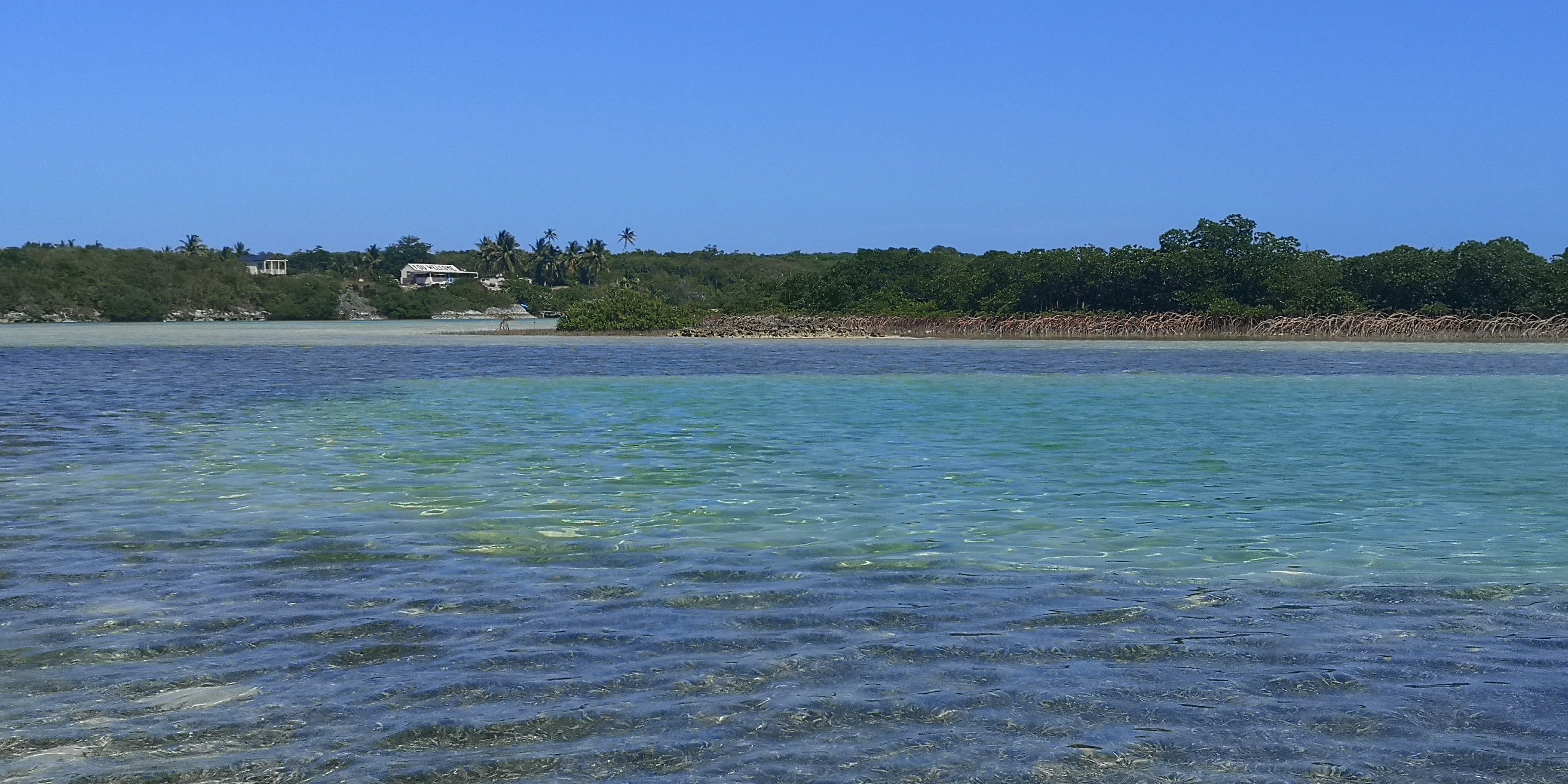 Bei Hochwasser können wir mit dem Dinghy über die Sandbank und einen Mangroven-Fluss befahren. Wir sehen Zitronenhaie und viele andere Fische, in der vorgelagerten Bucht unzählige Schildkröten.