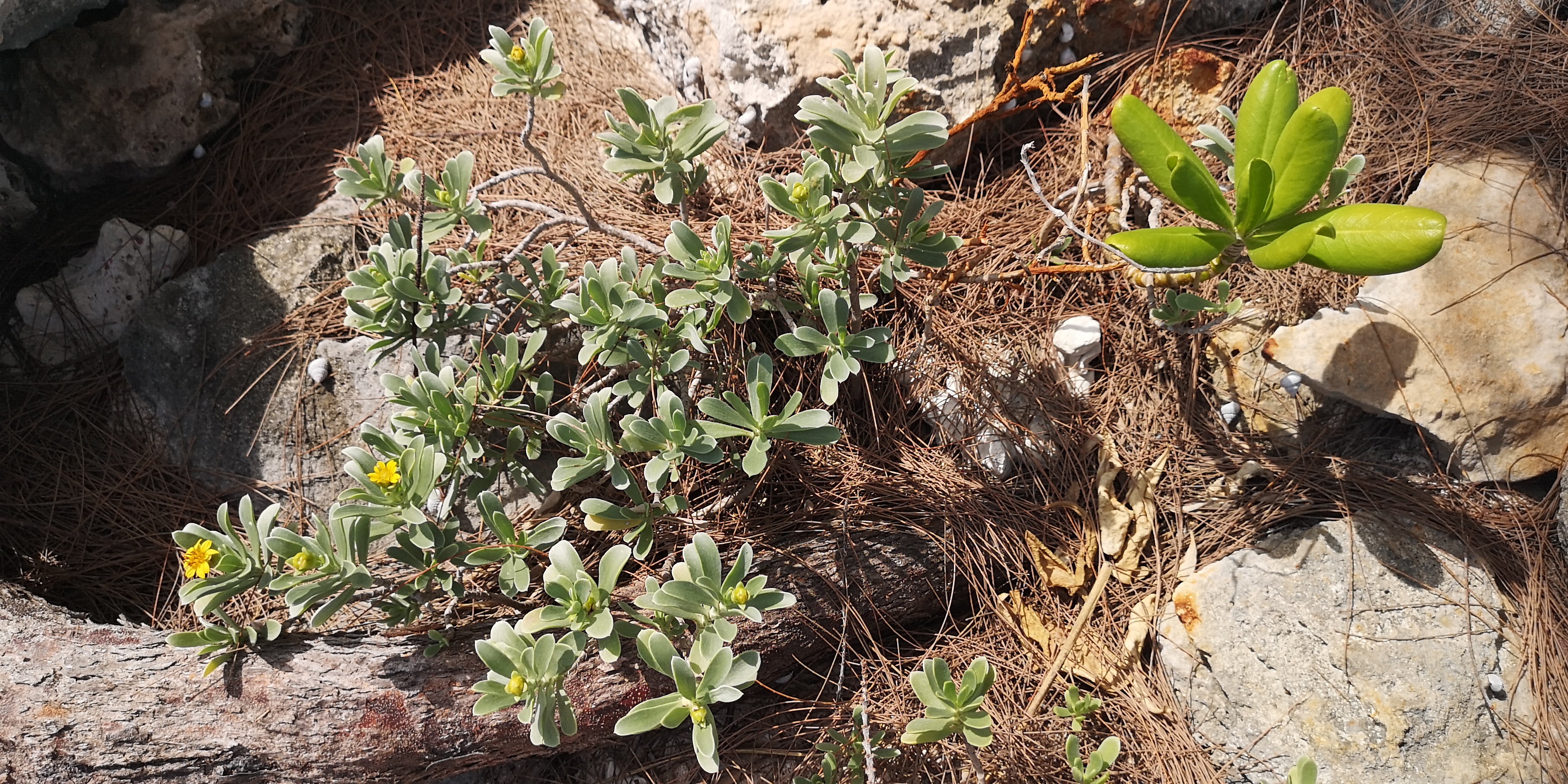 Wenn man dem ersten Trail folgt, findet man kurz vor Erreichen des Blue Holes einen orangen runden Marker in den Zweigen eines Busches auf der rechten Trailseite.