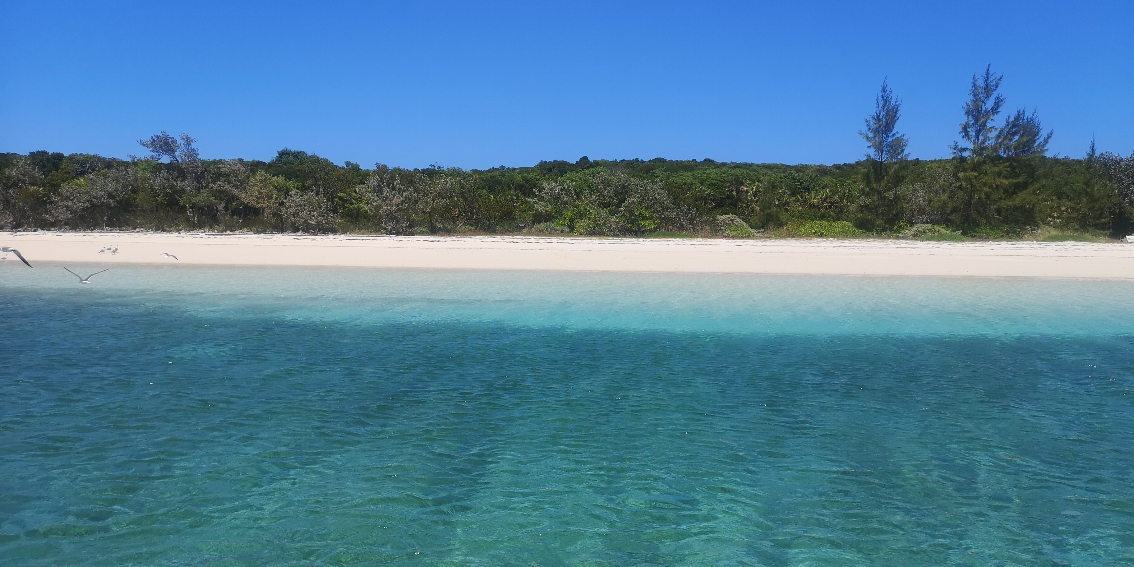 Wir sind umgeben von herrlichen Plätzen: White Cay hat einen sehr schönen Strand, von dem aus wir auf die Dünen hochlaufen können.