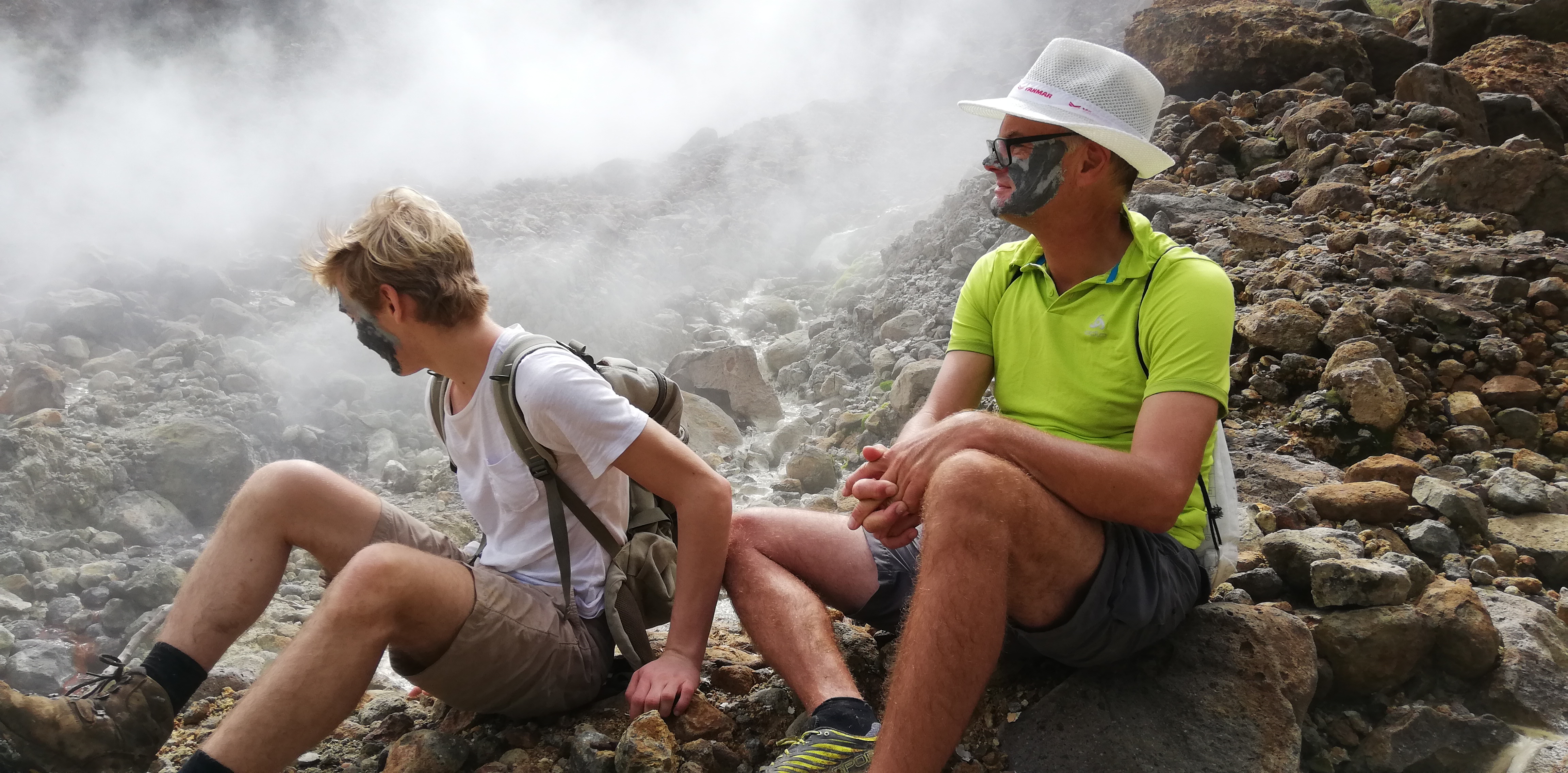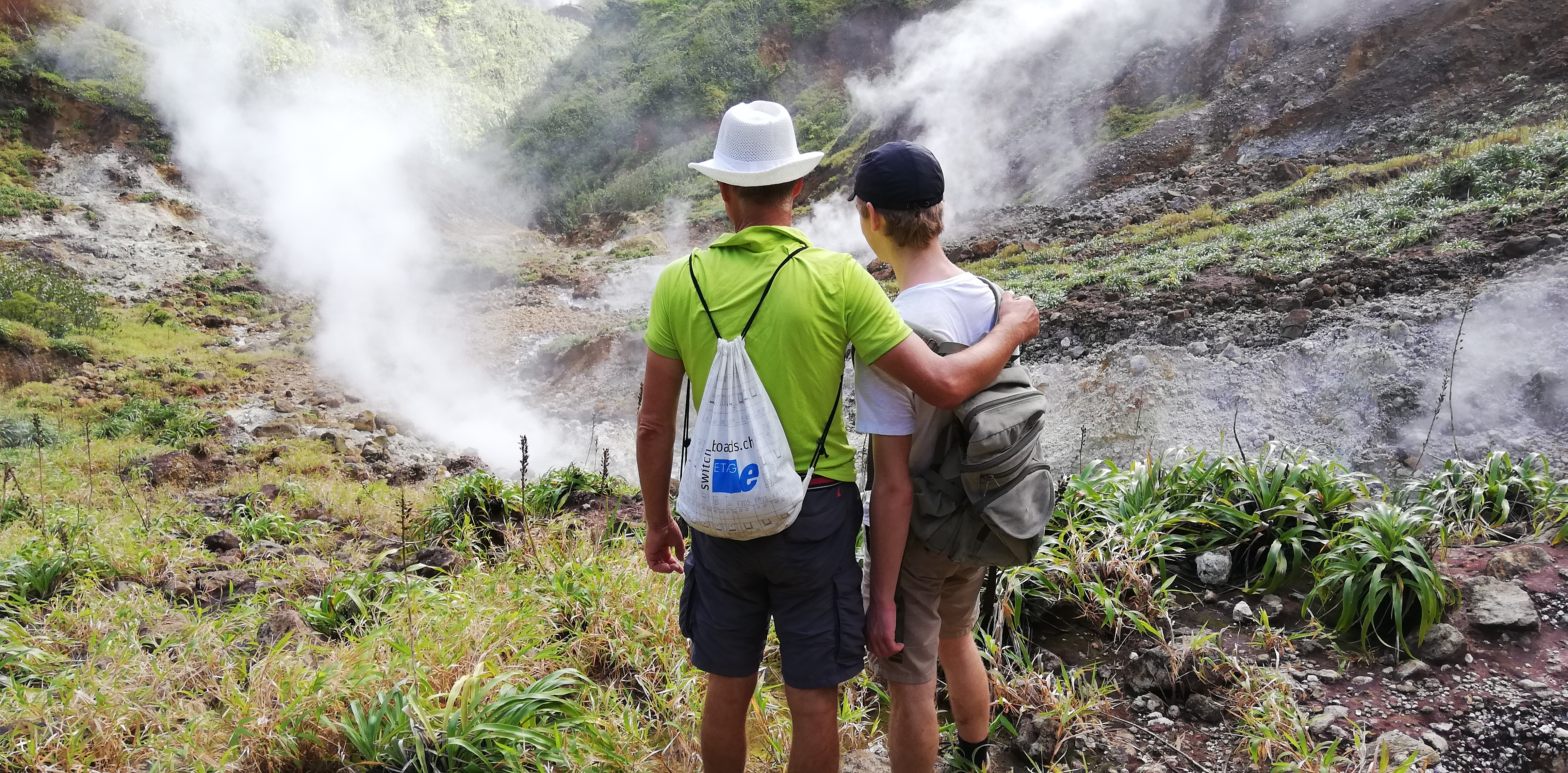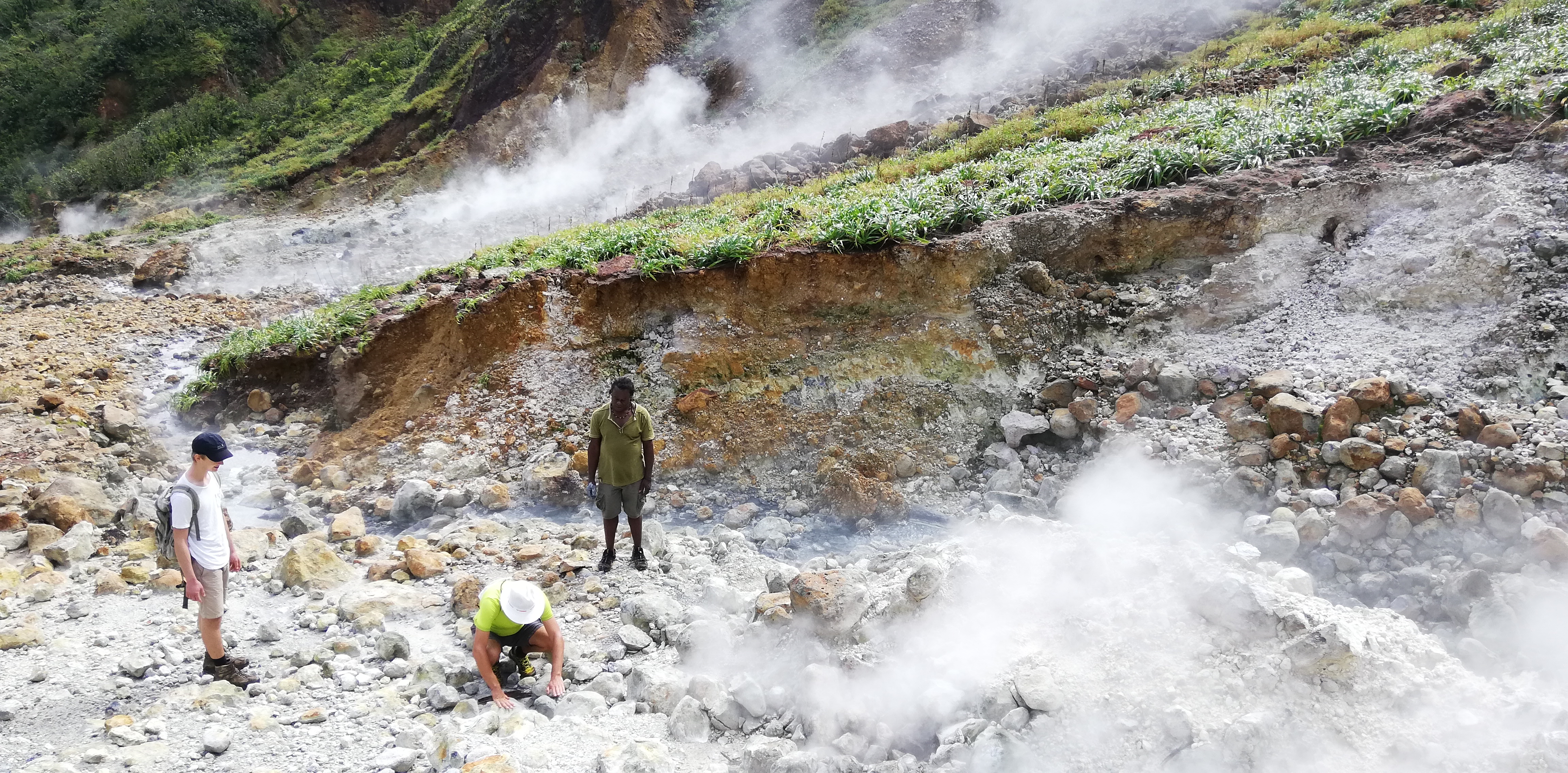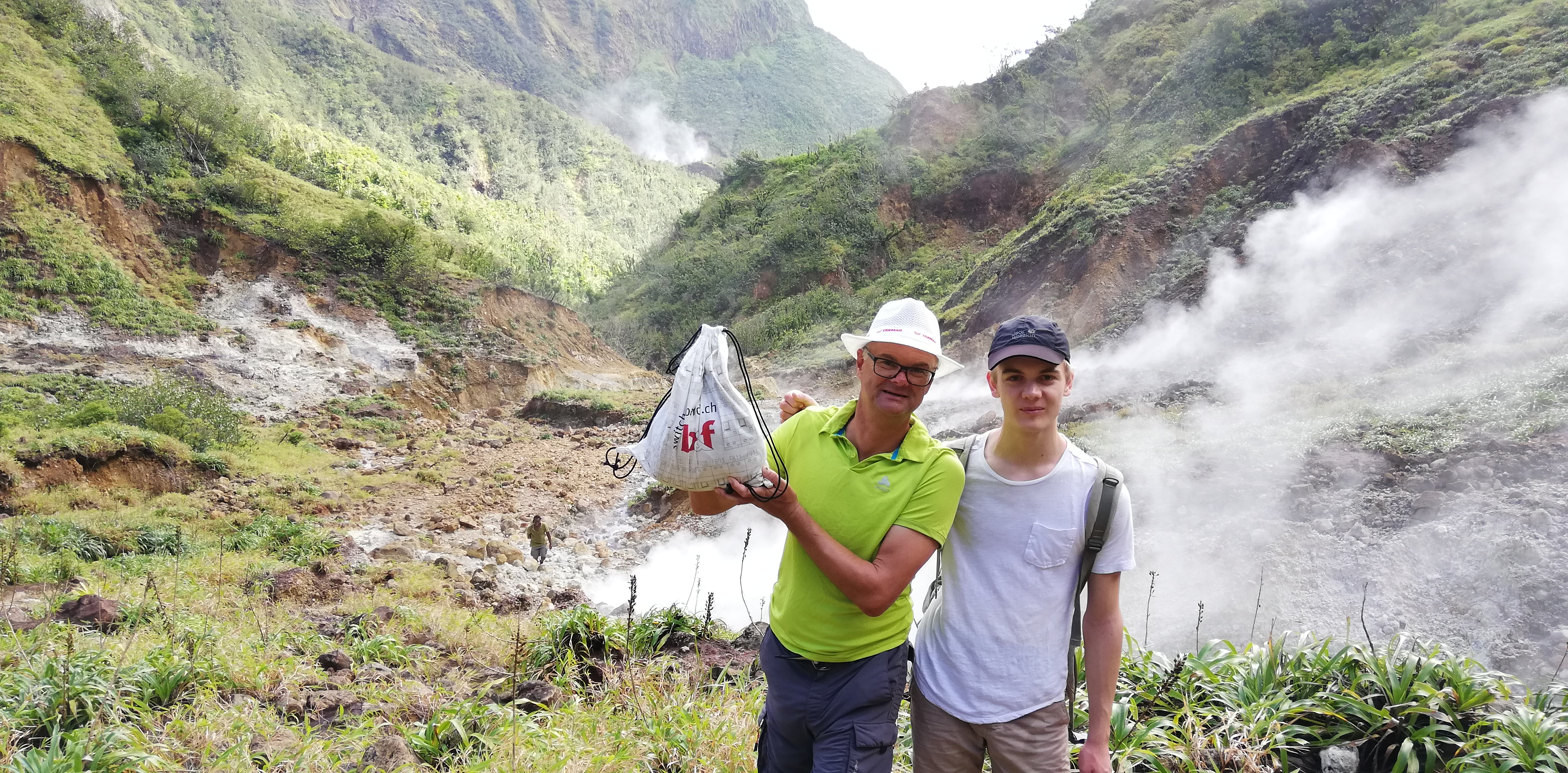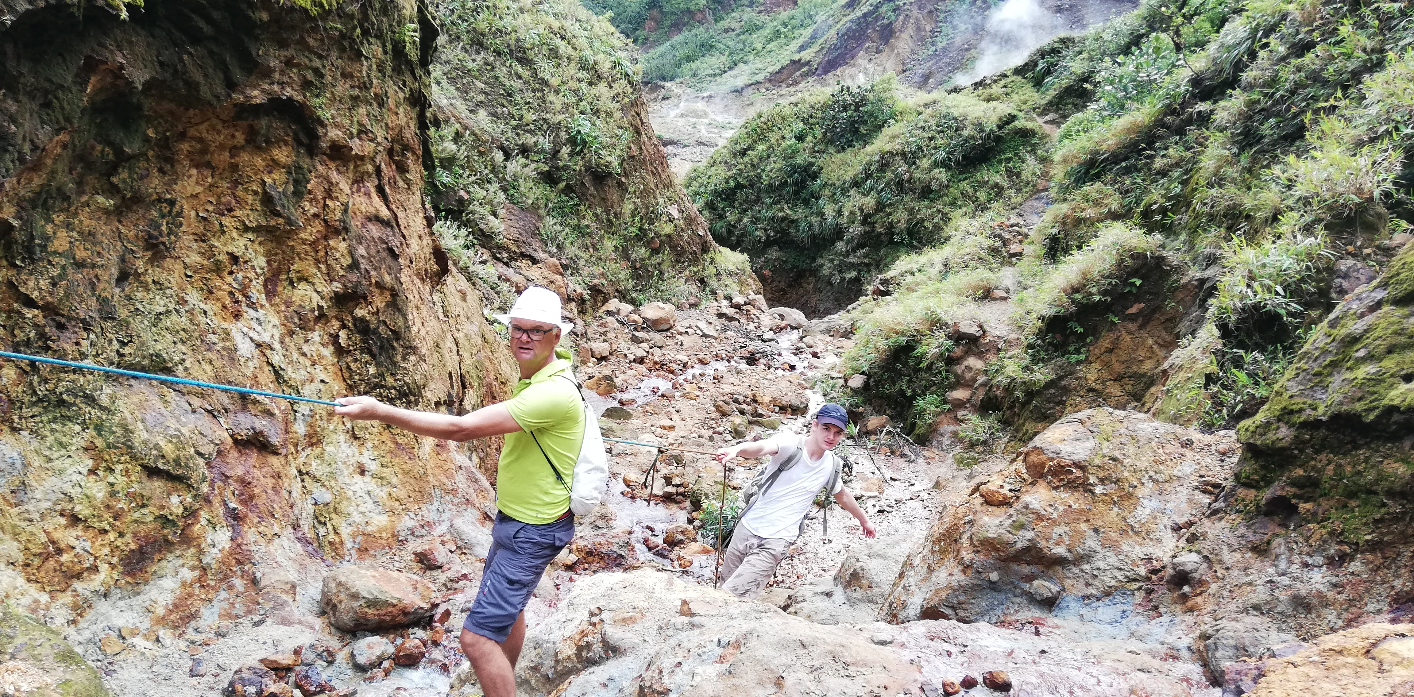 Titou Gorge-Schlucht von obenDer Trail zum boiling lakeDer Trail zum boiling lakeDer Trail zum boiling lakeMit ner Liane kommt man besser über den AbgrundDer Trail zum boiling lakeDer Trail zum boiling lakeDie Dampfschwaden des boiling lake kommen in SichtIm Desolation ValleyIm Desolation ValleyIm Desolation ValleyIm Desolation ValleyIm Desolation ValleySchlammaske. Soll verjüngend wirken…..Schlammaske. Soll verjüngend wirken…..Im Heisswasser gekochte Eier als ZwischensnackIm Heisswasser gekochte Eier als ZwischensnackIm Heisswasser gekochte Eier als ZwischensnackSohn & captain nehmen noch ein SchwefeldampfbadKlettereiennach 3 1/2h am Ziel: Der boiling lake kocht wirklich. 100 Grad Wassertemperatur!nach 3 1/2h am Ziel: Der boiling lake kocht wirklich. 100 Grad Wassertemperatur!