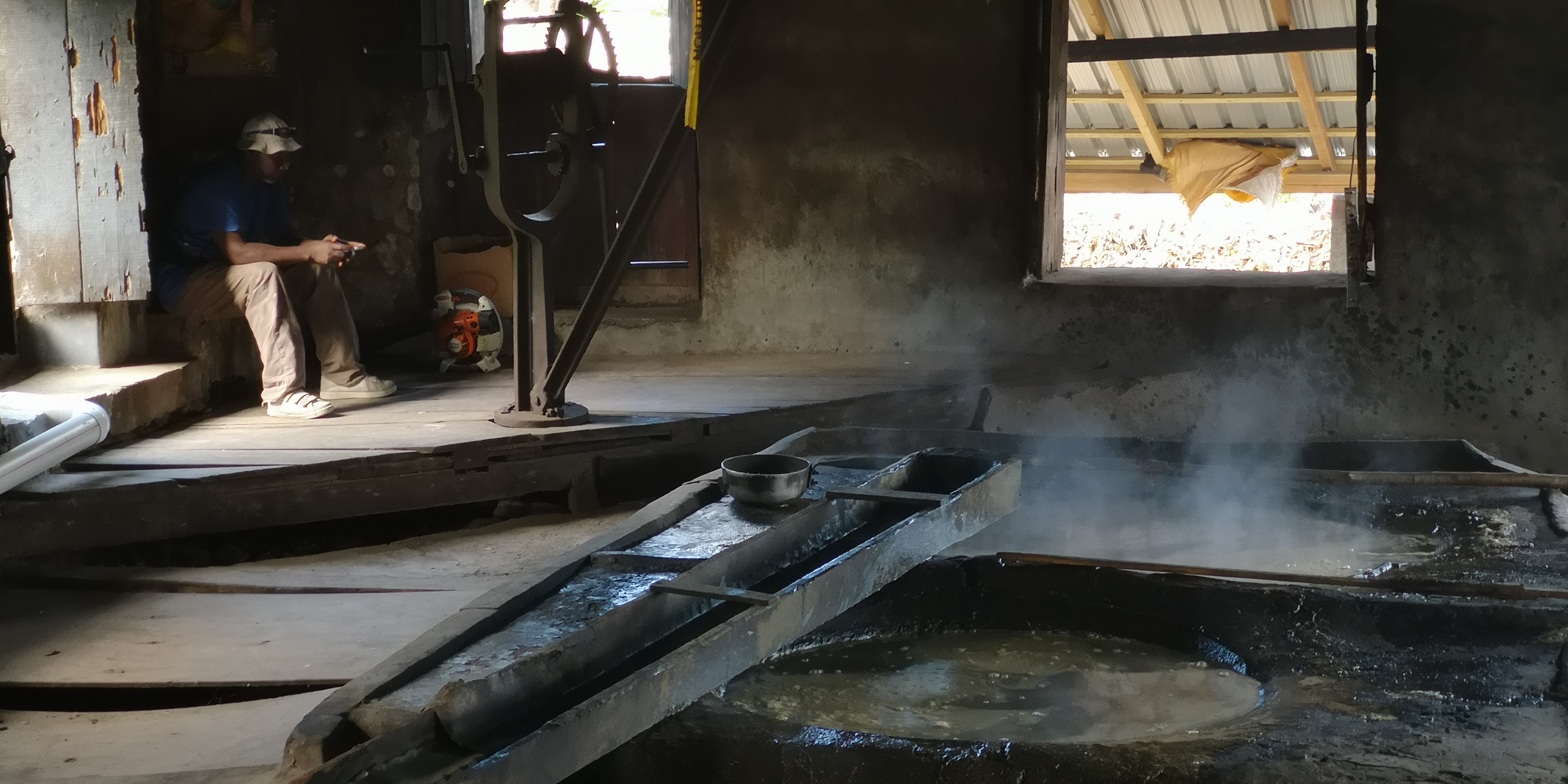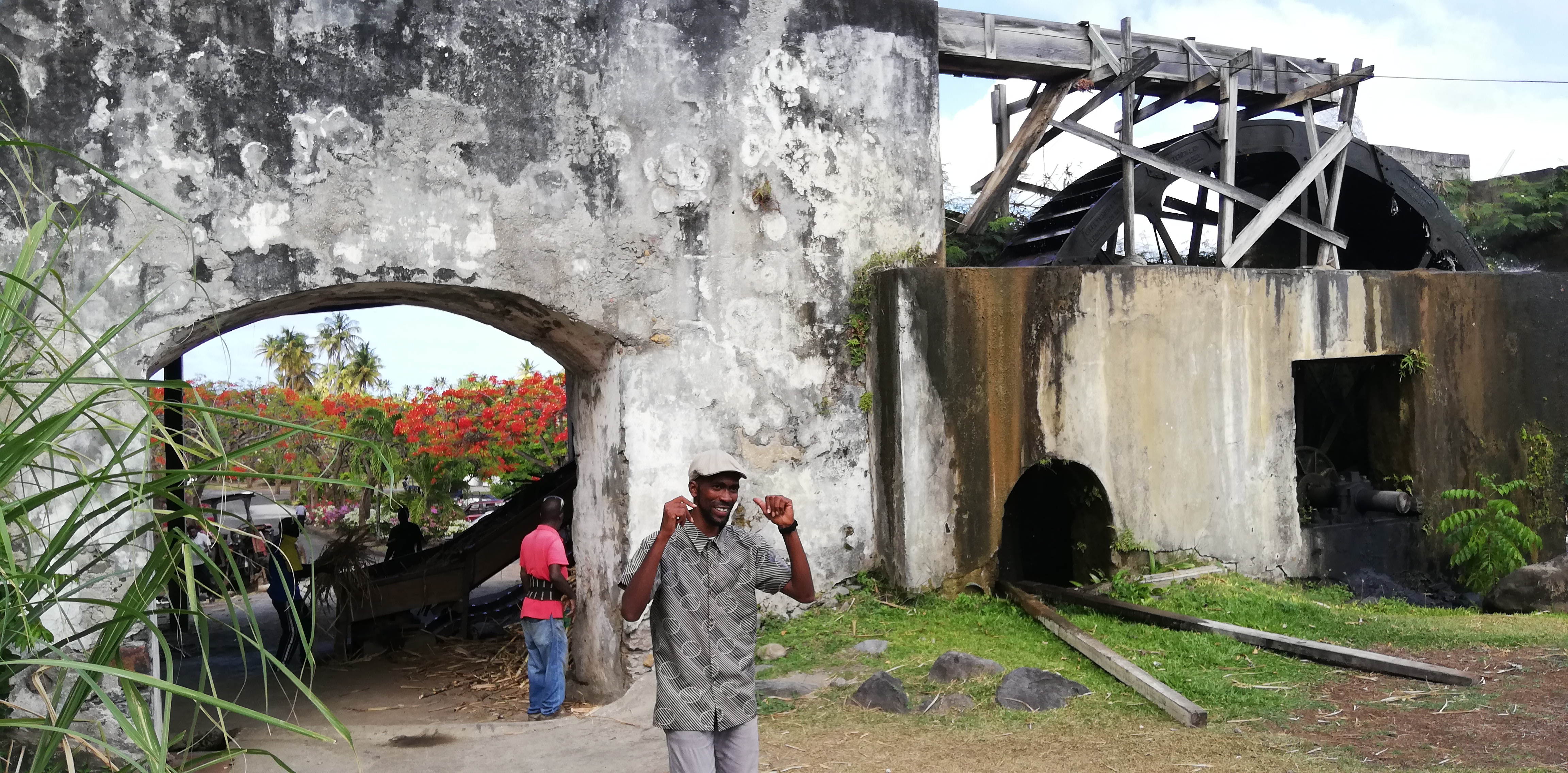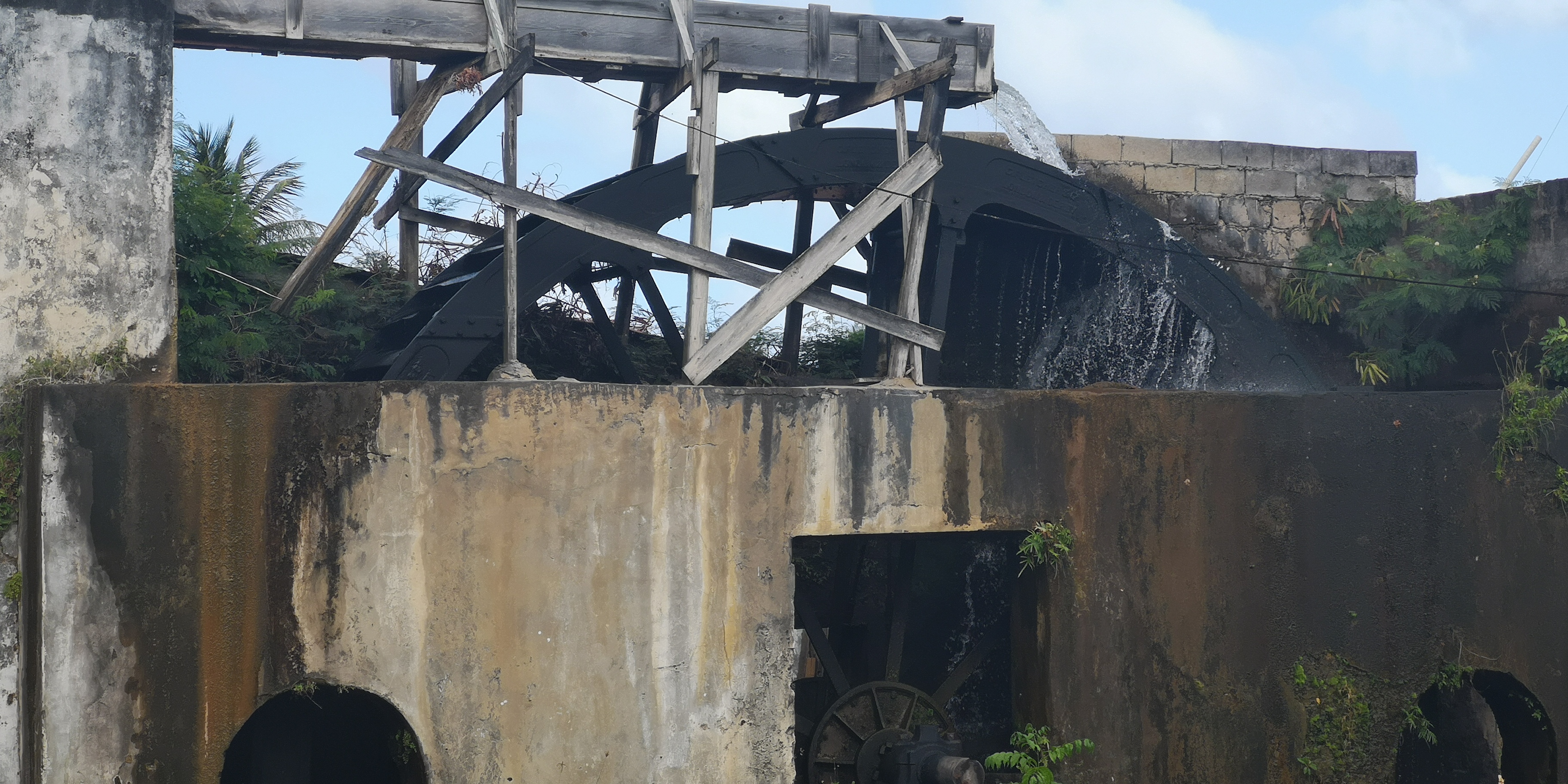 Wir waren in der ältesten Rumdestillerie Grenadas. Ganz nach herkömmlicher Art wird hier noch Rum gebrannt. Der Zuckerrohrsaft wird mit einer uralten, wasserbetriebenen Mühle ausgequetscht.