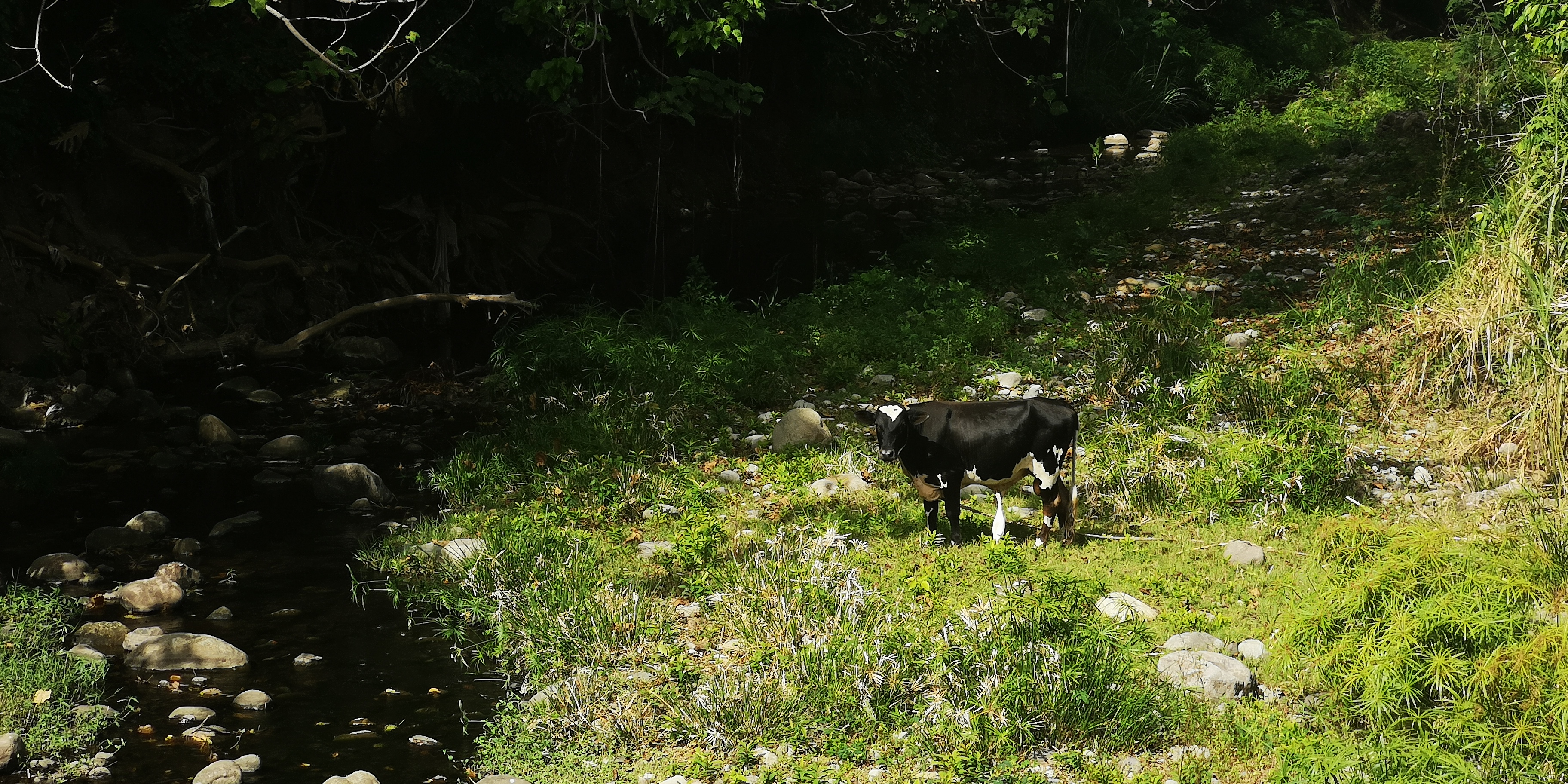 Privatgrund in VictoriaErklärung dazu: Kühe und teilweise auch Ziegen werden bisweilen zum Grasen angebunden (oft laufen sie allerdings frei, besonders die Ziegen).