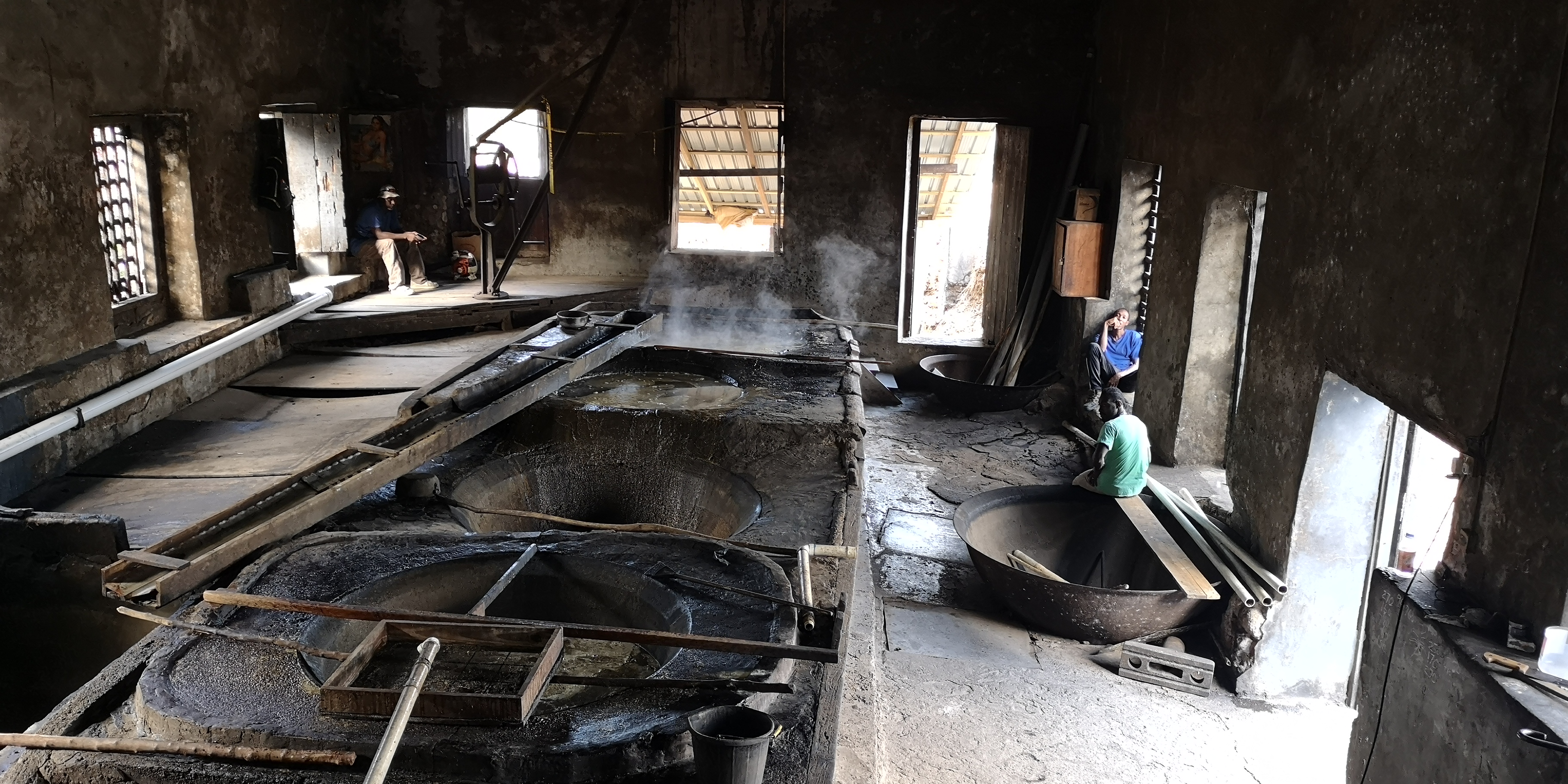 River Antoine RumdestillerieDestilliert wird mit Holzbefeuerung.