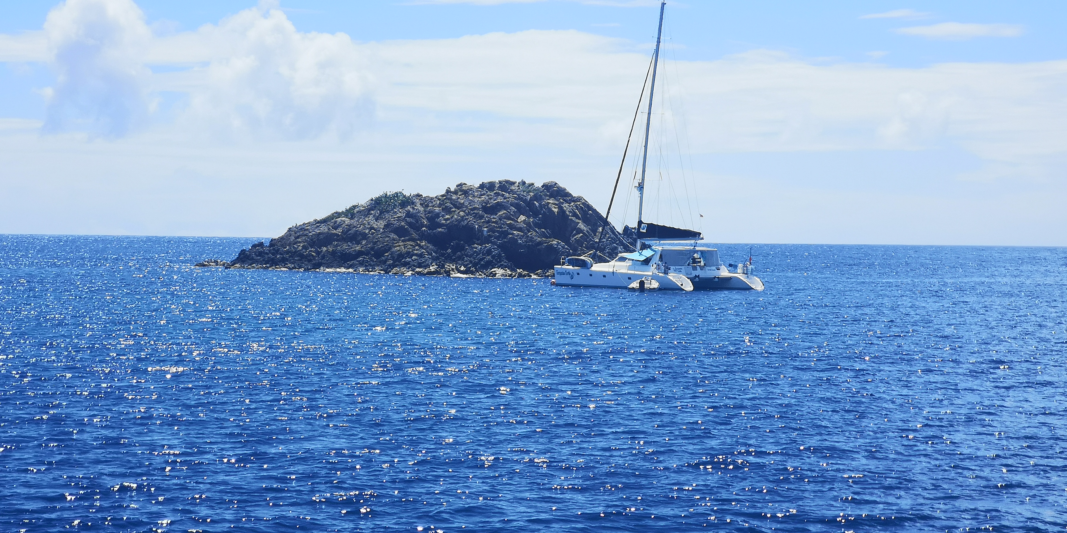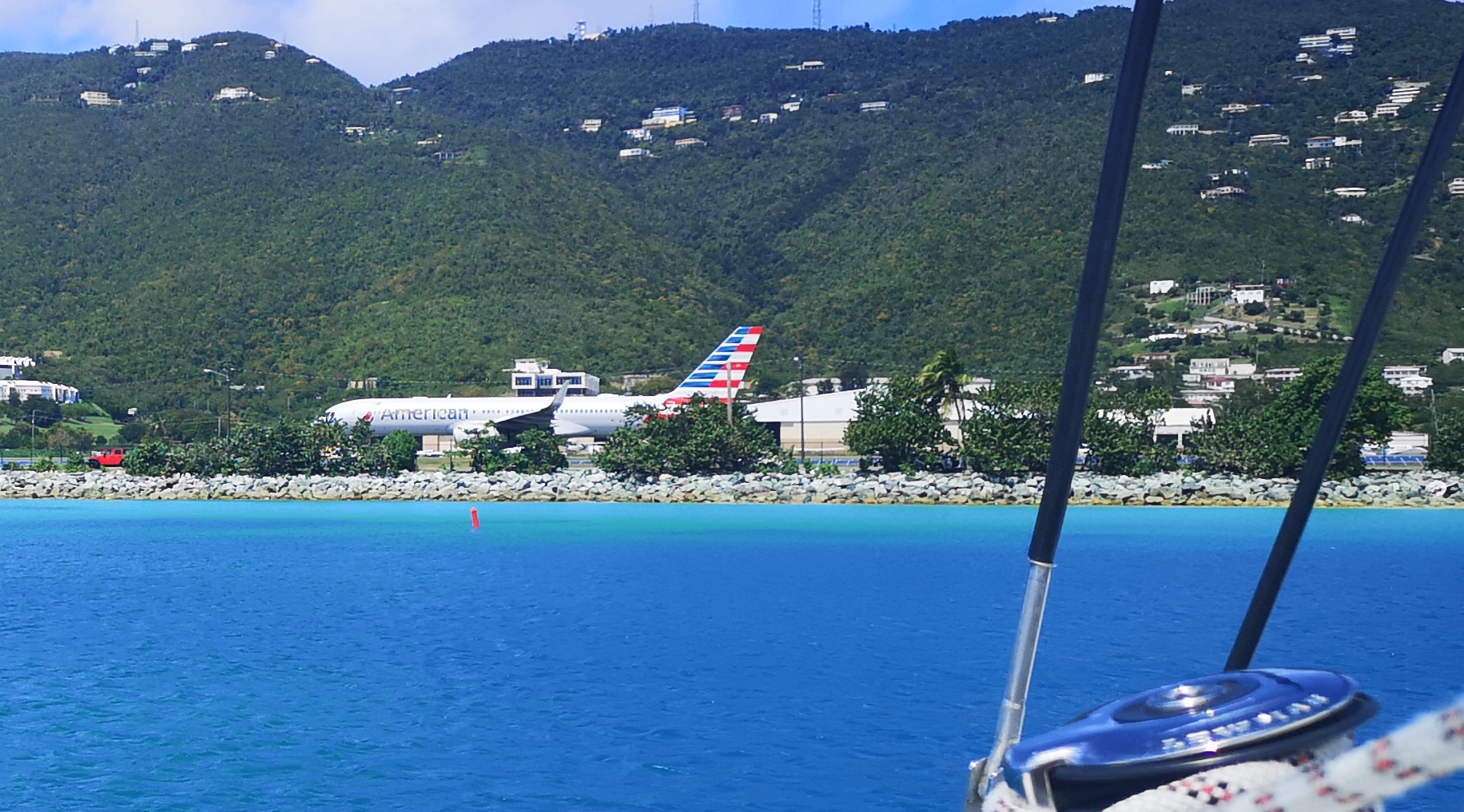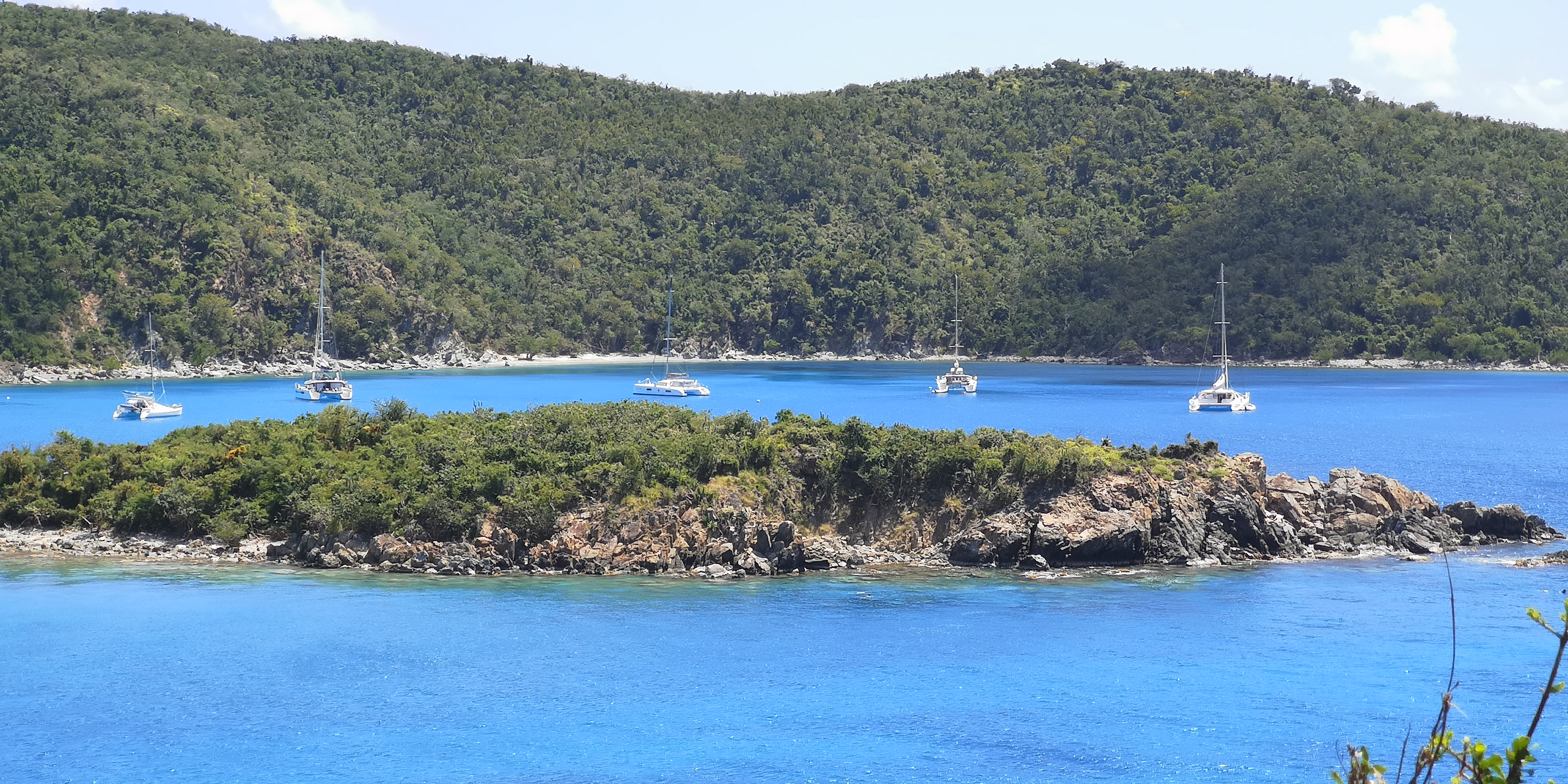 Zum Einklarieren und Verproviantieren darf man vor dem Hafen der Cruz Bay seitlich des Einfahrtskanals bis zu 3h ankern. Der Platz ist beschränkt und sehr flach (1,4 – 2,8m Wassertiefe), reichte aber bei unseren mehrfachen Aufenthalten. Nur wenig Kette stecken, damit auch andere noch Platz finden und der Schwojekreis limitiert ist – dann passen auch 2 Monohulls und 3 Kats rein. Mit INVIA lagen wir meist im Flachbereich und hatten noch 40cm Wasser unter den Kielen, was der captain mechanisch mit Bootshaken und elektronisch per Handsonar überprüfte. Alternativ kann man an Bojen nördlich des Ortes liegen. Die sind allerdings wegen des vielen Fähr- und Motorbootverkehrs nicht unbedingt ruhig.