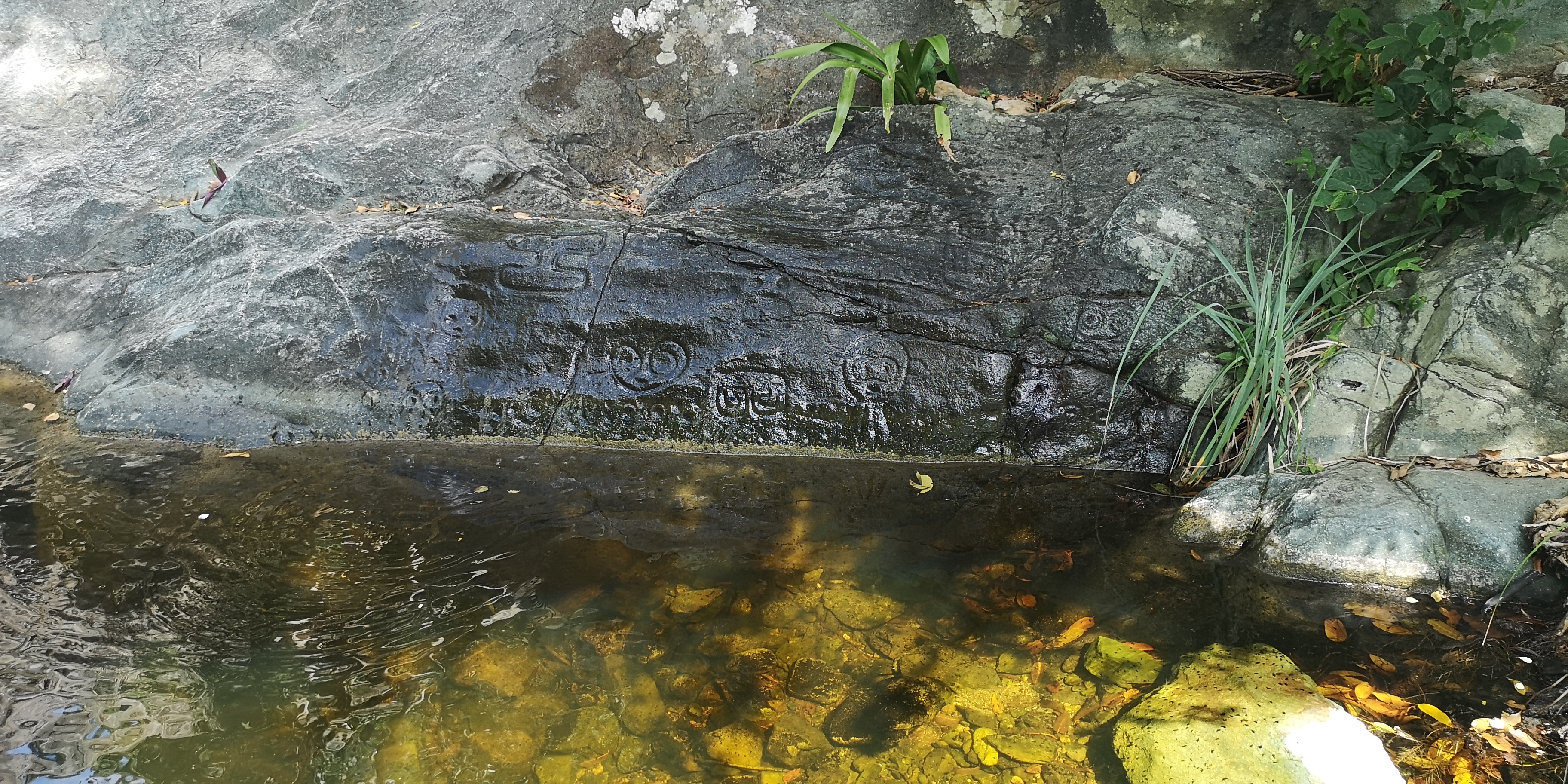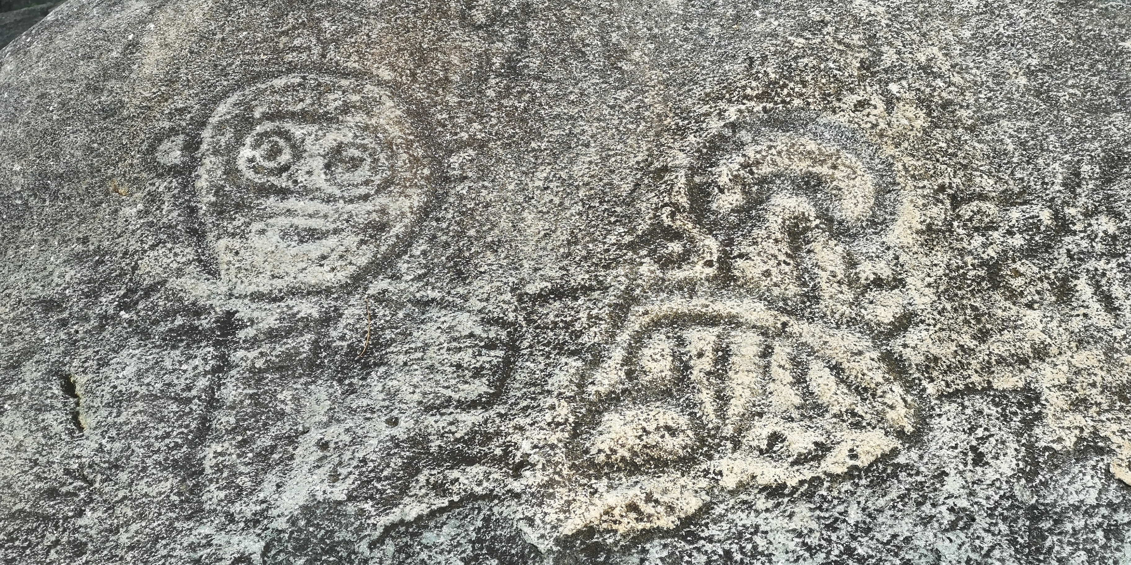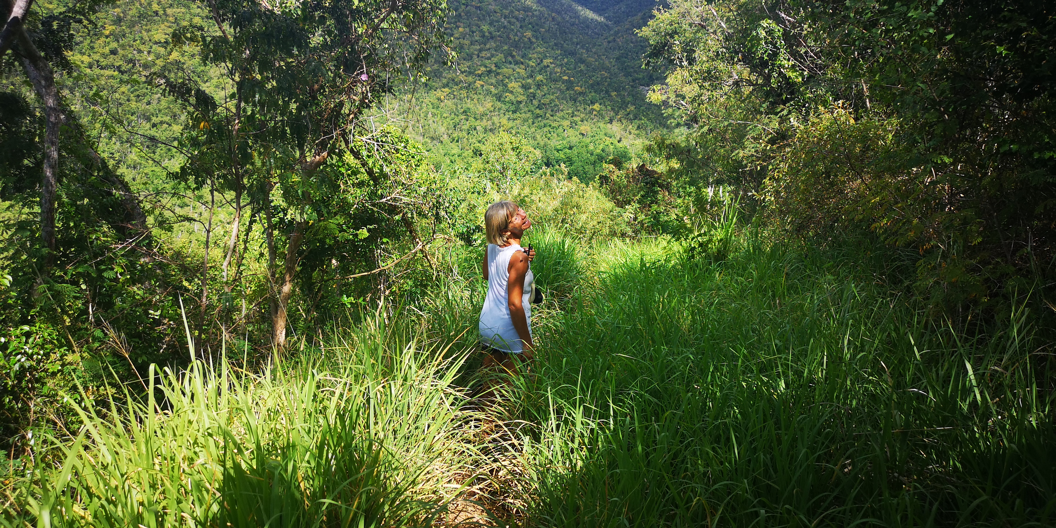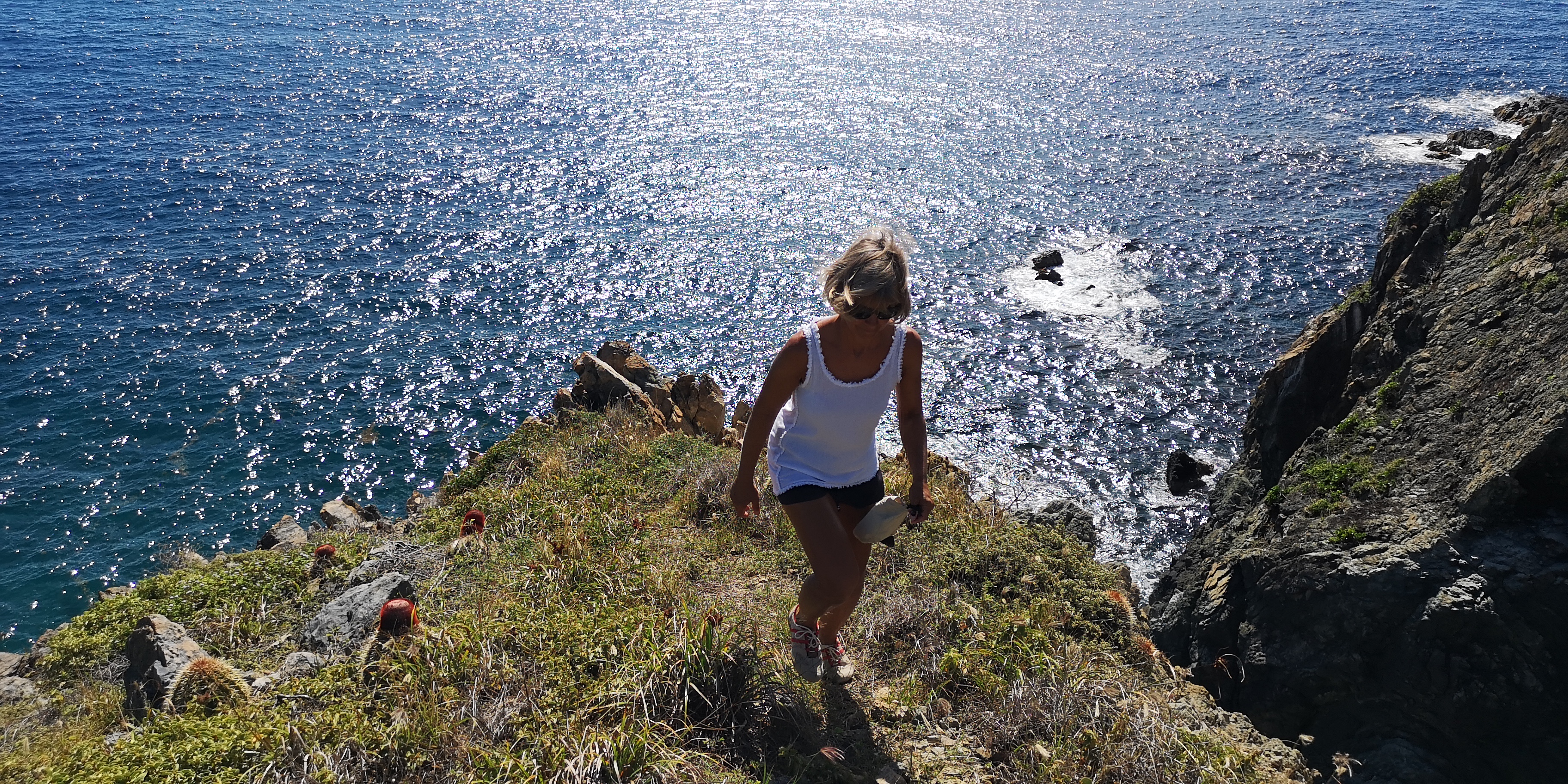 Die Wanderwege von der Lameshur Bay sind teils eingewachsen mit scharfkantigen Gräsern und dornigem Gestrüpp. Moskitos ärgern. Proviant gibt es nirgends zu kaufen. Was so wenig einladend klingt ist doch toll. Die Wege gewähren Einblicke in die Zeiten des Zuckerrohranbaus, von denen heute Ruinen der Plantagen zeugen. Heiß muss die Arbeit gewesen sein, wir schwitzen sehr beim Laufen. Der Petroglyph Trail führt zu Steinbildern der Ureinwohner, der Taino.