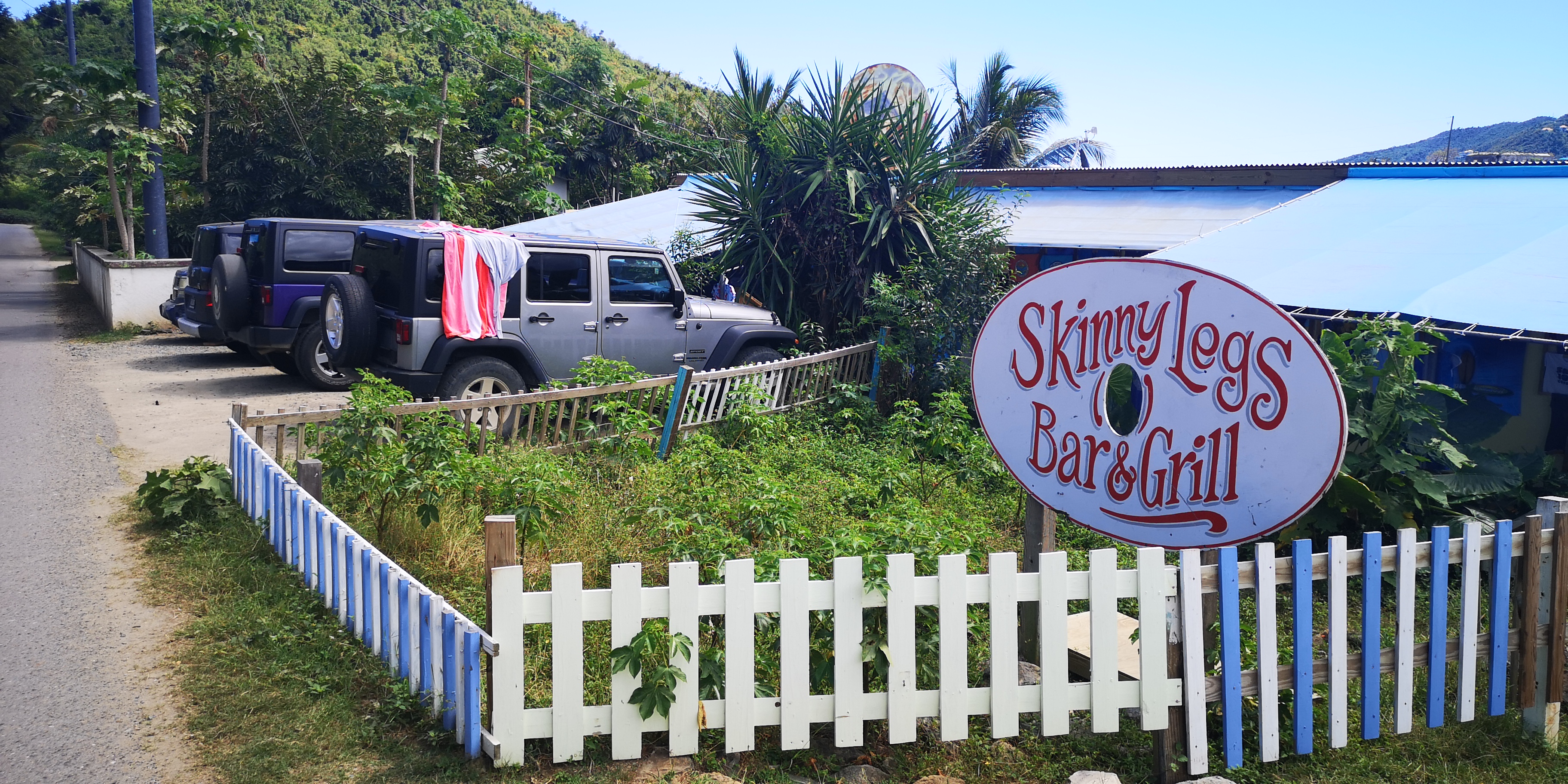 Coral Harbour beschreibt unser Führer als rustikalen Seglertreffpunkt. Tatsächlich liegen dort neben etlichen Cruisern auch ramschige, fast angewachsene Boote und hurrikangeschädigte Schiffe, wie man die sonst nirgends in den USVI sieht. Der Charme der Mangrovenbucht mit trübem Wasser, Floating Bar und der von Touristen überschwemmten Skinny Legs Bar springt auf uns bei unserem ersten Besuch am frühen Nachmittag nicht über. Allerdings hat die Bar einen großen Vorteil, nämlich schnelles WiFi. Angesichts schlechter Netzabdeckung in den südlichen Buchten von St John ein Plus für Coral Harbour.