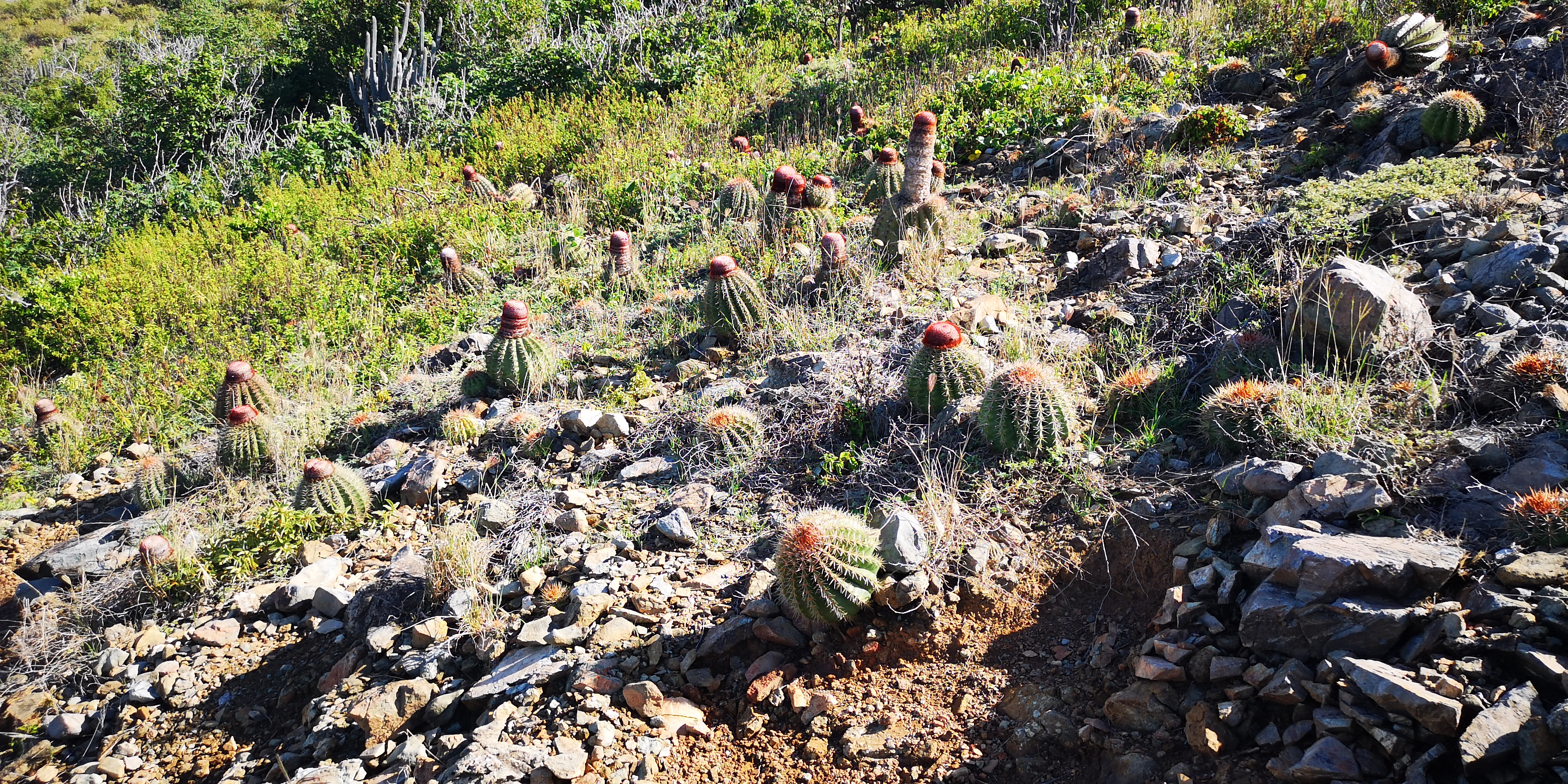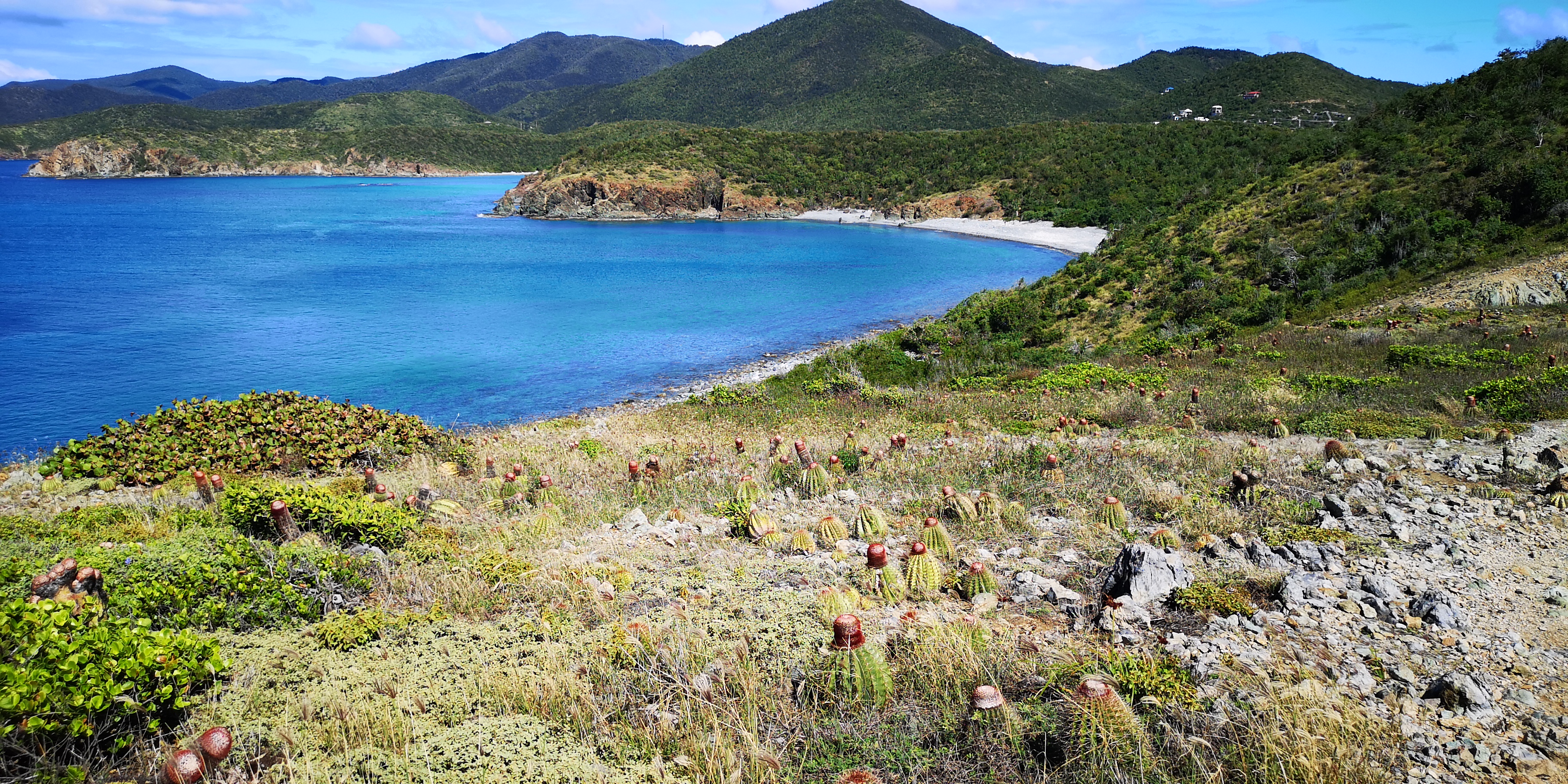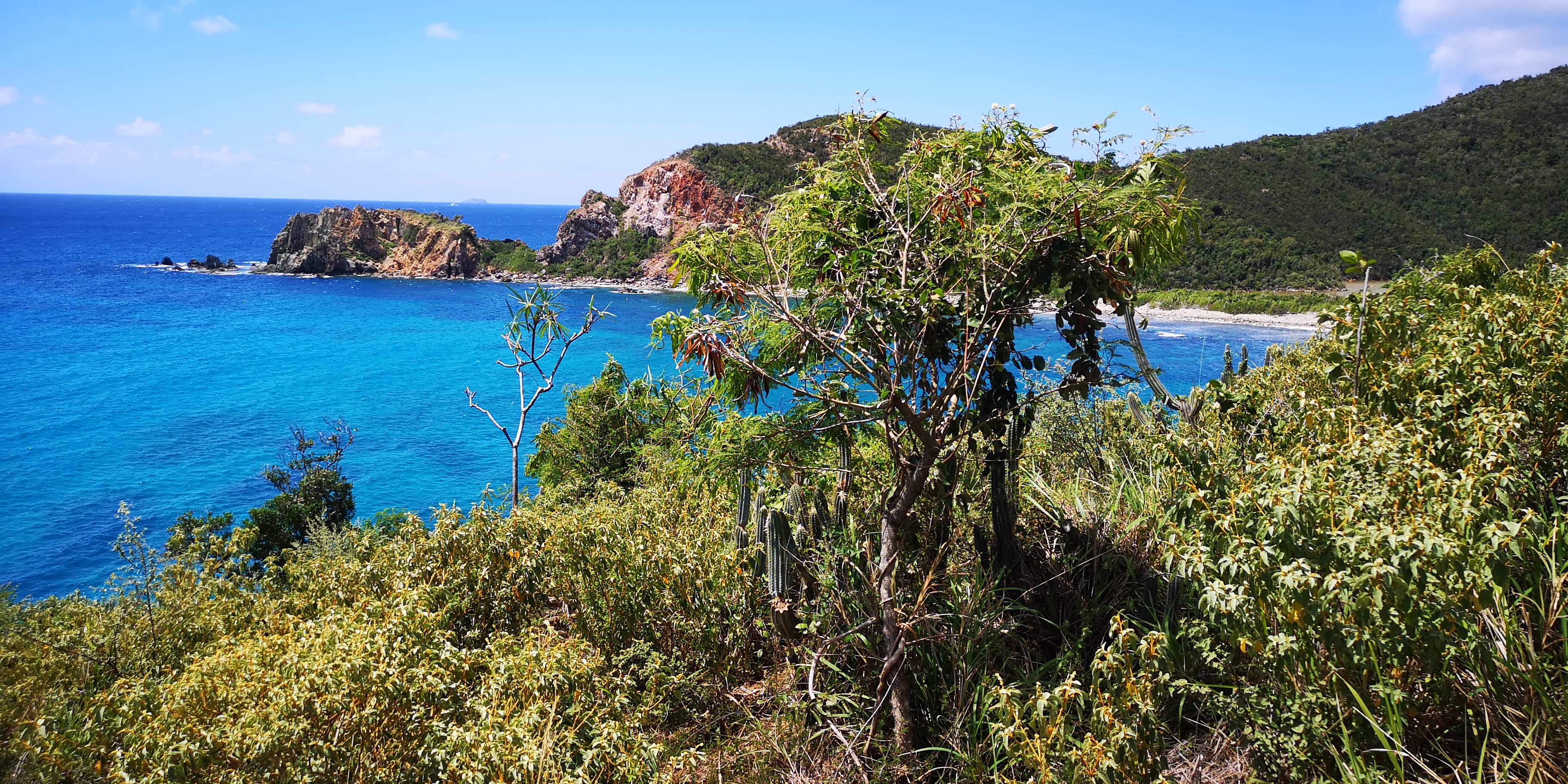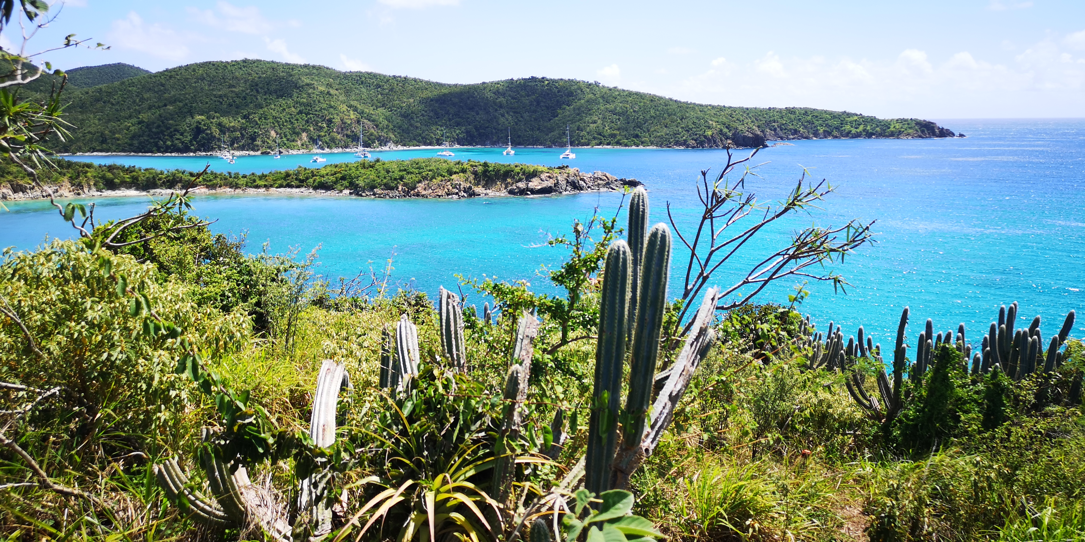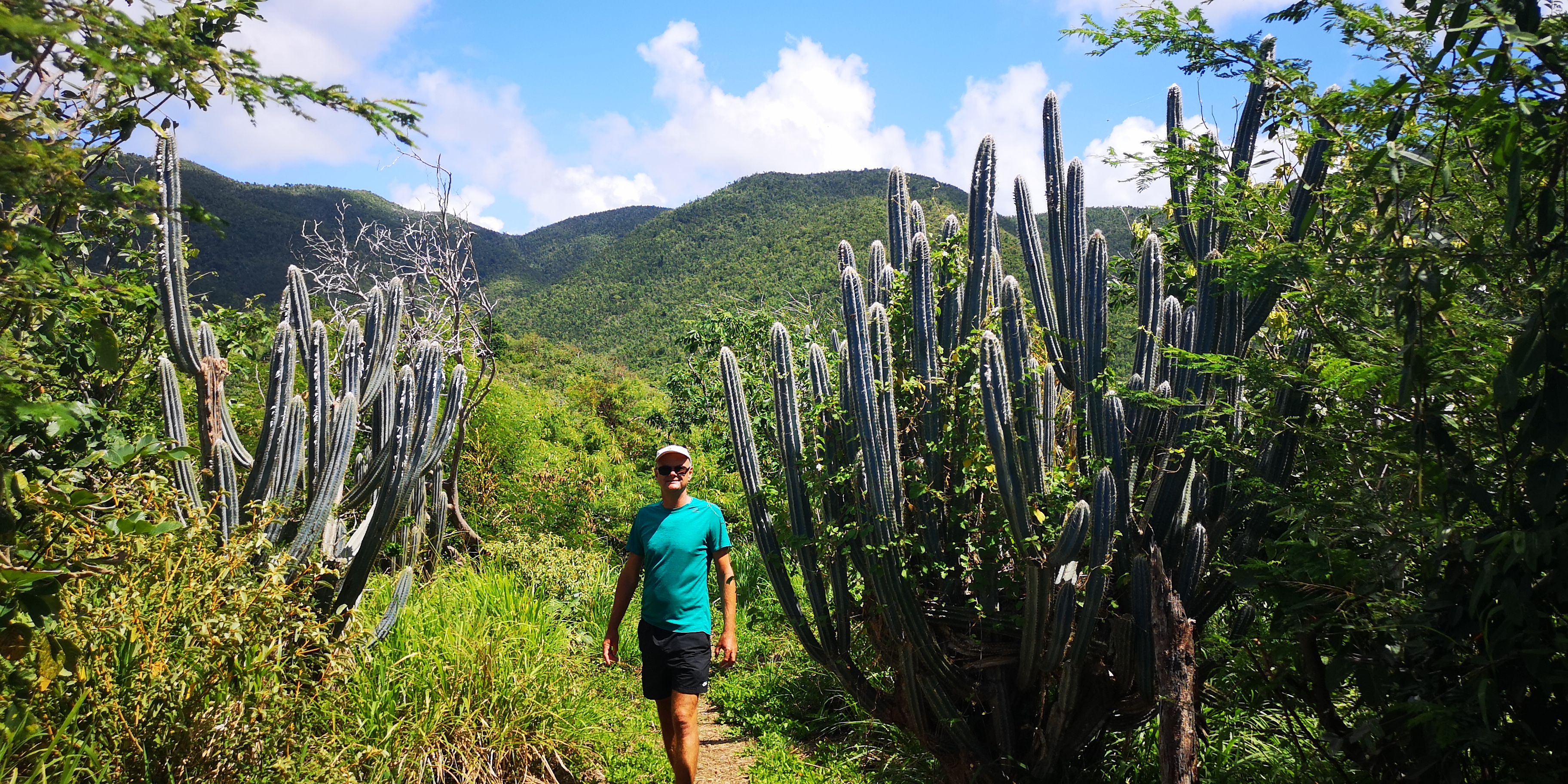 Kakteen in Baumgröße sehen wir beim Wandern in der Lameshur Bay. Die beiden Lameshur Buchten sind gute Ausweichlösungen, wenn in der Salt Pond Bay alle Bojen belegt sind.