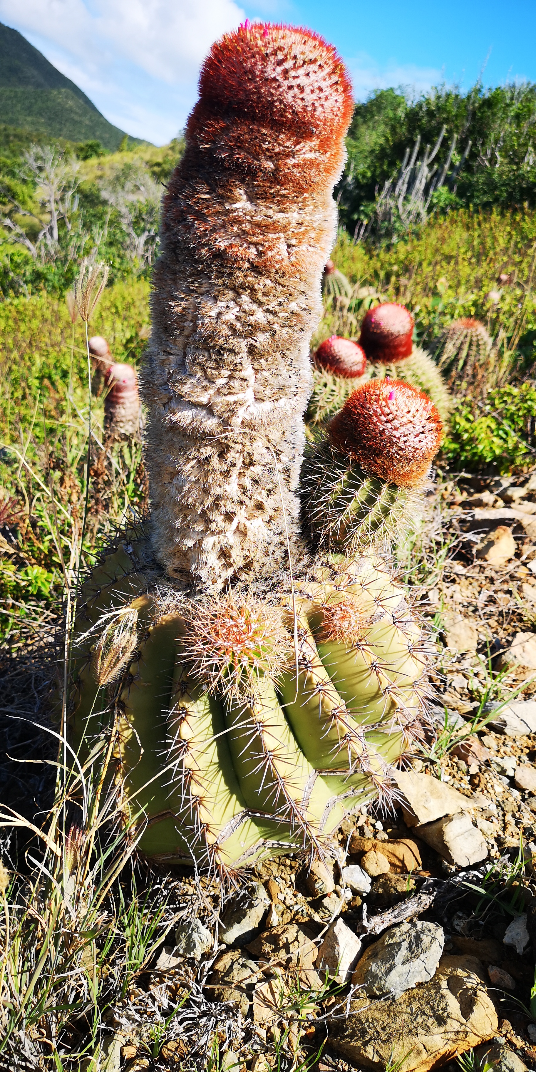 Daran vorbei geht mit herrlichen Aussichten ein Weg hoch auf den Ram Head, ein Kap. Dort wachsen am Hang Kakteen in Massen wie bei uns Bergblumen. Eine sehr andere Vegetation hier als in der südlichen Karibik.