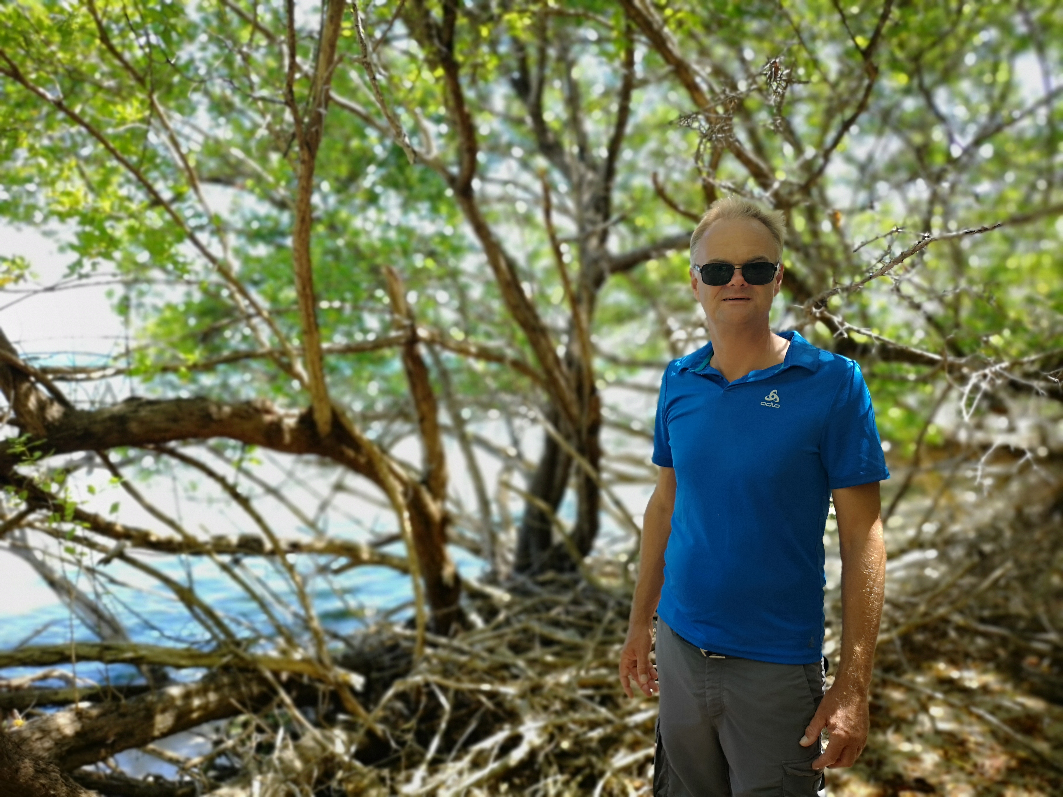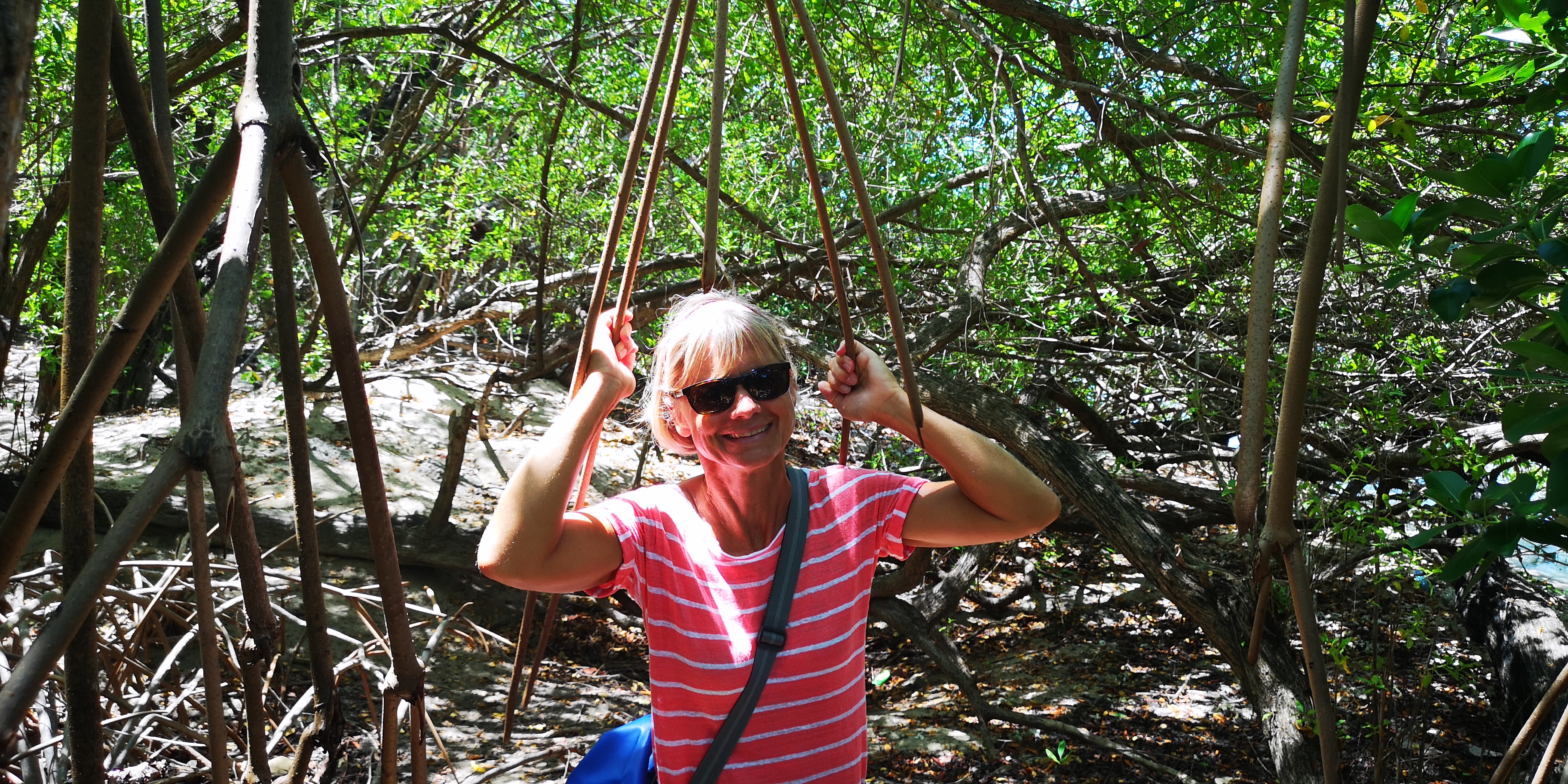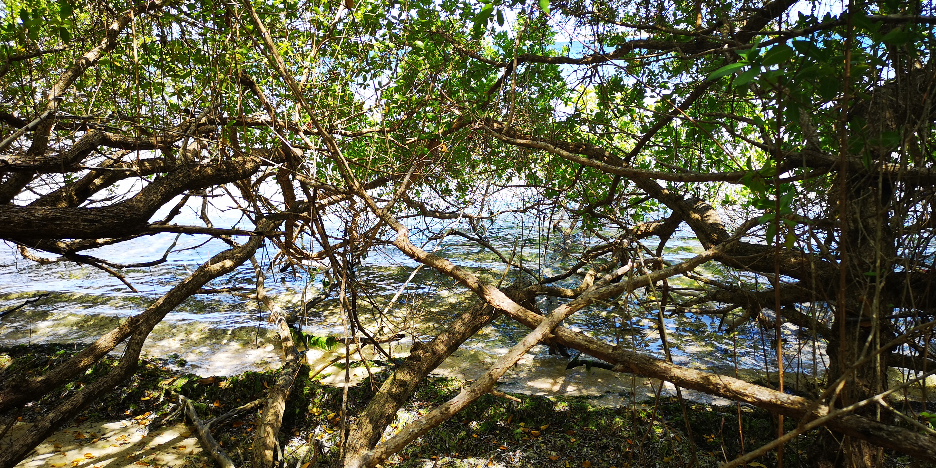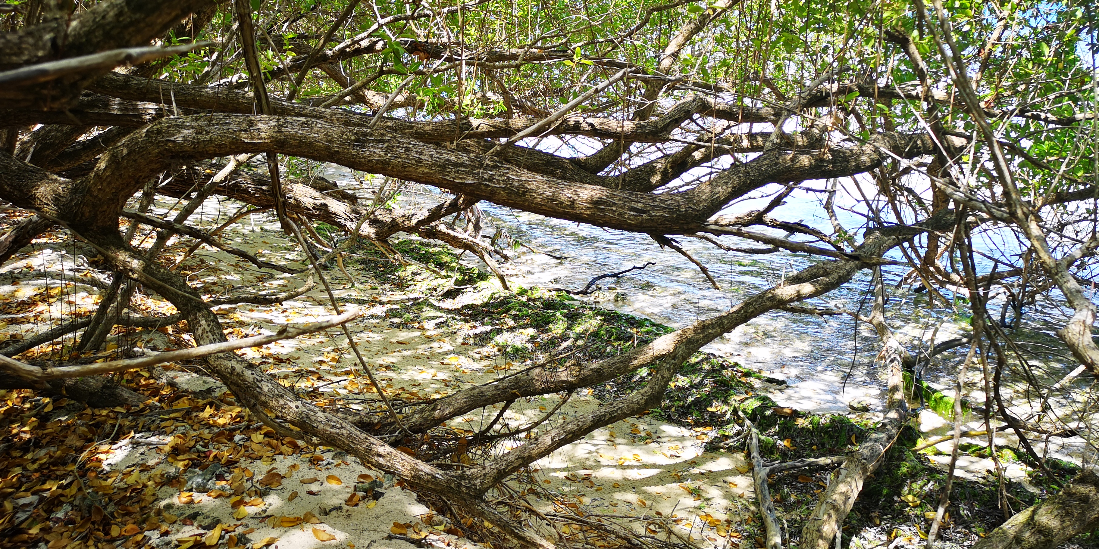 Vom Paradise Beach aus geht der Weg entlang des Wassers durch einen dichten Mangrovenwald.