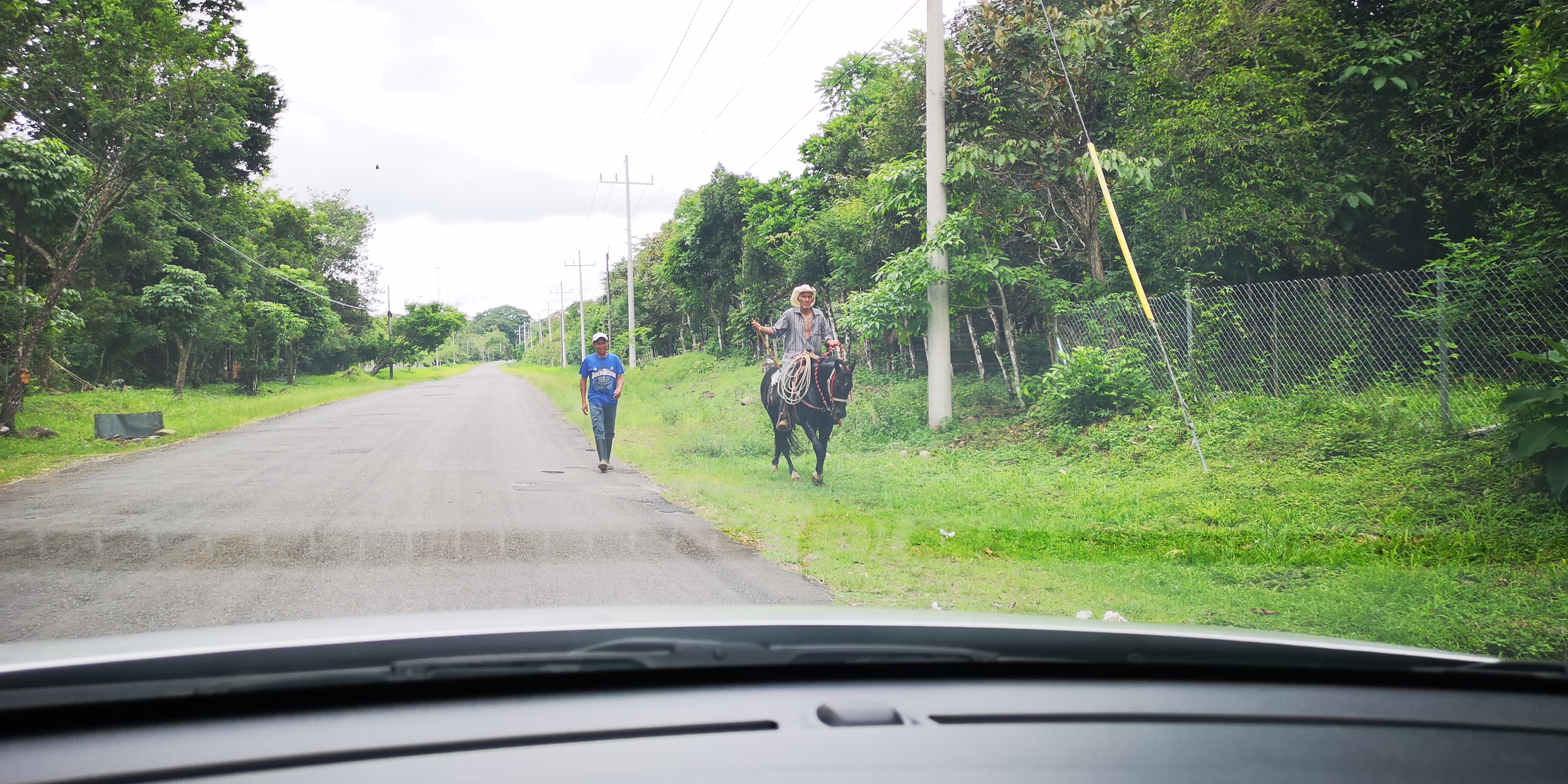 Von Boquete aus fahren wir Richtung Atlantikküste in die Gegend von Gualaca Provinz Bocas und zurück. Groß sind nicht nur die Temperaturunterschiede. Eine Infrastruktur wie in Boquete gibt es jedenfalls bis zum sehr einfachen Ort Miramar an der Küste nicht. Auf den Straßen ist aktives Fahren angesagt. Dh man muss immer mit tiefen Schlaglöchern rechnen und entsprechend ausweichen. Und mit Tieren auf der Straße muss man auch rechnen. Gut wenn die, wie das Pferd in der Provinz Chiriqui, sich an die Verkehrsregeln halten und auf der rechten Fahrbahnhälfte bleiben.