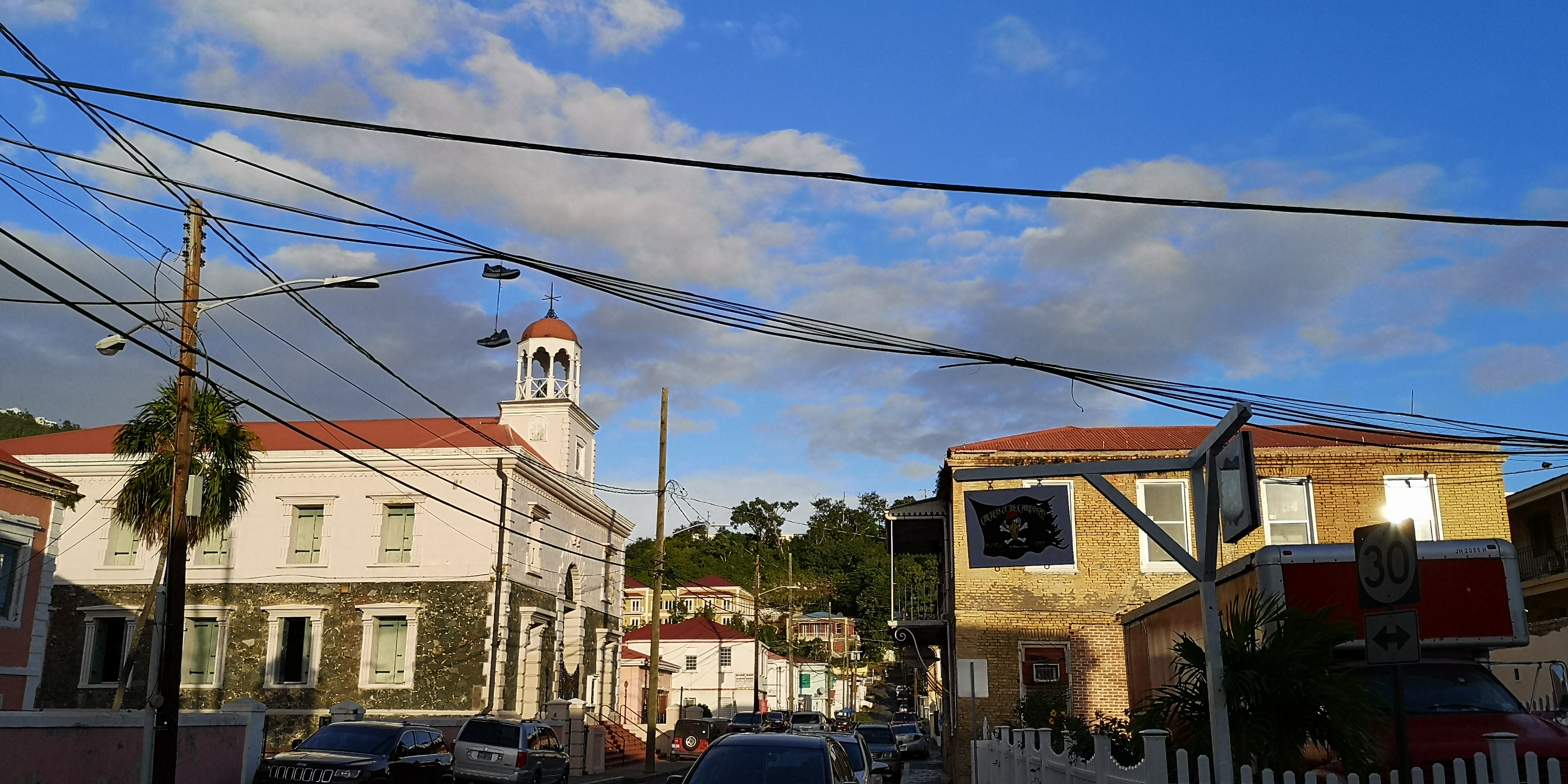 Von St John gehen wir weiter zur Hauptinsel St Thomas. Unsere Tochter in Empfang nehmen, die just an dem Tag aus Zürich abflog, an dem Sohnemann wieder in Zürich ankommt. Ein gemeinsamer Termin mit beiden liess sich leider nicht finden, da beide an der Uni unterschiedliche Prüfungspläne hatten. Auch in St Thomas lässt uns der Regen nicht alleine. Die capitania strahlt dennoch. Denn es gibt ein Paradies für sie in Charlotte Amalie : Die Fruit Bowl, einen Laden voller Obst und Gemüse, zudem Feinkost. Gut erreichbar per Dinghy zum Yacht Harbour Grand und dann weiter zu Fuß.