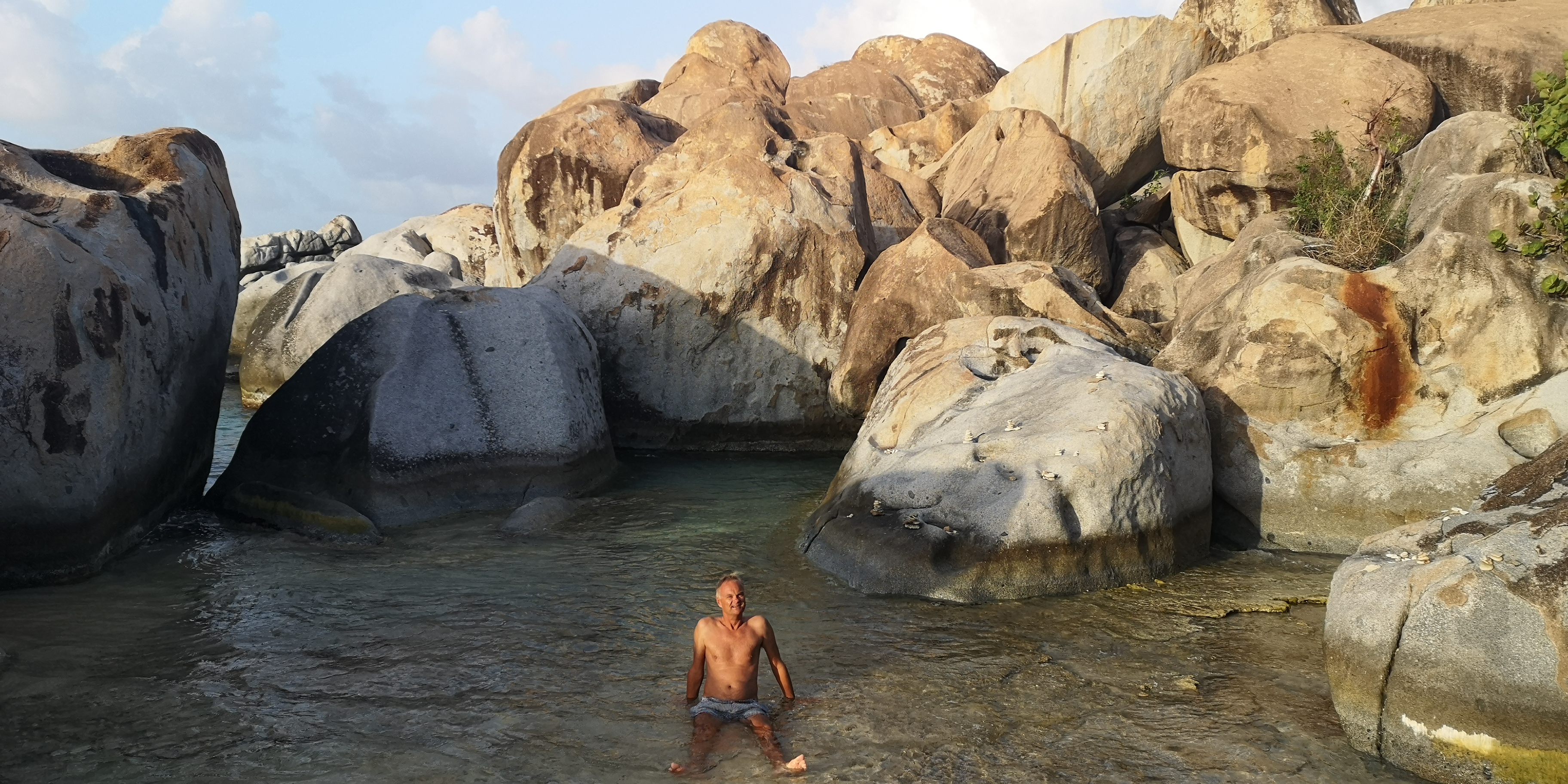 So legen wir uns einen kurzen Dinghy-Tripp neben den „The Baths“ – der Attraktion auf Virgin Goda schlechthin – über Nacht an einem Sandstrand vor Anker. Knapp ausserhalb des gesperrten Bereichs. Wir haben die wirklich traumhaften Buchten und die Attraktion abends für uns alleine. Kein Charterer, keiner der Tausenden von Kreuzfahrer, die täglich hierrüber herfallen, ist noch da.