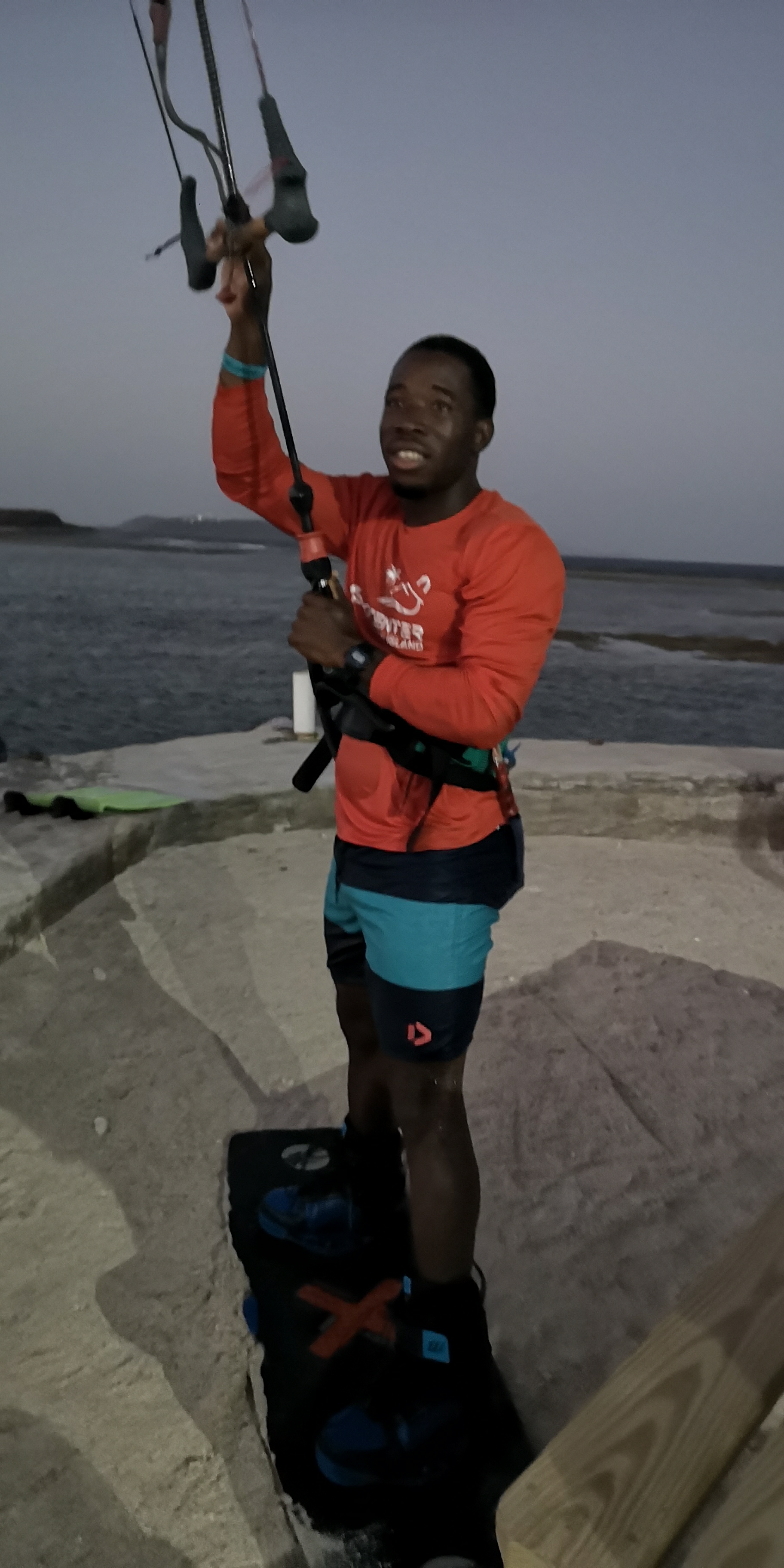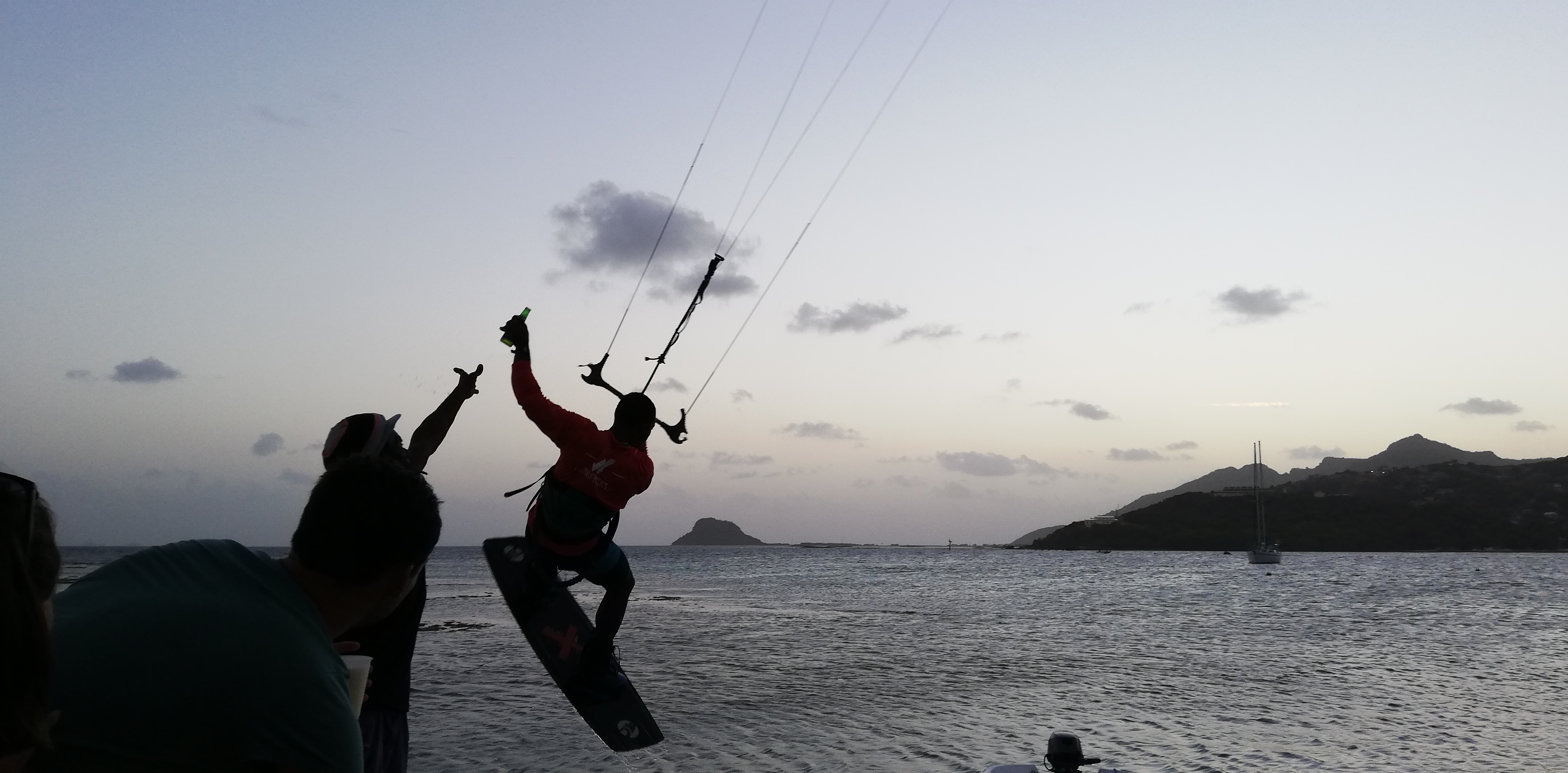 Zum Sonnenuntergang zeigt der ortsansässige Profi-Kitesurfer ein wenig von seinem Können. Absolut faszinierend! Und unser INVIA Dinghy ist meistens mitten im Bild…..