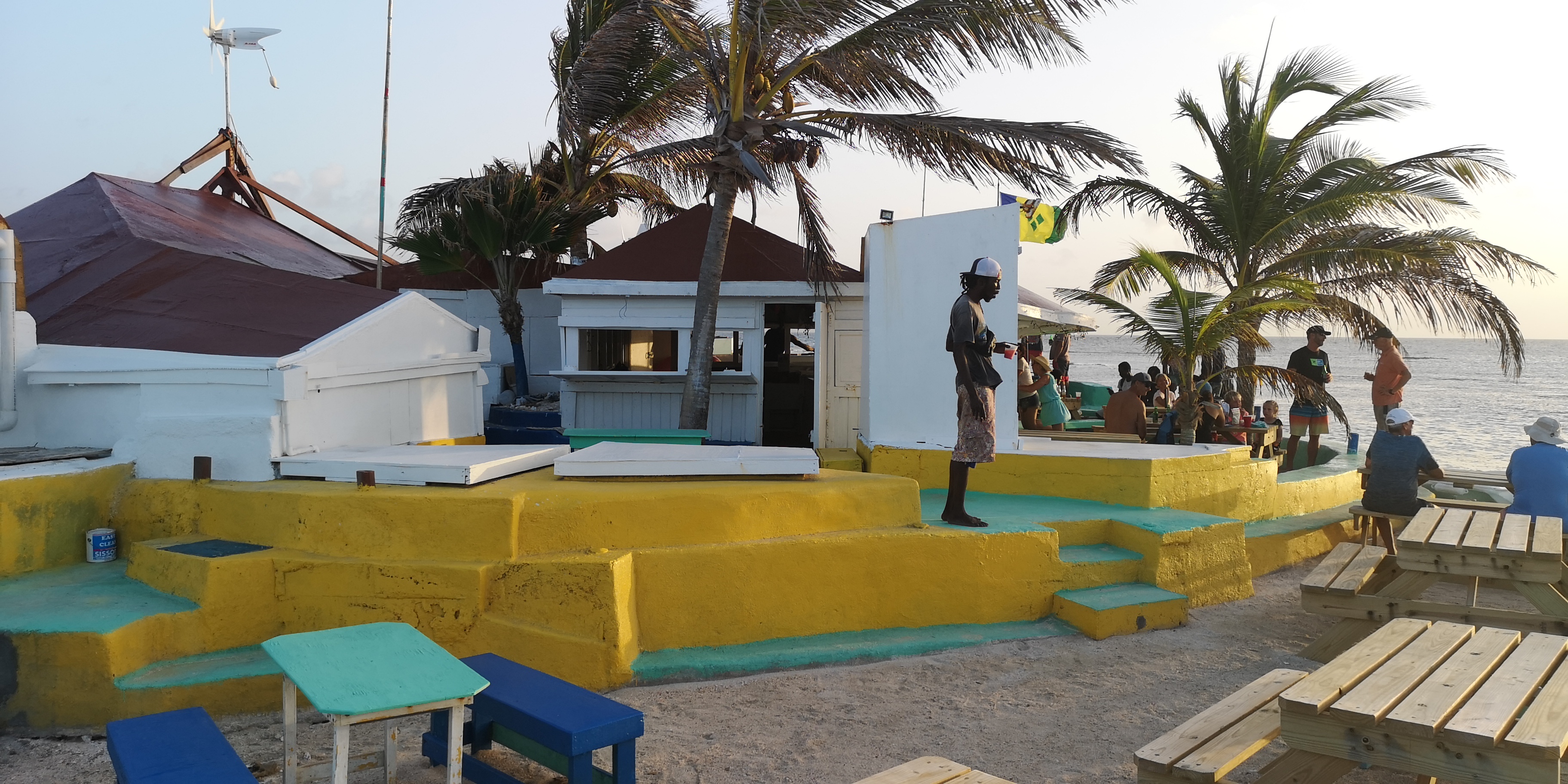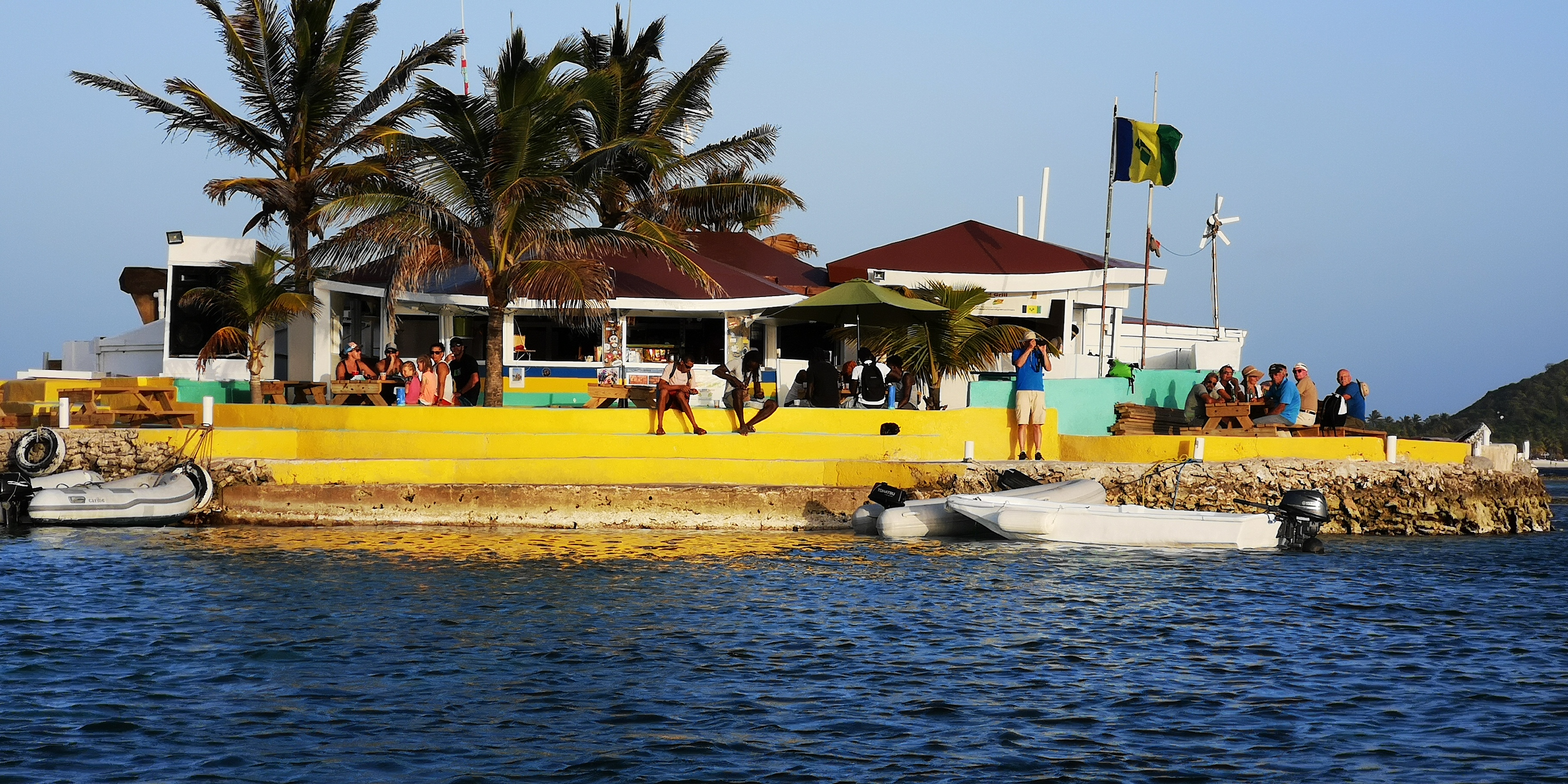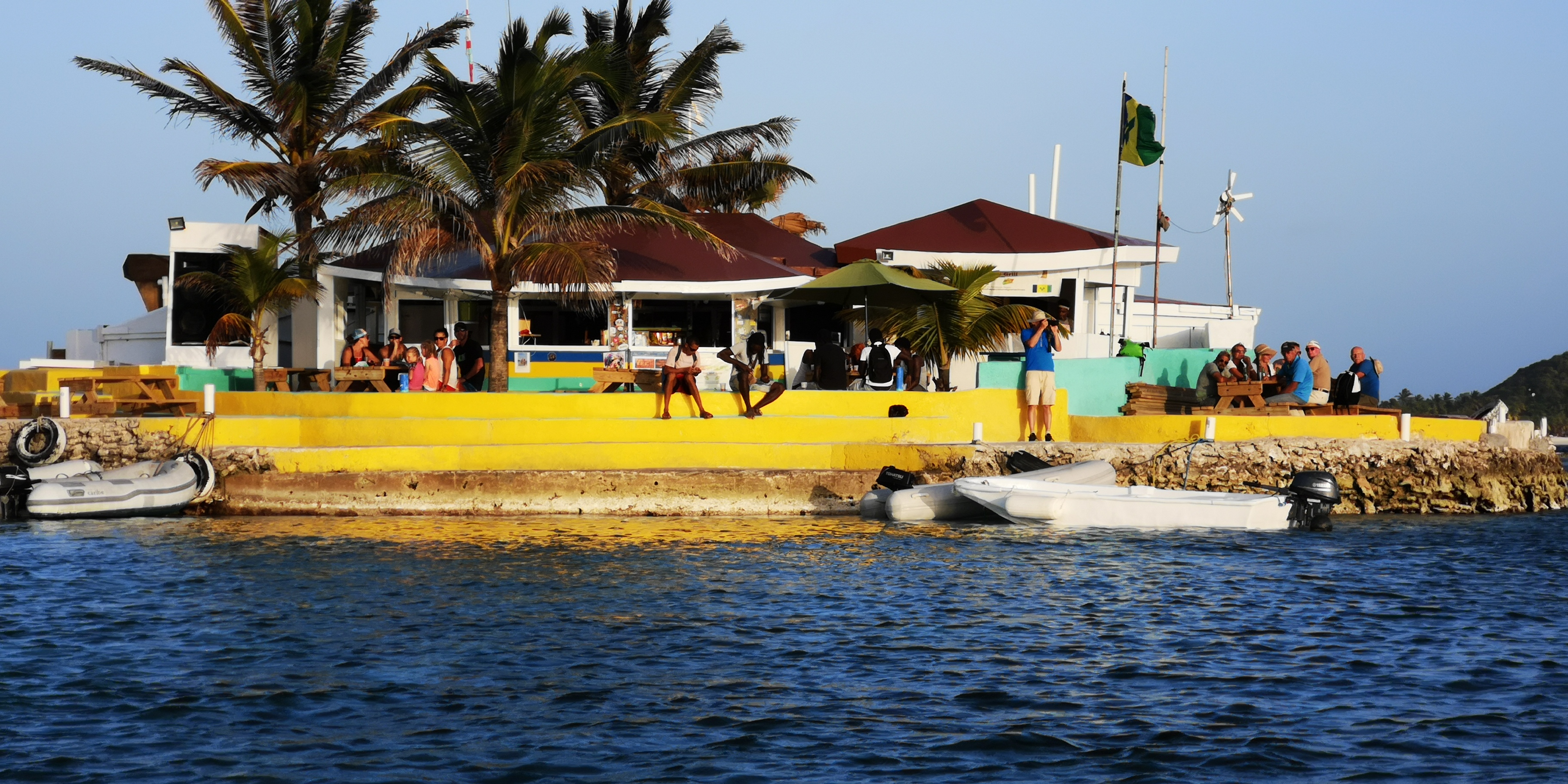 Wir versuchen, wo es passt, auch die kleineren Unternehmer zu unterstützen. Sofern meine gewiss nicht hohen Hygieneanforderungen erfüllt sind, auch mal mit einem hausgemachten Abendessen; ansonsten mit einem Getränk. Wir hatten gute Erfahrungen, z.B. in Clifton auf Union Island in dem kleinen Restaurant Chanteclair in der Straße links hinter dem Anchorage Hotel. Dort wurde von einem einheimischen Paar mega-lecker aufgetischt. Beide versuchen, ihr adrettes Restaurant zu etablieren. Kein einfaches Geschäft in der 2. Reihe hinter den Frontlokalen. Allerdings war er auch jahrelang auf einem Kreuzfahrtschiff als Barkeeper mitgefahren und hatte Erfahrungen im Touristengeschäft sammeln können. Und beide sind offensichtlich engagierter als diejenigen, die lieber in der Nachbarschaft an der Bar hängen.