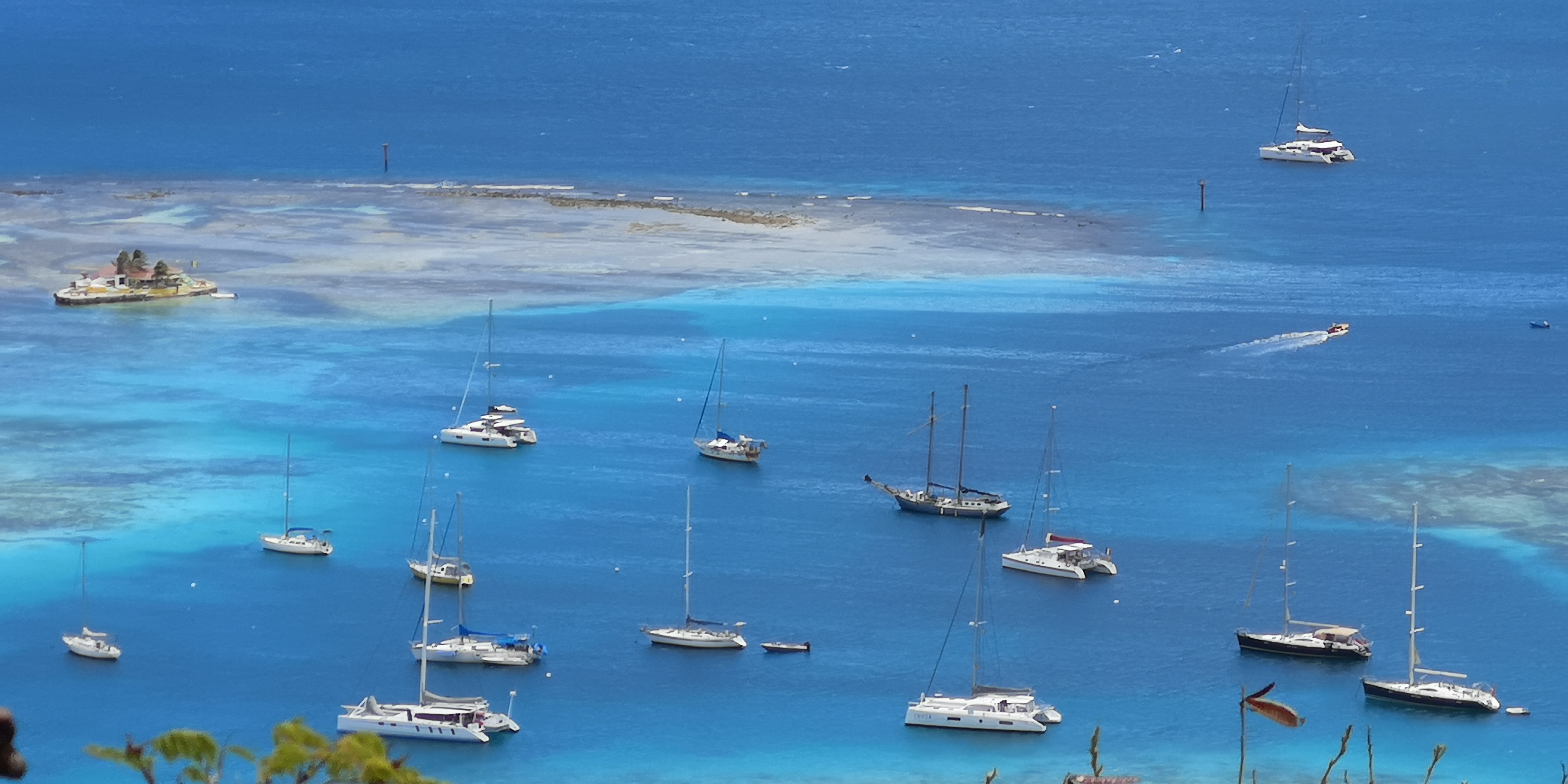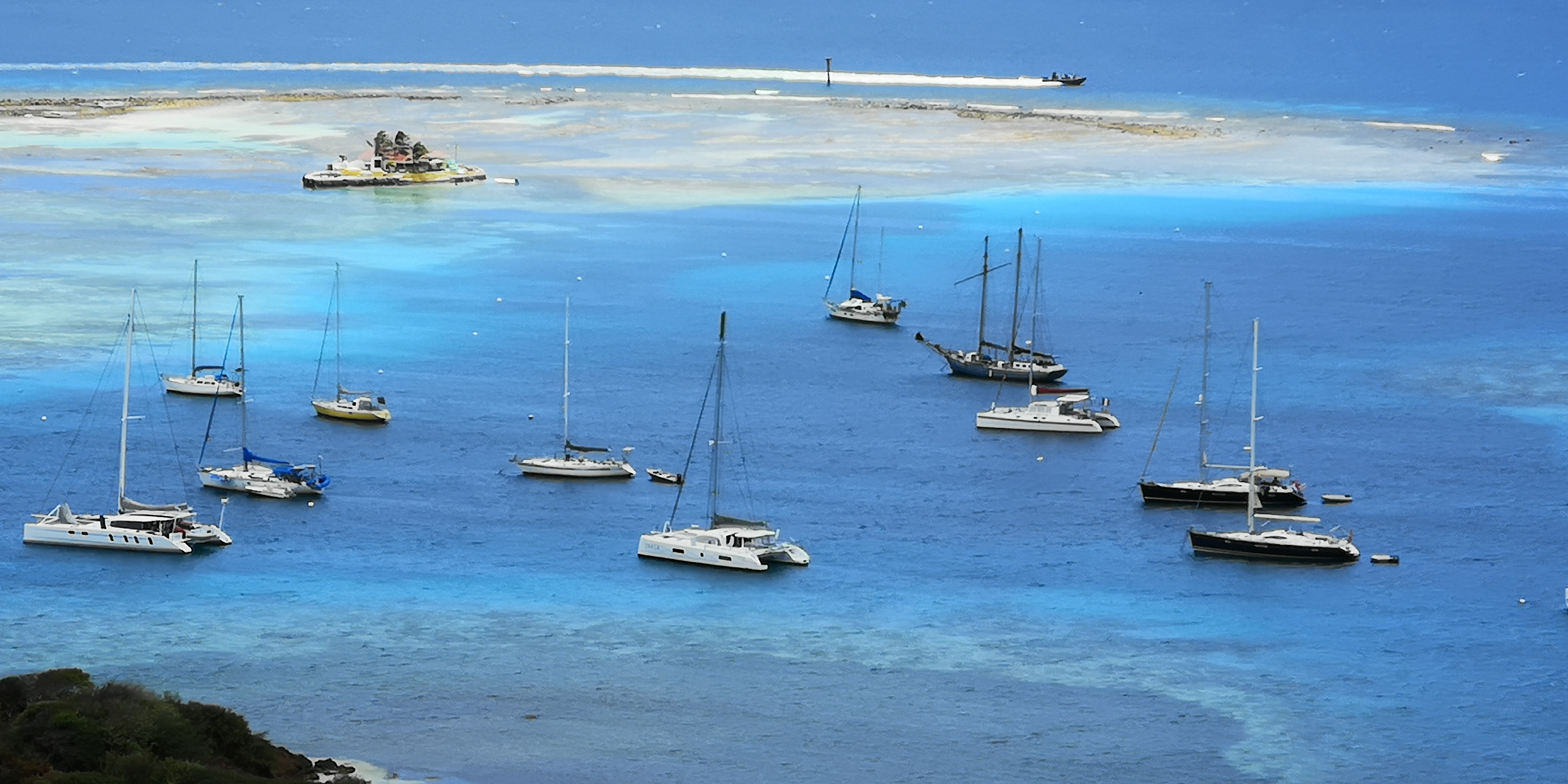 Auf dem Weg von Mayreau nach Union Island sehen wir schon aus der Ferne Hundertschaften von Masten in den Tobago Cays. Alles Segler, die dort ankern. Wir beschliessen deshalb, auf diese geballte Ladung erstmal zu verzichten und gehen direkt nach Union Island. Von Union Island abgehend mache ich später 2 Tauchgänge am Horseshoe-Riff in den Tobago Cays. Das Tauchen war genial, ansonsten bestätigt der Ausflug meinen Eindruck: Faszinierend türkises Wasser. Aber proppevoll.
