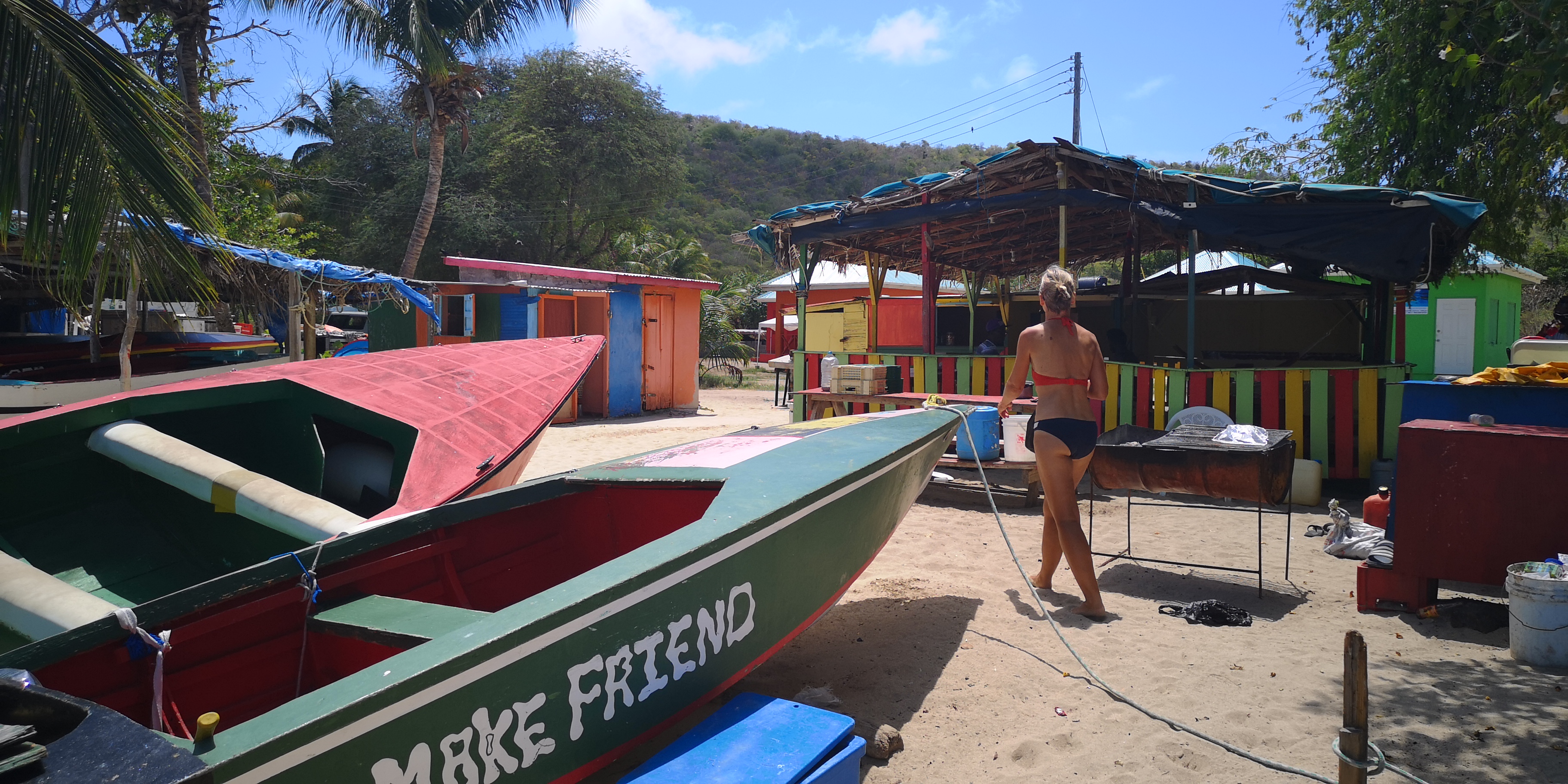 Die Boatboys können einem schon recht auf die Nerven gehen. Ich versuche dennoch höflich zu bleiben auch wenn das manchmal schwierig wird. Umso begeisterter bin ich von Petit Martinique wo wir grade Anker geworfen haben. Kein Mensch interessiert sich für uns, das Leben auch an Land geht einfach weiter. Und weit und breit kein Welcome Komitee