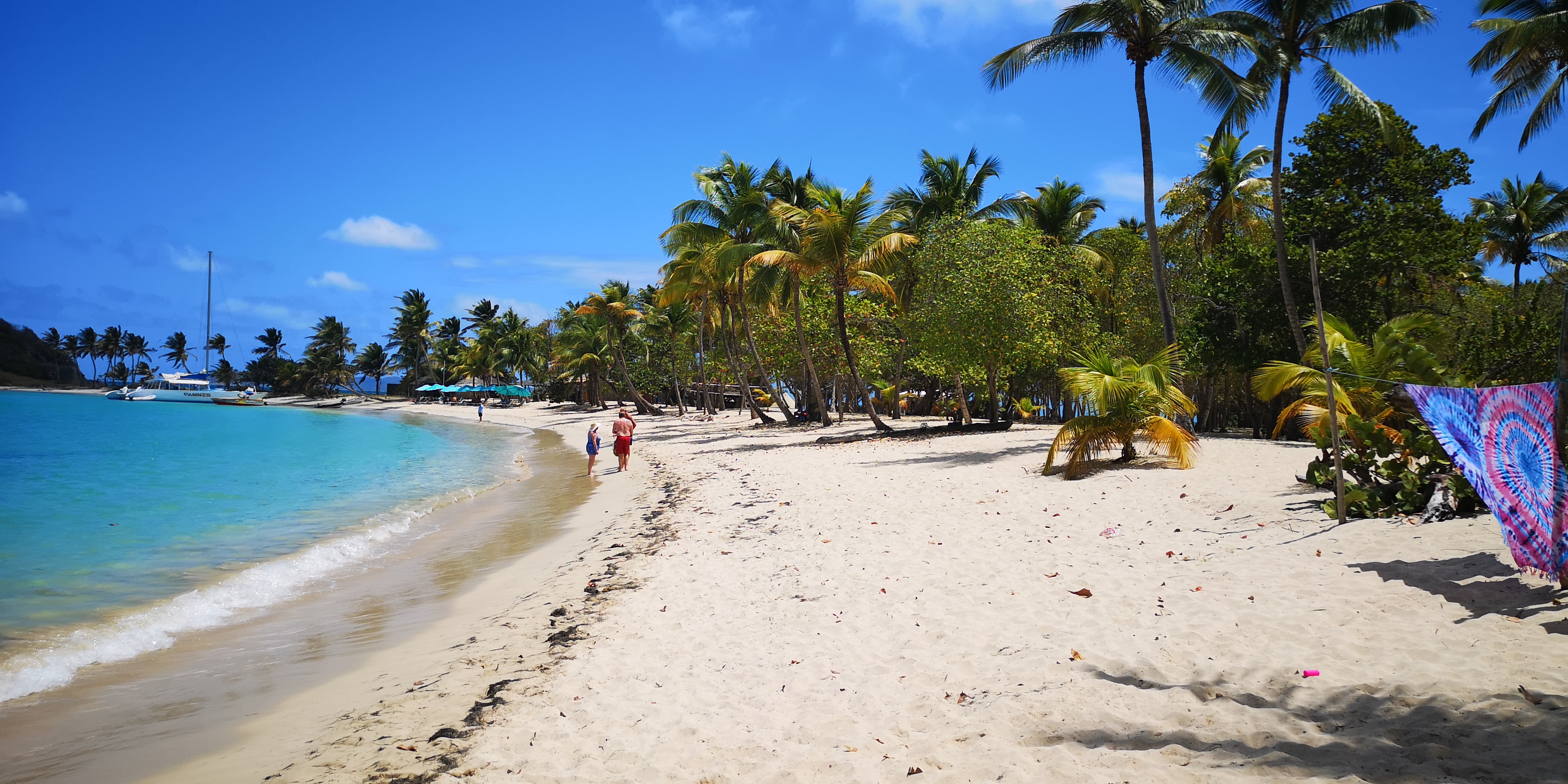Von Canoun aus ging es zur nur 6 Seemeilen entfernten Salt Whistle Bay auf der Insel Mayreau. Türkises Wasser vor einem Sandstrand, hinter einer schmalen Landbrücke bereits wieder Meer und Ausblicke auf die Tobago Cays mit weiteren türkisen Buchten – kein Wunder, dass die Salt Whistle Bay als eine der schönsten der Karibik gilt.