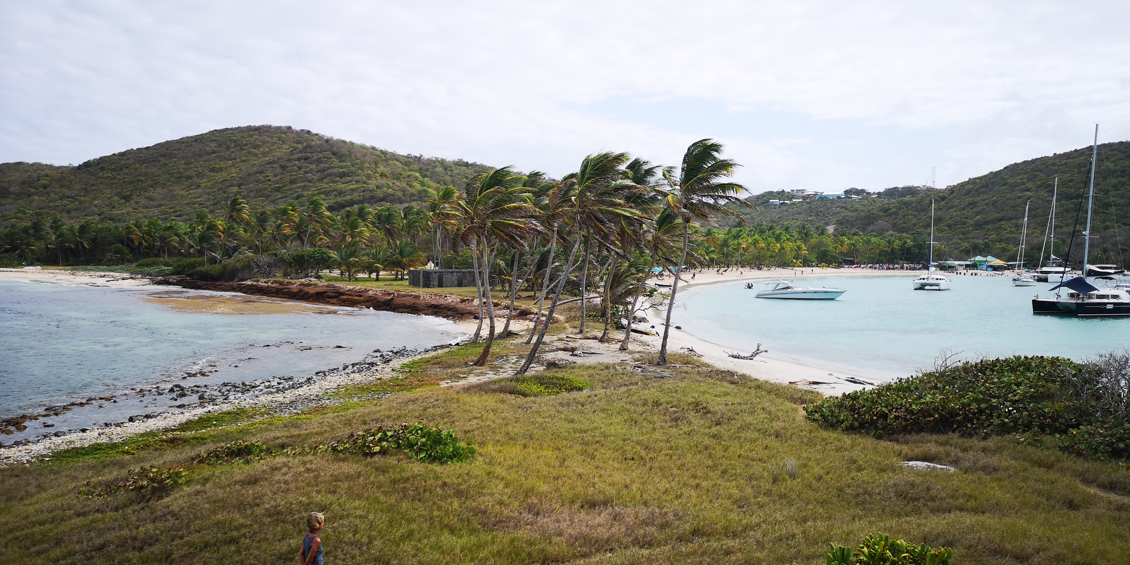 Voll ist sie, die Salt Whistle Bay. Übervoll. Ich mag wegen des Schwojekreises nicht ankern sondern nehme mir eine Boje für 60 EC$/Nacht. In der Erwartung, der Betreiber würde seine Bojen auch schützen und dafür sorgen, dass niemand direkt neben der Boje seinen Anker wirft. Weit gefehlt: Je später der Nachmittag umso mehr Segler trudeln ein und legen sich auch mitten ins Bojenfeld. Knapp, knapper geht’s kaum.