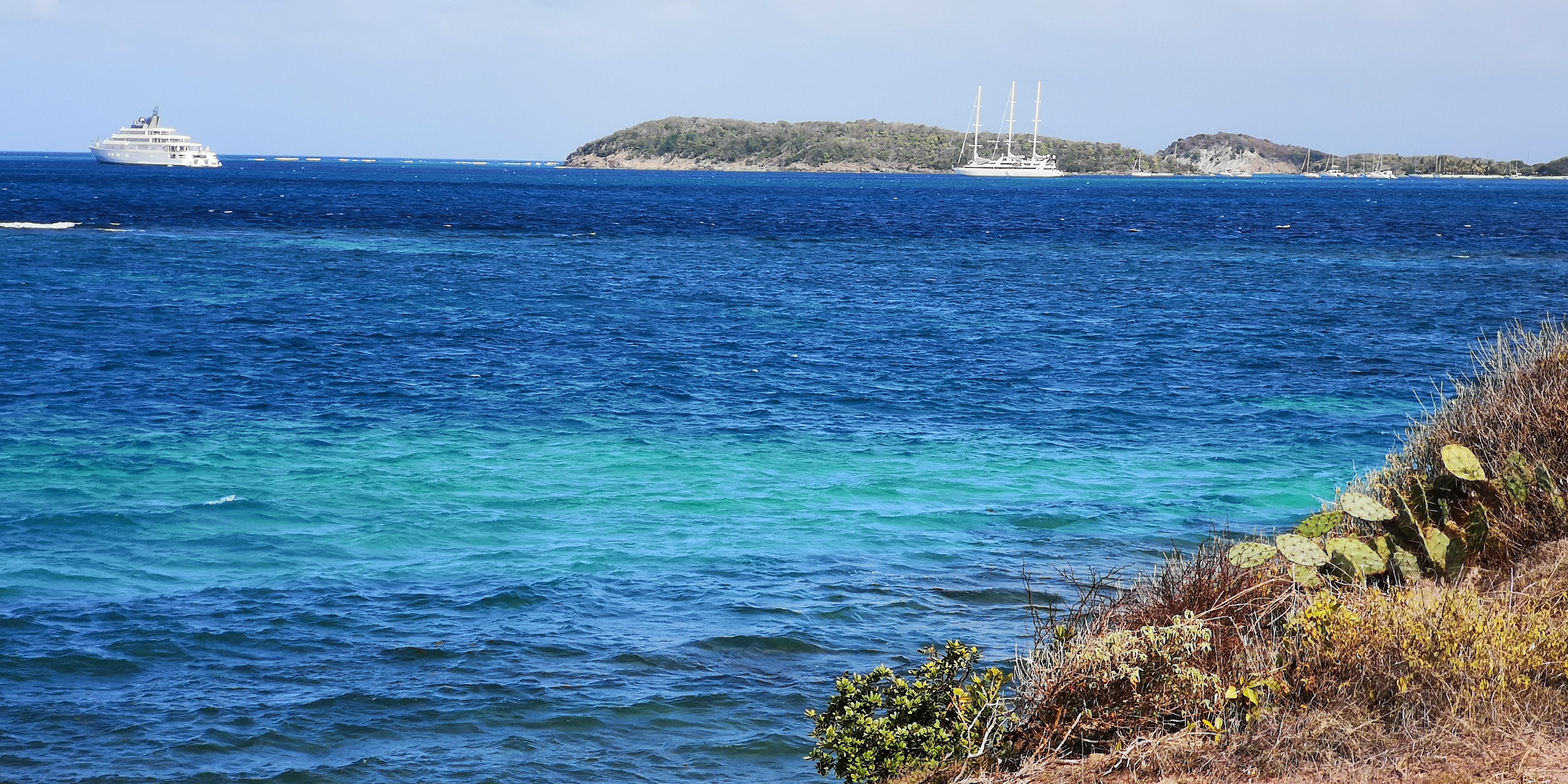 Von der Salt Whistle Bay aus führt ein schmaler Pfad entlang der Küste von Mayreau, immer mit Blick auf die Tobago Cays oder die Grenadinen.