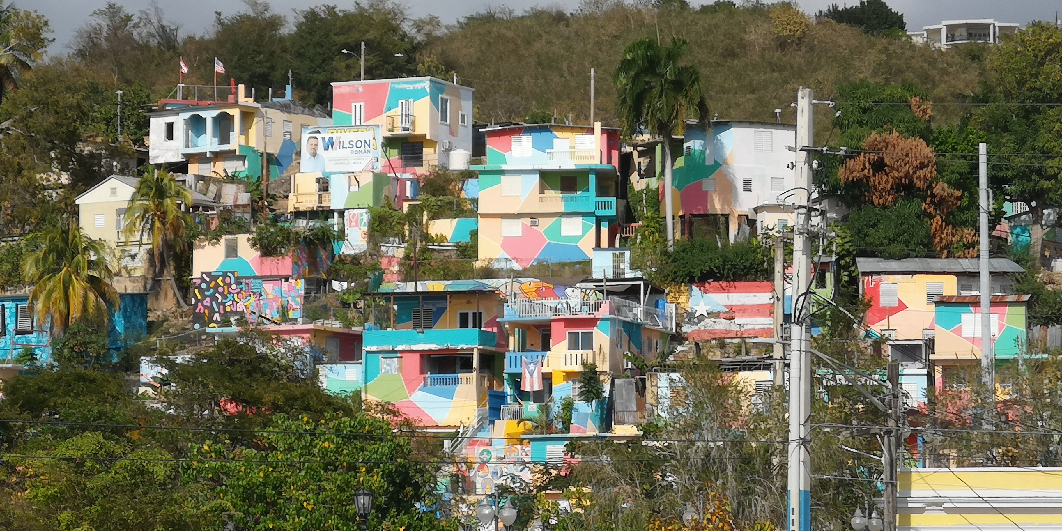 Am deutlichsten sehen wir den Verfall der spanischen Kolonialbauten in Arrecibo. Hier verfällt der Großteil. Der Ort wirkt allerdings auch insgesamt „ausblutend“. Müll stapelt sich am Rande eines ehemals schönen Platzes. Die Finanzverwaltung ist im Erdgeschoss eines Gebäudes an der Kolonialzeit angesiedelt, seit 2019, wie eine edle steinerne Tafel verkündet. Die beiden Stockwerke obendrüber verfallen massiv. Neben dem Verfall gibt es aber auch eine Reihe bunt bemalter Fassaden, die Engagement zeigen.