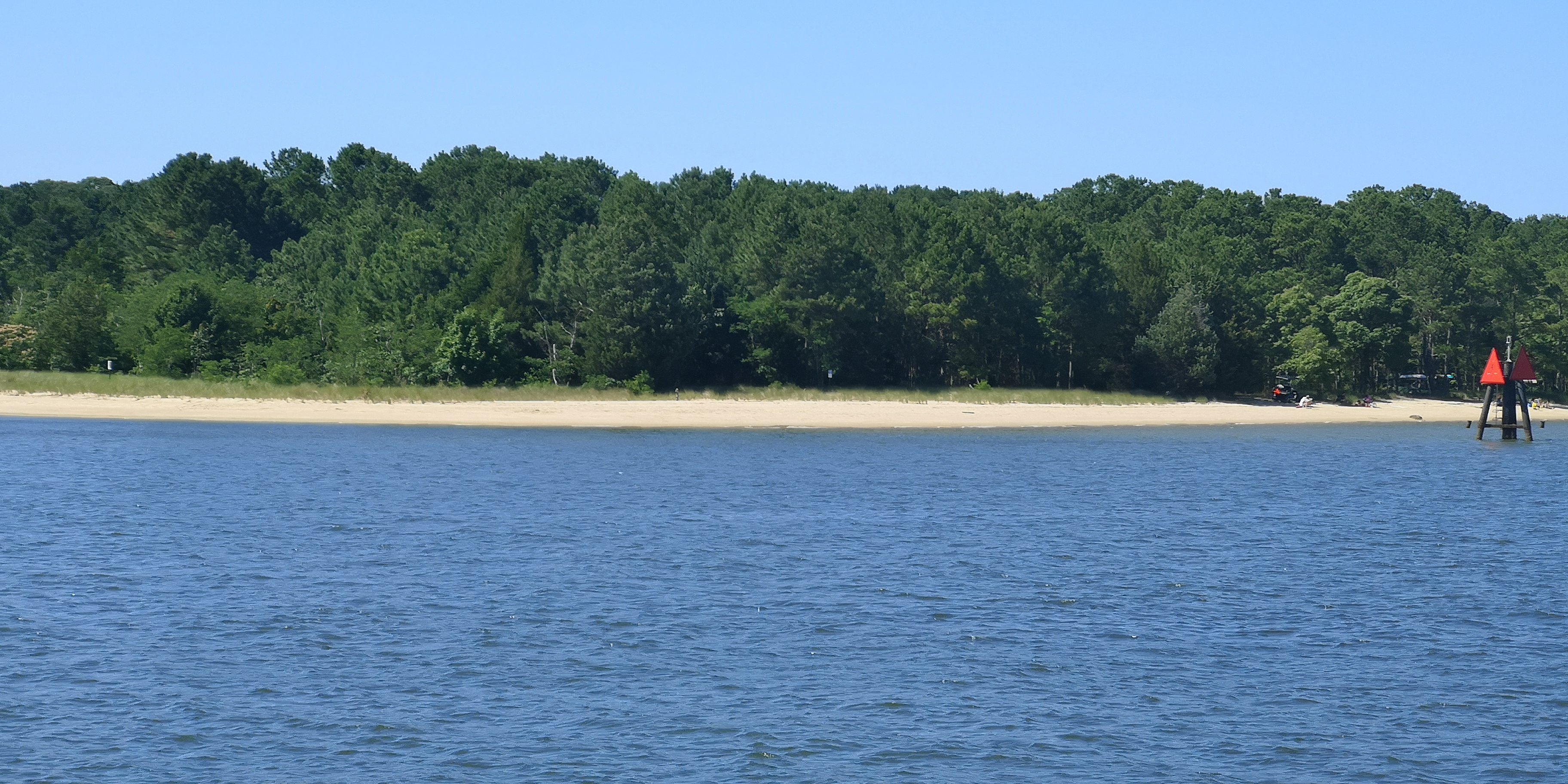 Tags drauf haben wir herrlichen Segelwind – können den aber nur für die kurze Strecke aus dem Potomac River zum Point Lookout, der in die Chesapeake Bay führt, nutzen. Danach müssten wir aufkreuzen – was wir nicht dürfen, denn die Navi führt in dem Gebiet Schussübungen durch. Diverse Patrouillenboote riegeln das Gebiet von allen Seiten ab. Wir werden per Funk sehr freundlich darauf hingewiesen und dürfen auf direktem Weg zu unserem Ziel, allerdings nur in einem Korridor max. 1nm von der Küste entfernt. Das reicht nicht zum Segeln, da vielfach bis etwa 0.8nm von der Küstenlinie entfernt unzählige Bojen mit Krabbenfallen daran ausgebracht sind. Bleibt nur motoren, gegen Wind und Strom.