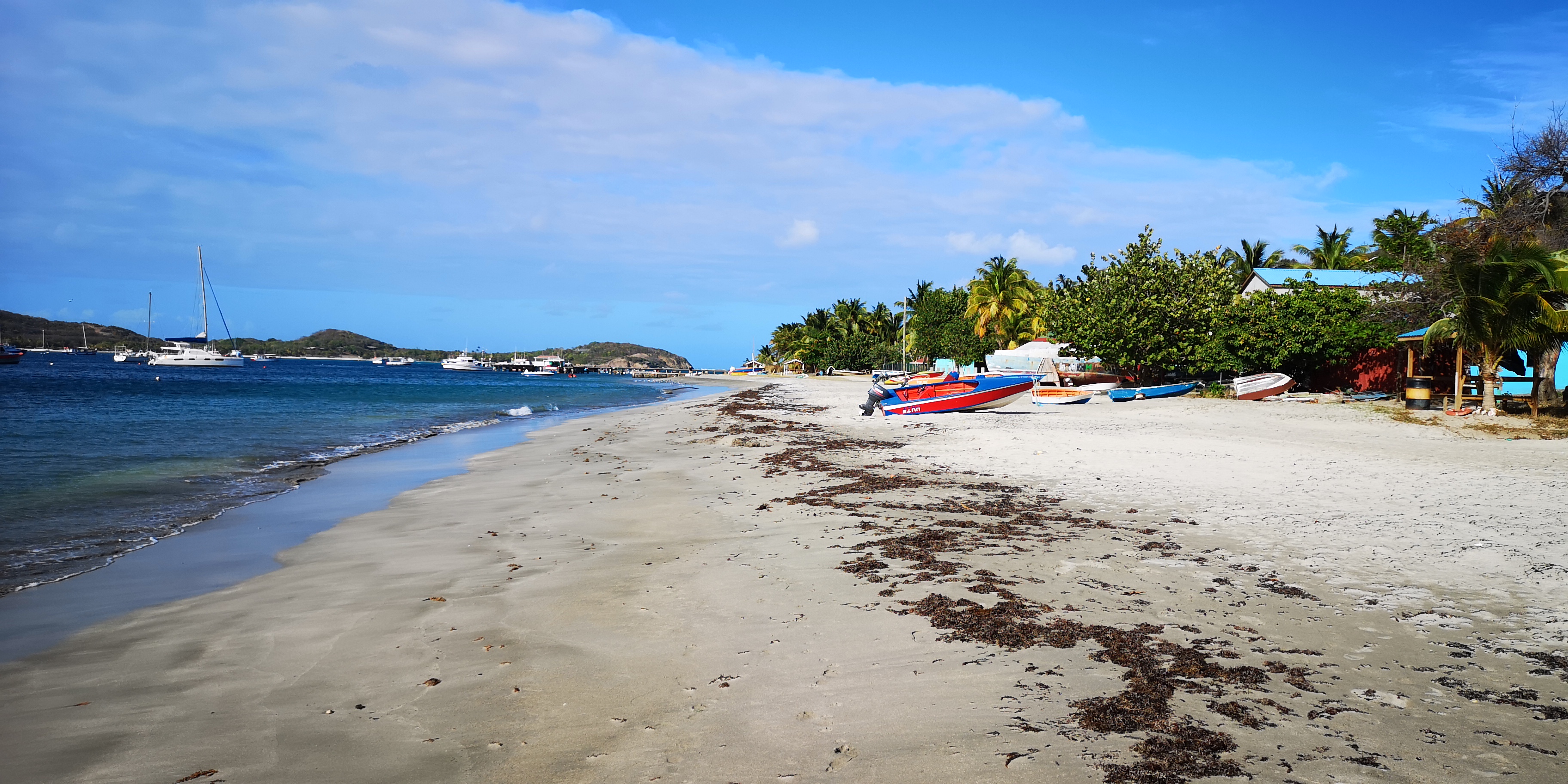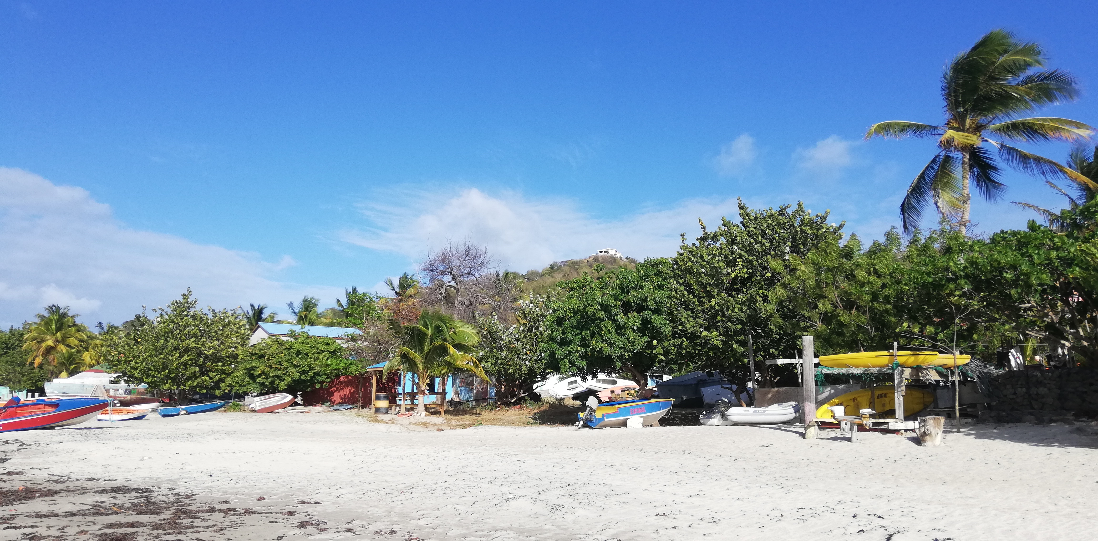 Von Union Island aus ist es nur ein kurzer Schlag zu den Nachbarinseln. Wir haben freie Auswahl: Palm Island mit Luxushotel, Petit St Vincent mit Boutiquehotel oder Petit Martinique, wo man auch heute noch Bootsbau betreibt und vom Fischen lebt. Wir entscheiden uns für letzteres. Lokales Umfeld reizt uns deutlich mehr als Hotelsandstrand.