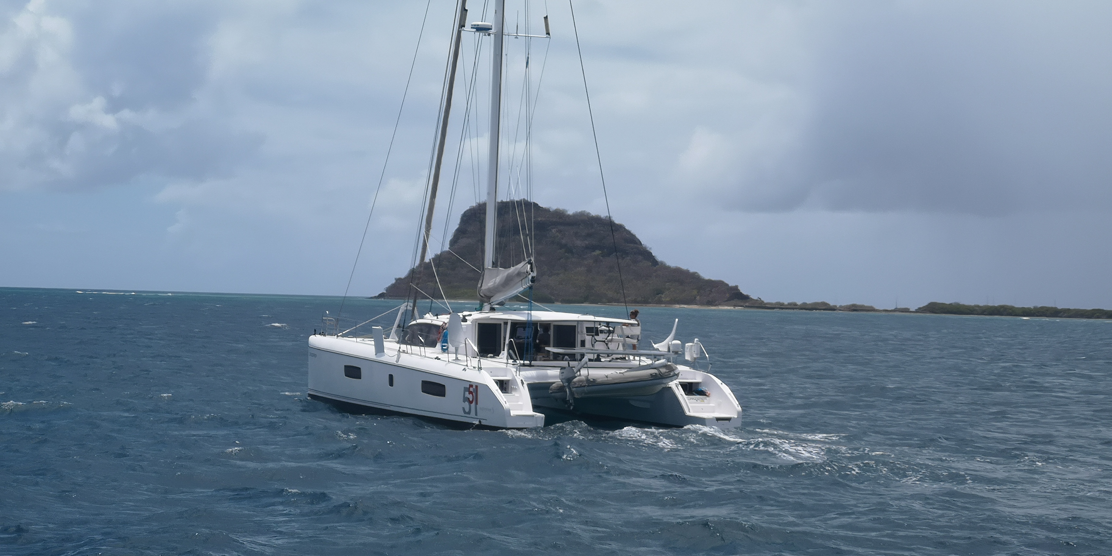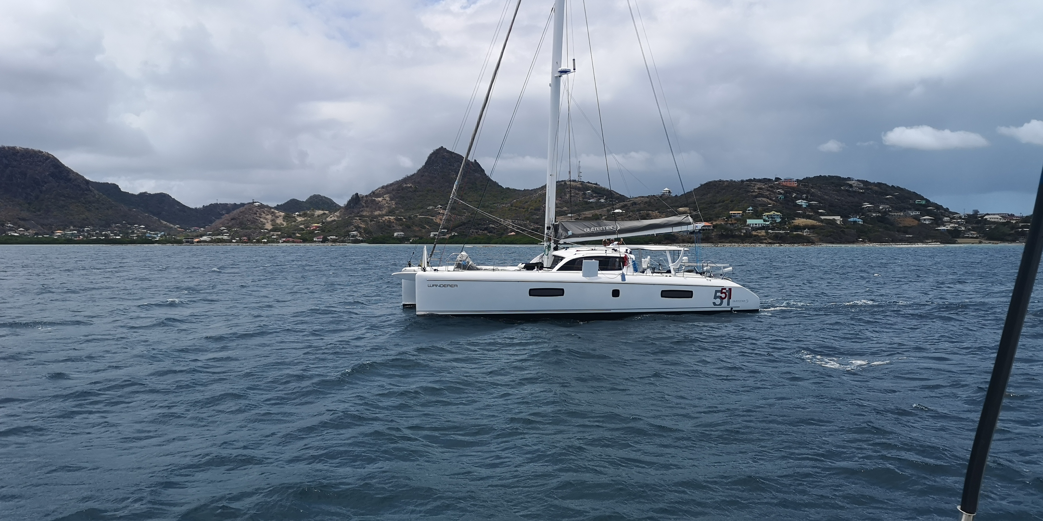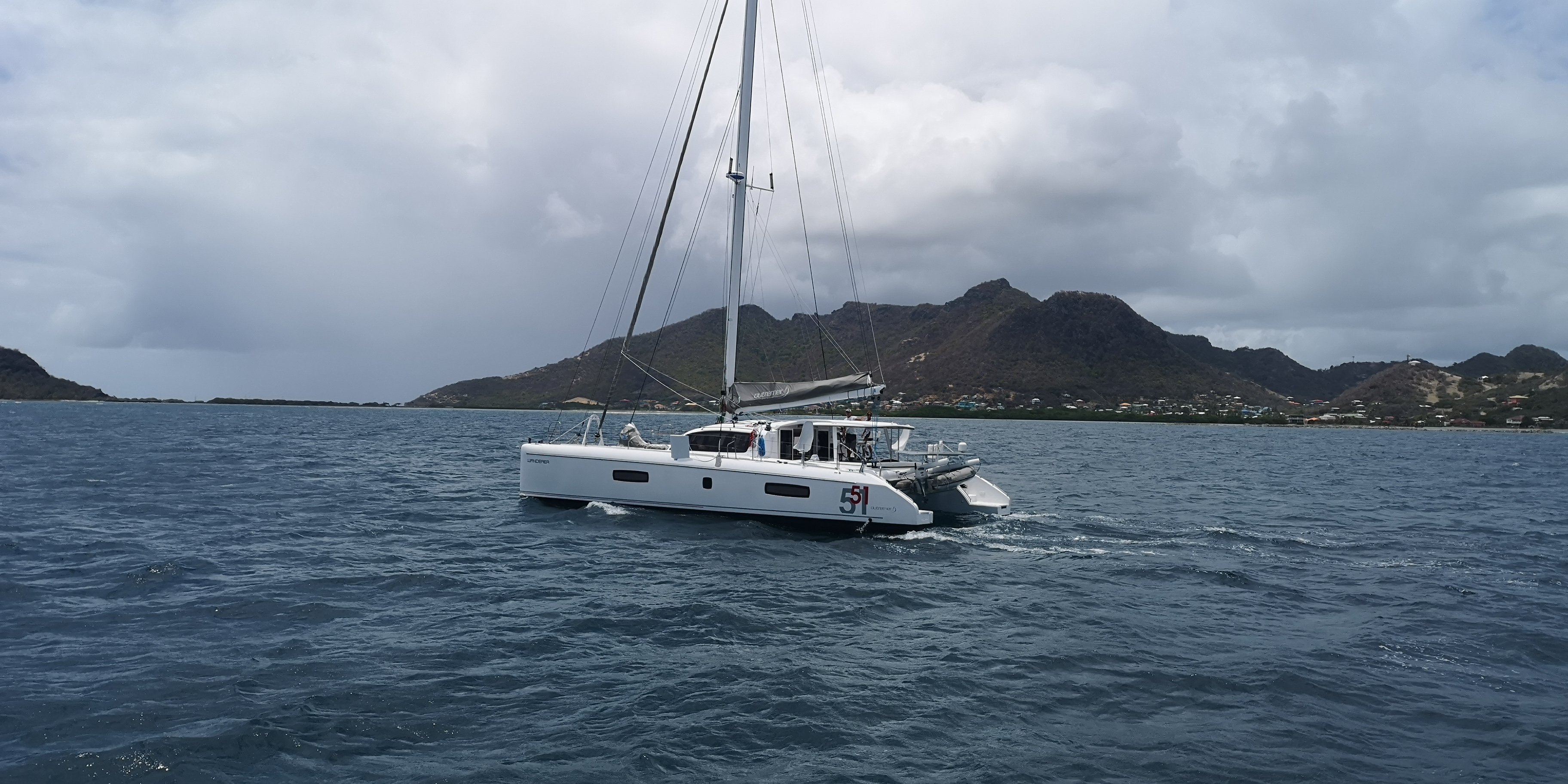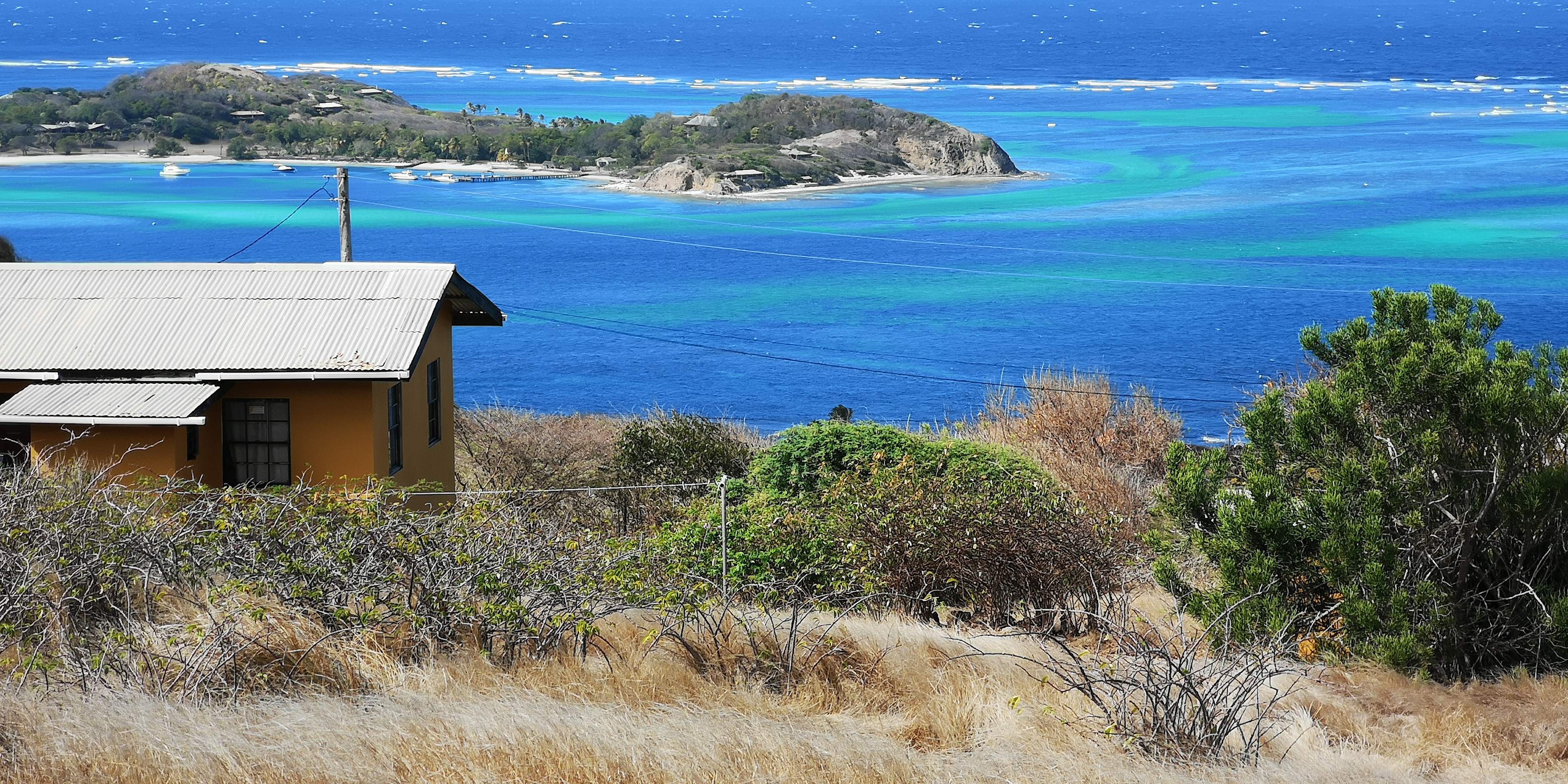 Tatsächlich interessiert sich nicht nur niemand für unsere Papiere, sondern überhaupt lässt man uns völlig unbehelligt. Sehr ungewohnt nach all den Boatboys auf den Inseln zuvor, die geschäftstüchtig schon deutlich vor den jeweiligen Ankerbuchten warteten. Vor Anker bzw an Bojen liegen bei Petit Martinique außer zwei abgewrackt aussehenden Monohulls nur zahlreiche Fischerboote. Segler sehen wir vor Petit St Vincent, sie ankern vor der Hotelanlage. Hm, wir zweifeln. Sollen wir hier vor Anker gehen, sind wir hier sicher? Zumal der Wind ordentlich durch den Kanal zwischen Petit Martinique und Petit St Vincent bläst.