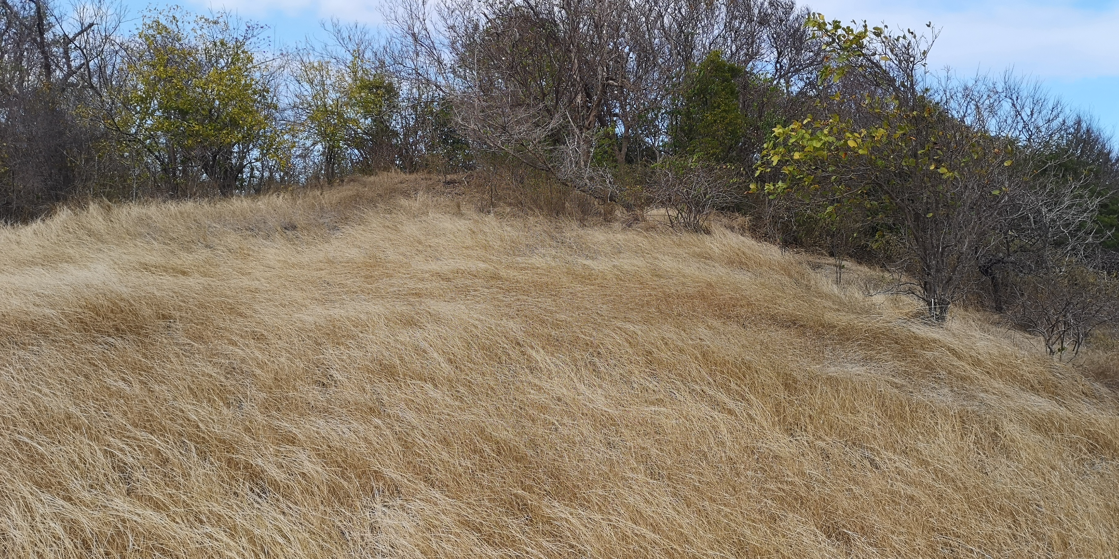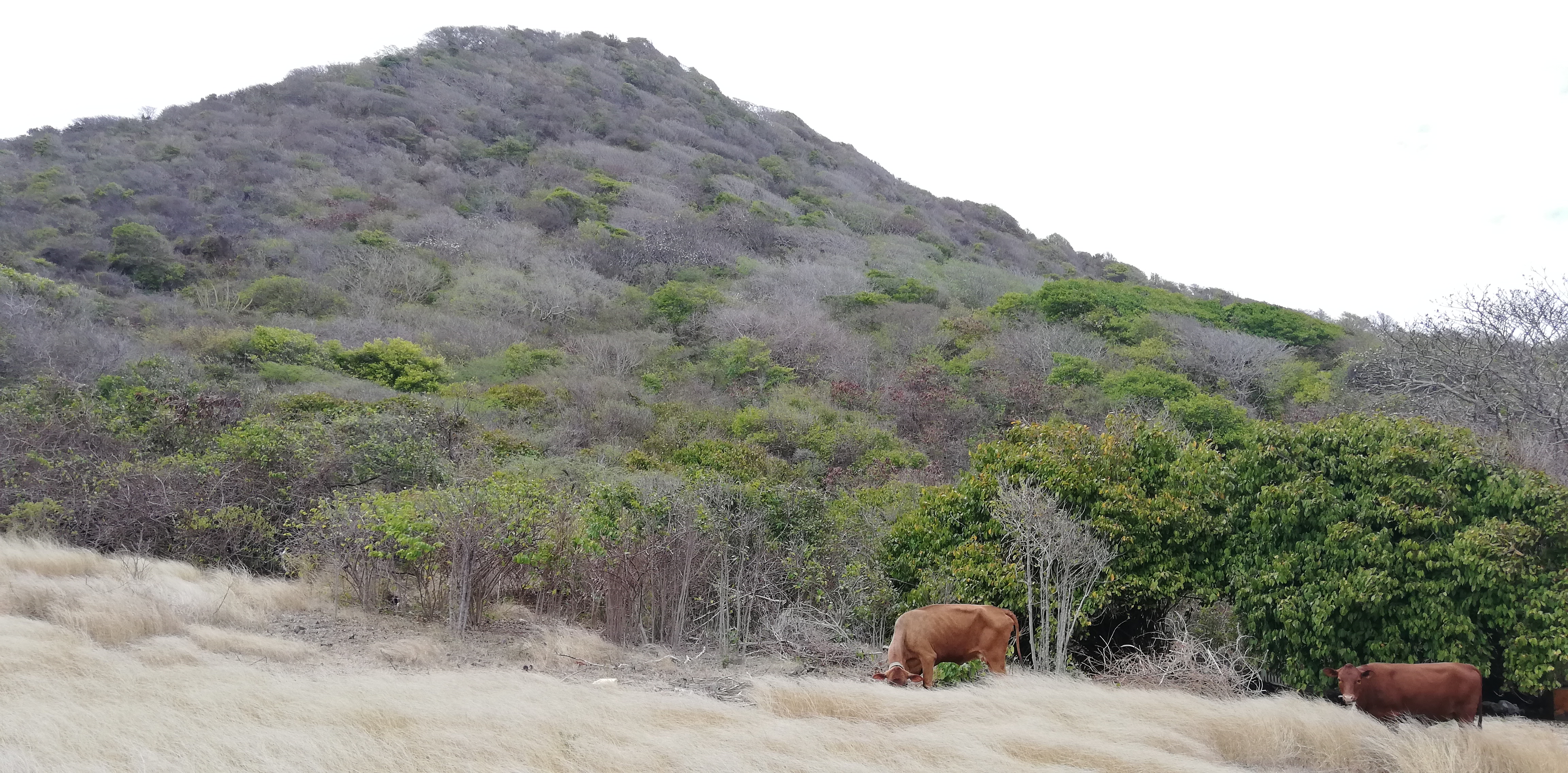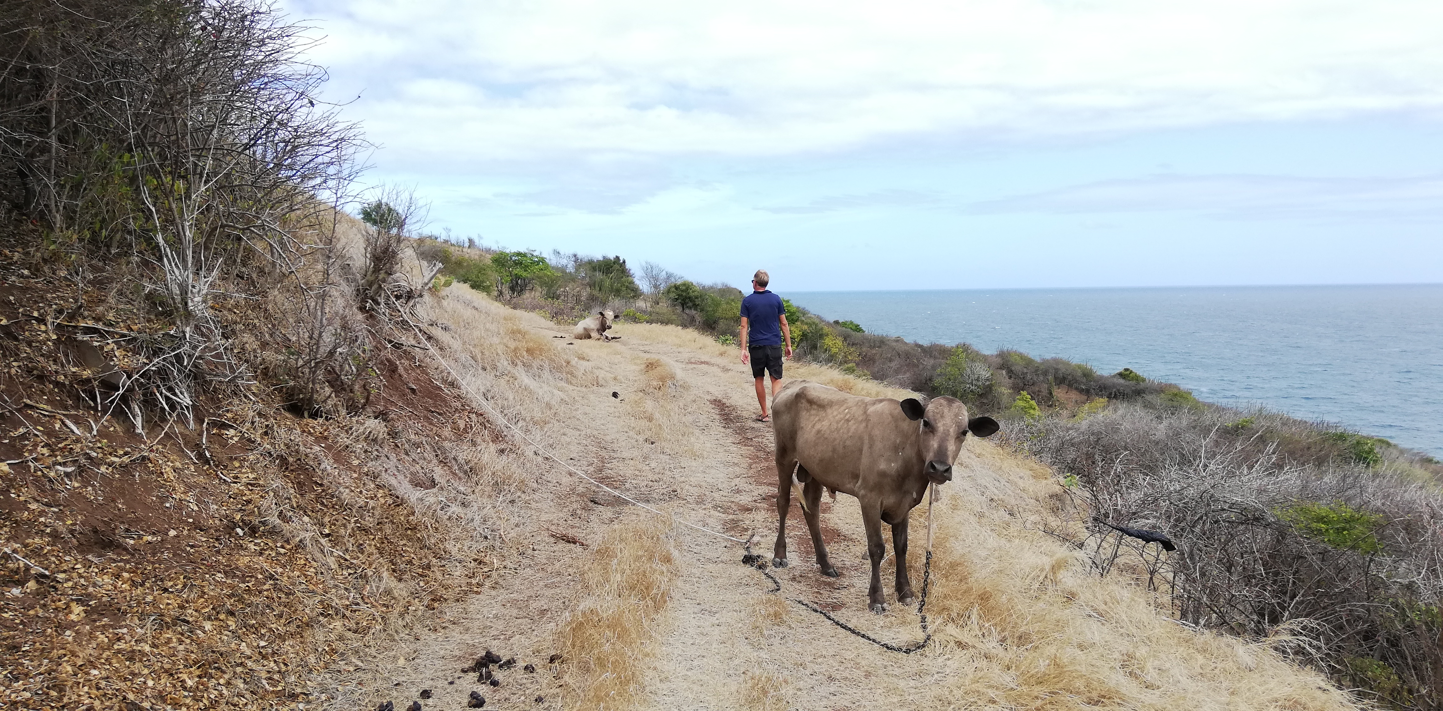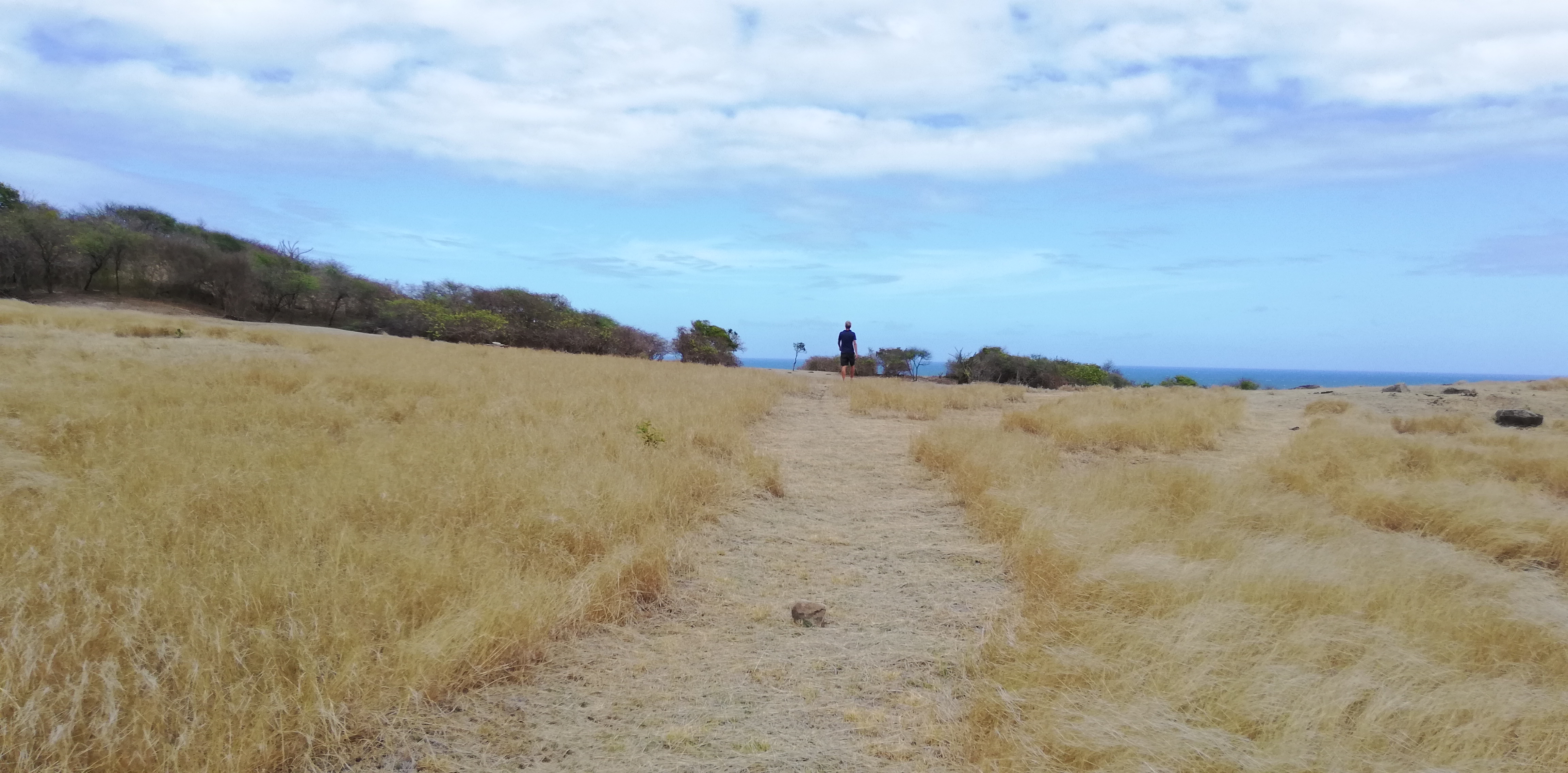 Erst weiter Richtung Nordosten wird das Gras länger. Offenbar gibt es selbst auf dieser kleinen Insel unterschiedliche Vegetationszonen. Wieder einmal zeigt sich, wie sehr die Passatwolken das Inselleben prägen.