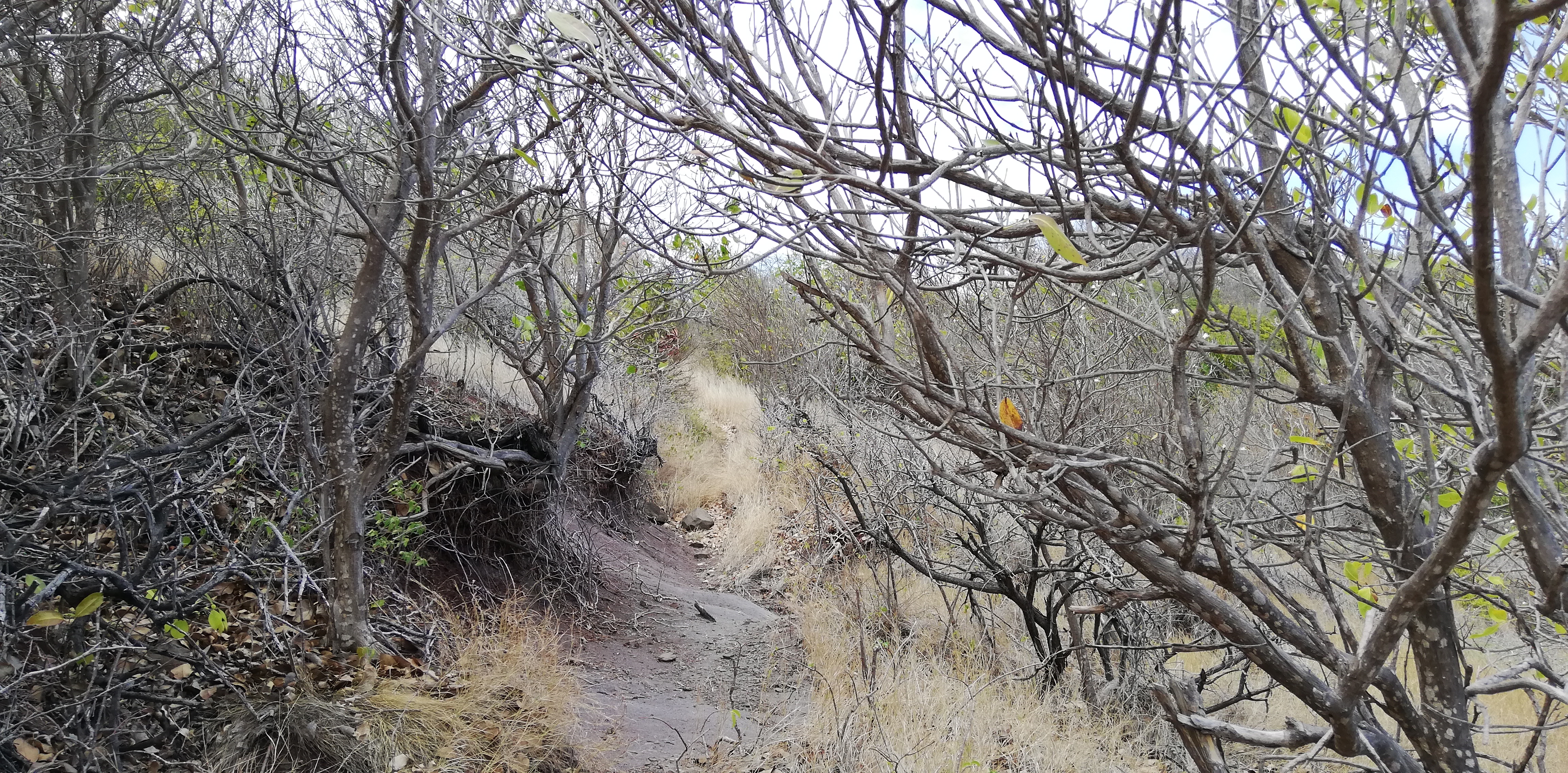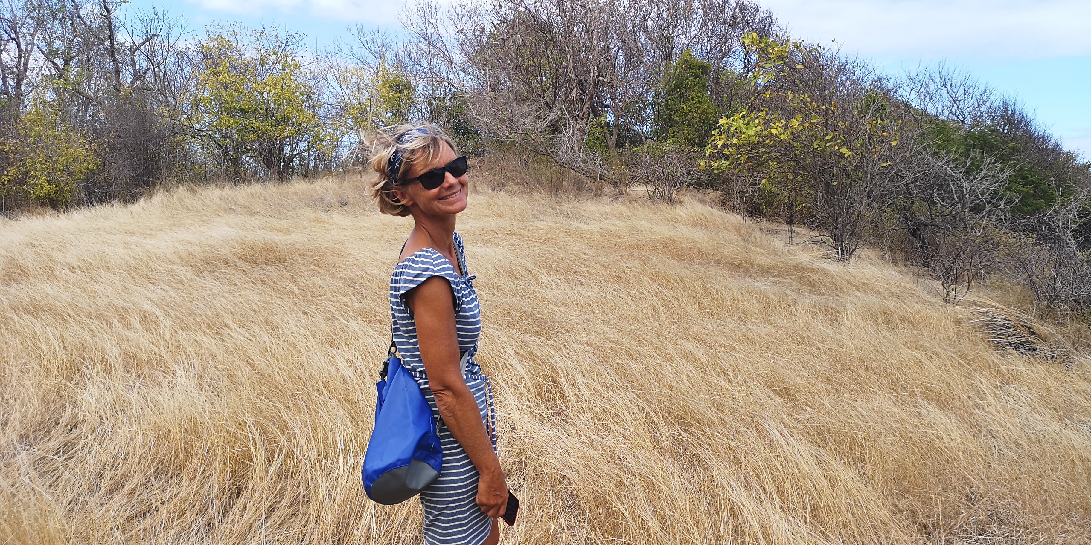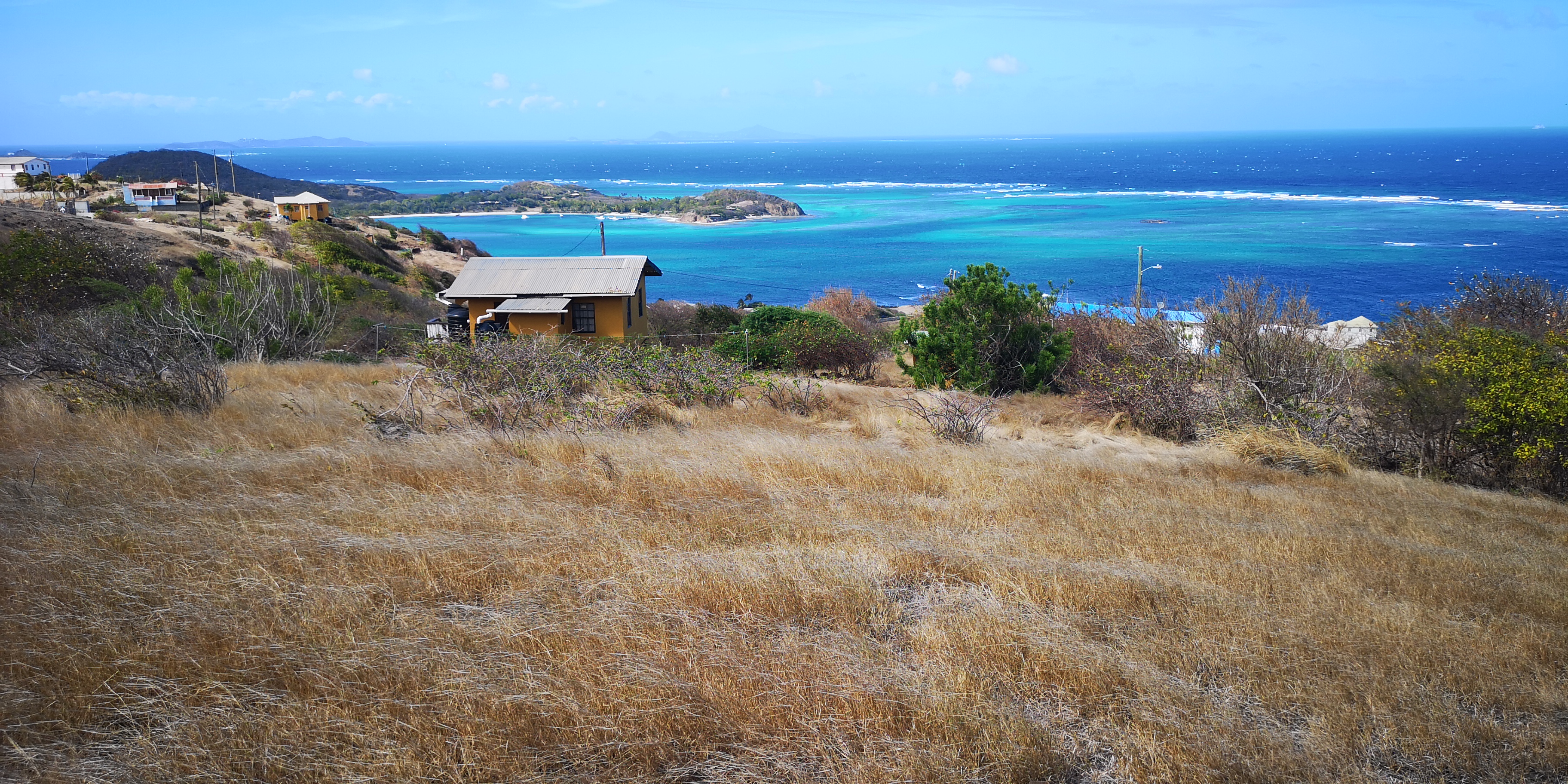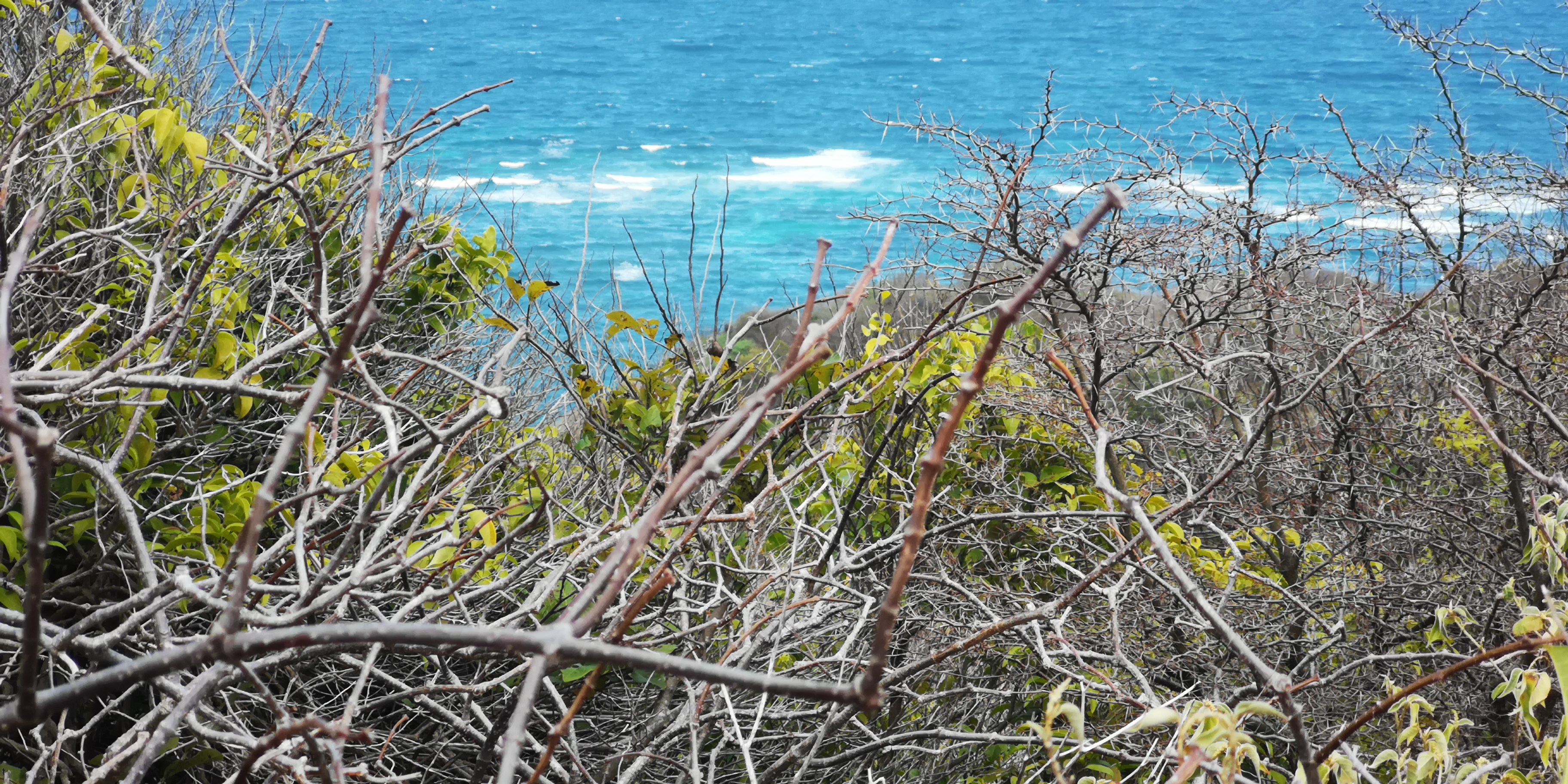 Erst weiter Richtung Nordosten wird das Gras länger. Offenbar gibt es selbst auf dieser kleinen Insel unterschiedliche Vegetationszonen. Wieder einmal zeigt sich, wie sehr die Passatwolken das Inselleben prägen.