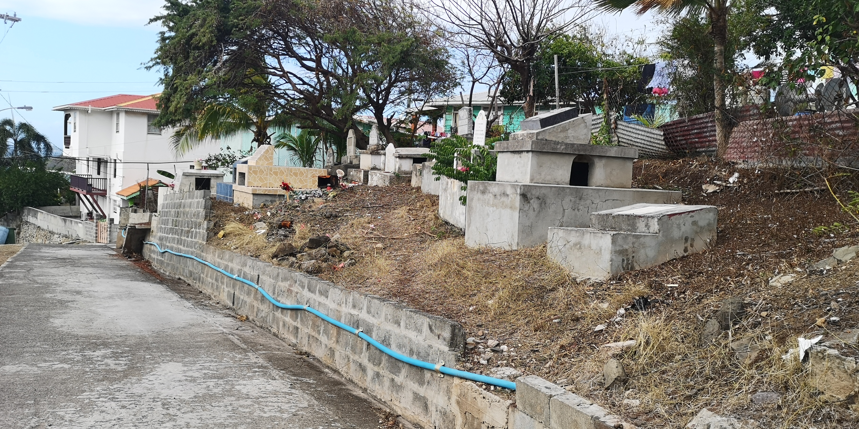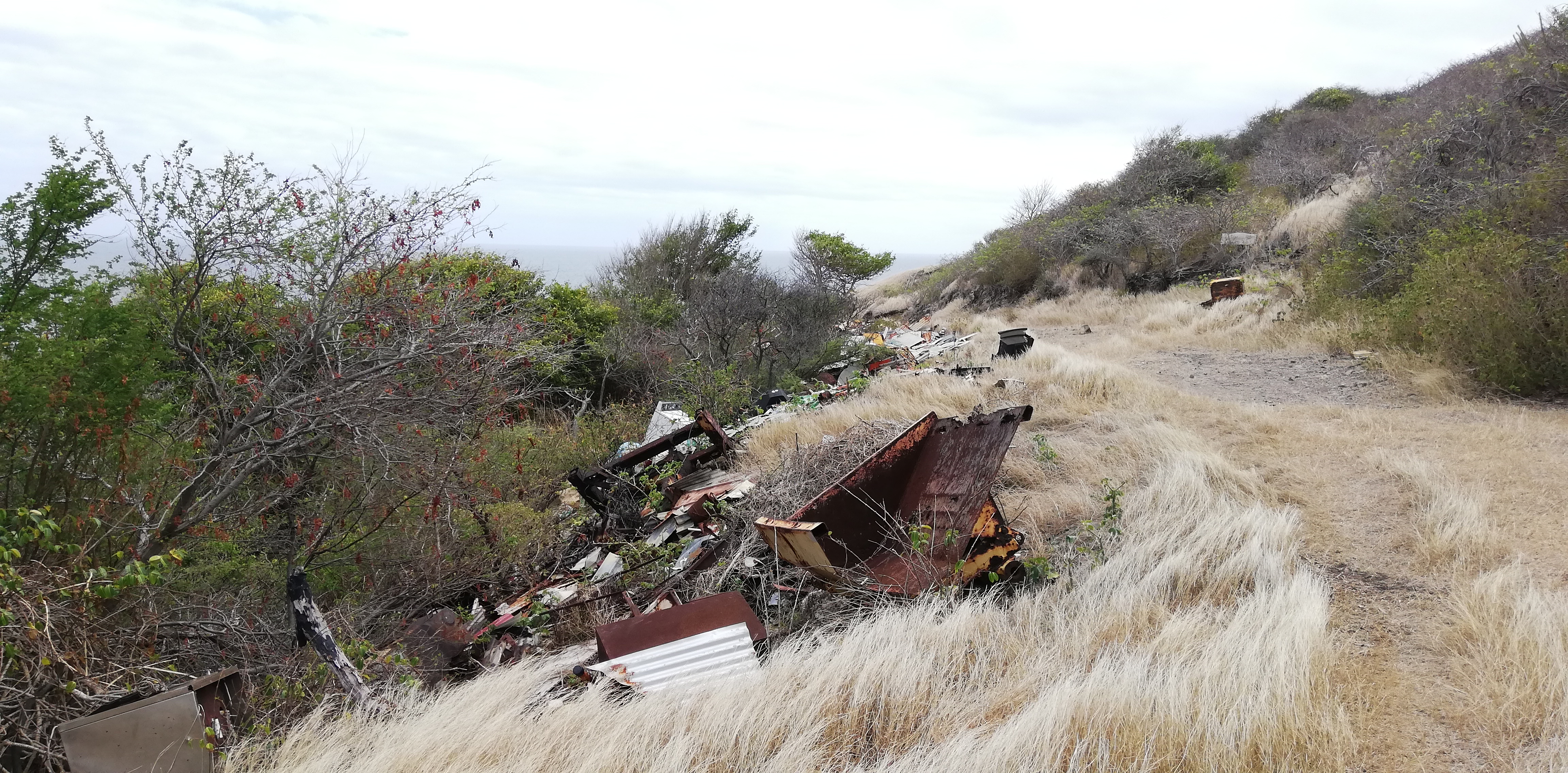 Auf der Insel liegt nach meinem Eindruck deutlich weniger Müll herum als auf den Inseln zuvor. Vor allem Mayreau erschien mir recht vermüllt. Fern ab der Bebauung finden wir an der Ostküste einen Schrottplatz. Offenbar karrt man den Schrott hier zusammen, statt ihn wie vielfach sonst wild zu entsorgen.