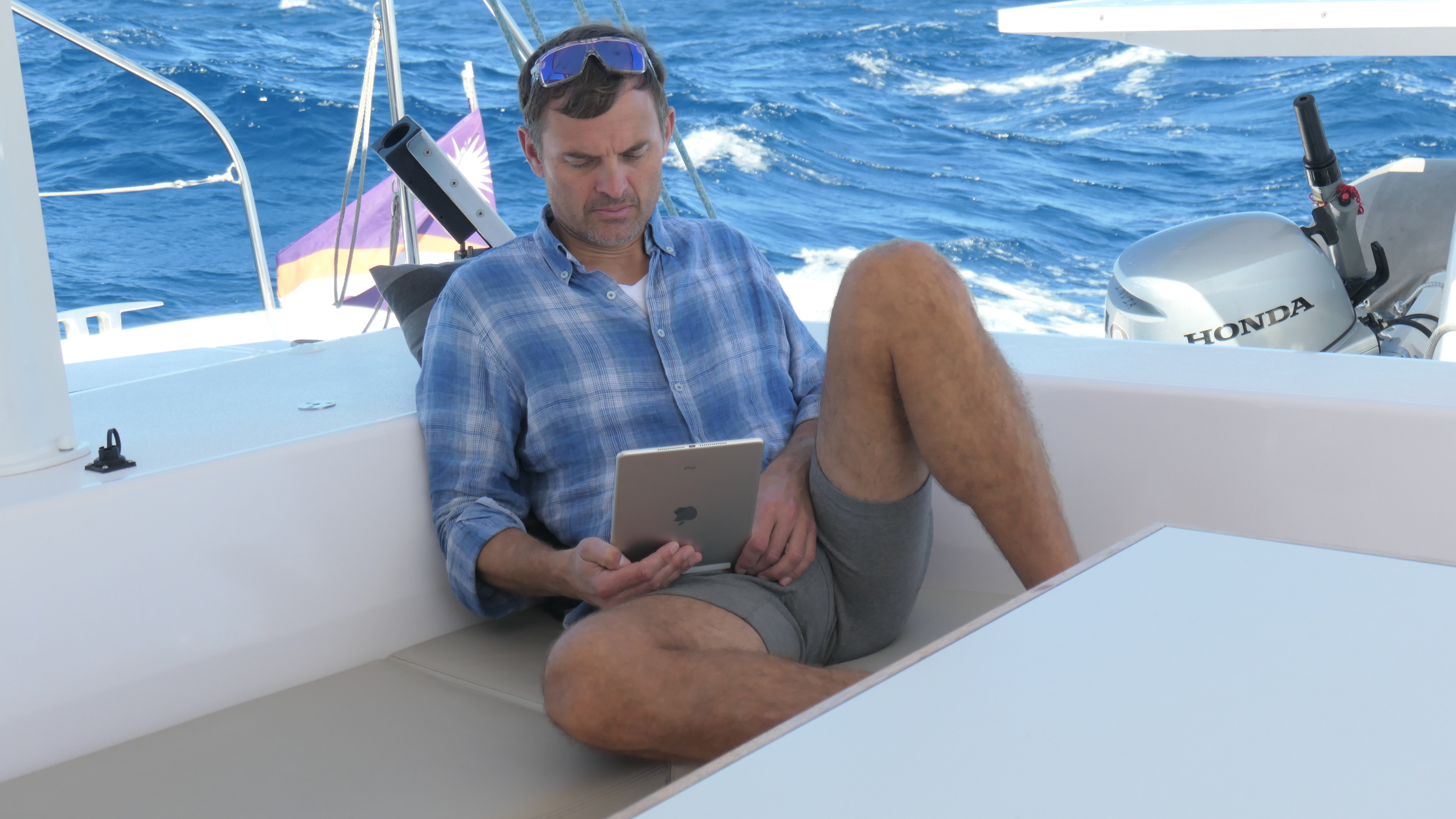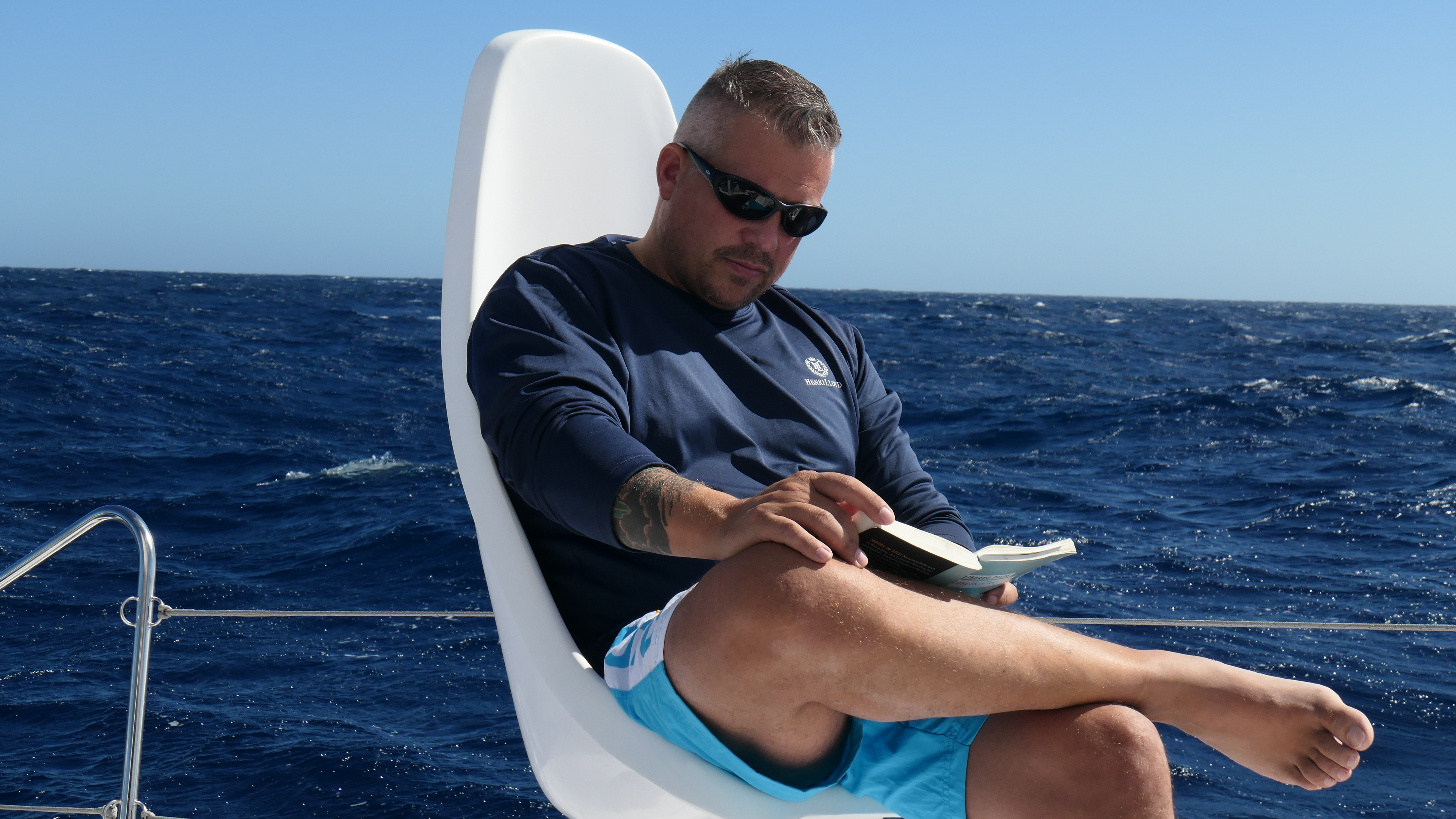 Einhandsegler Martin von der SY HEIN und „DJ“. DJ betreibt einen Taxi- und Yachtservice. Er koordiniert das Ankerfeld, entsorgt Müll, organisiert gemeinsame Abendessen und Ausflüge etc.