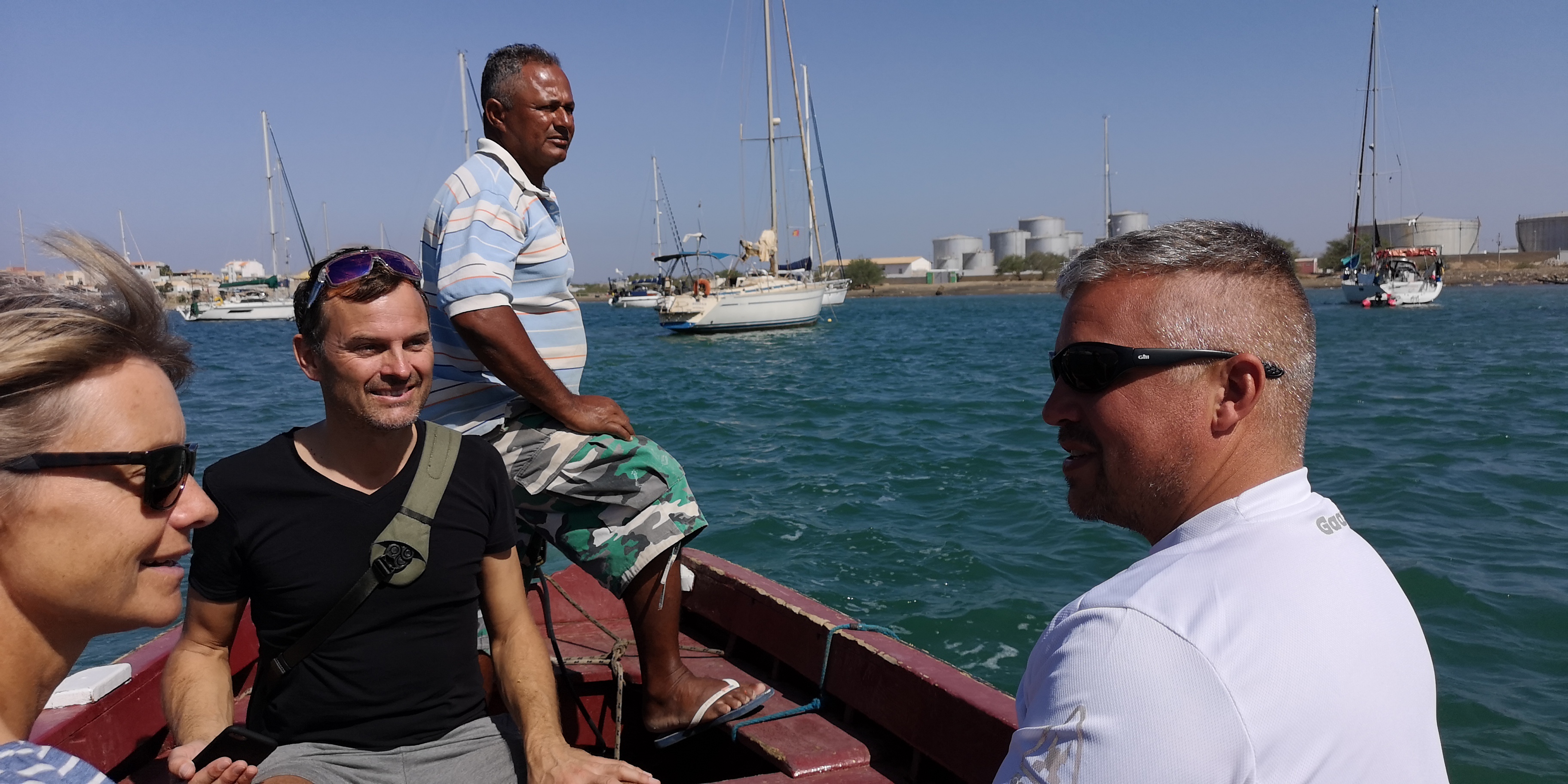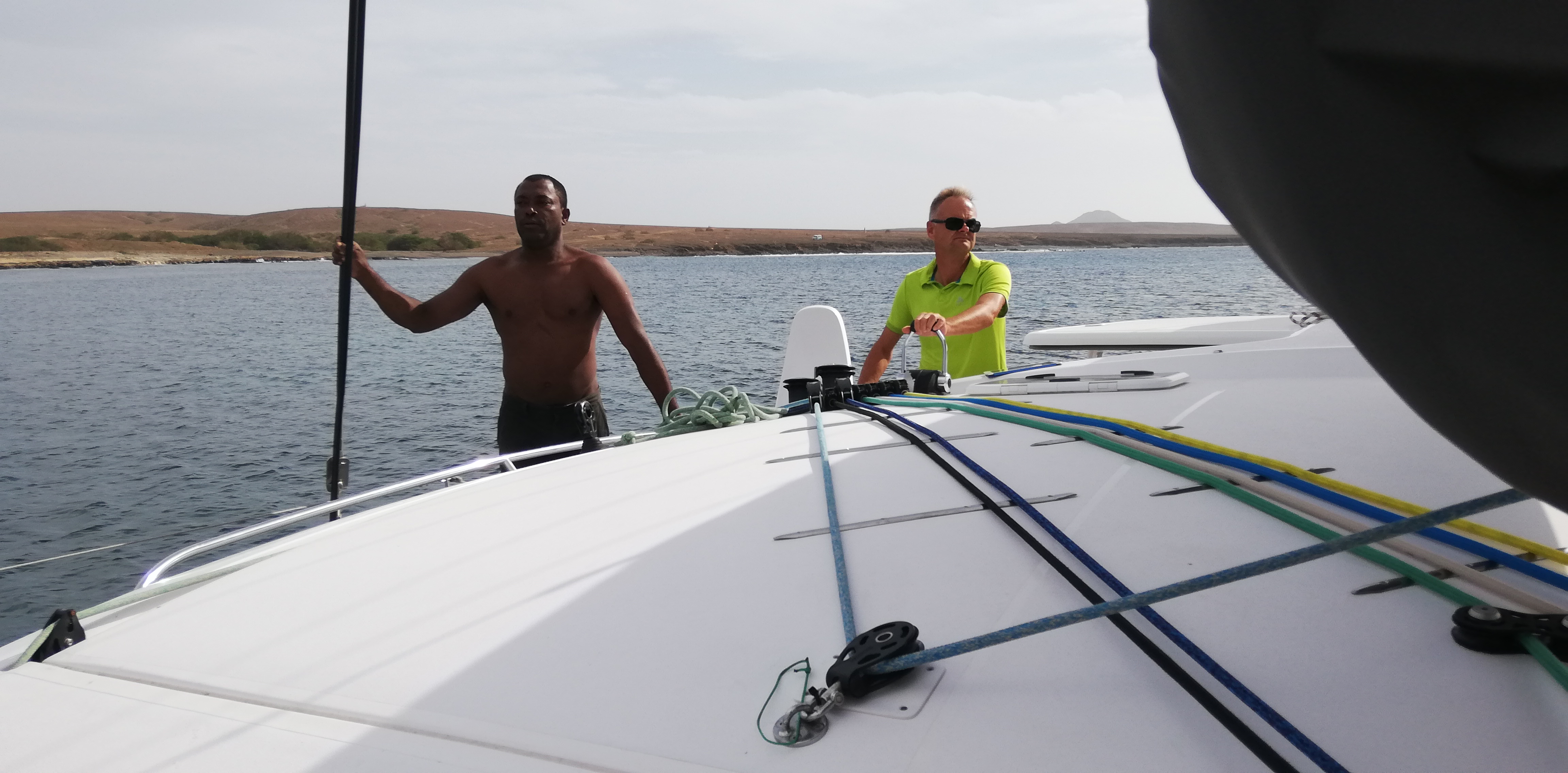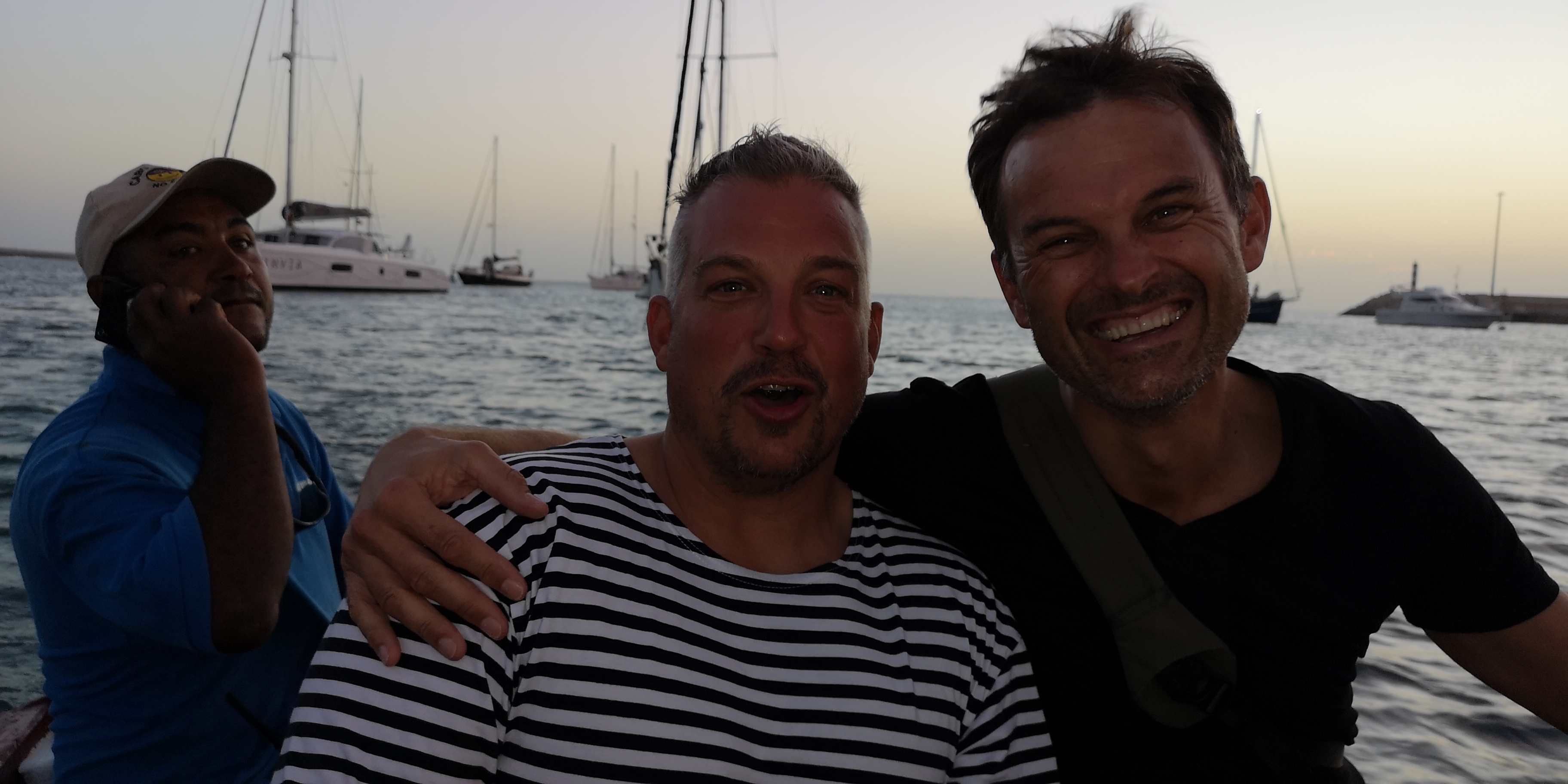 Land in Sicht! Bernhard & Tobias bei der ersten Inaugenscheinnahme von Sal