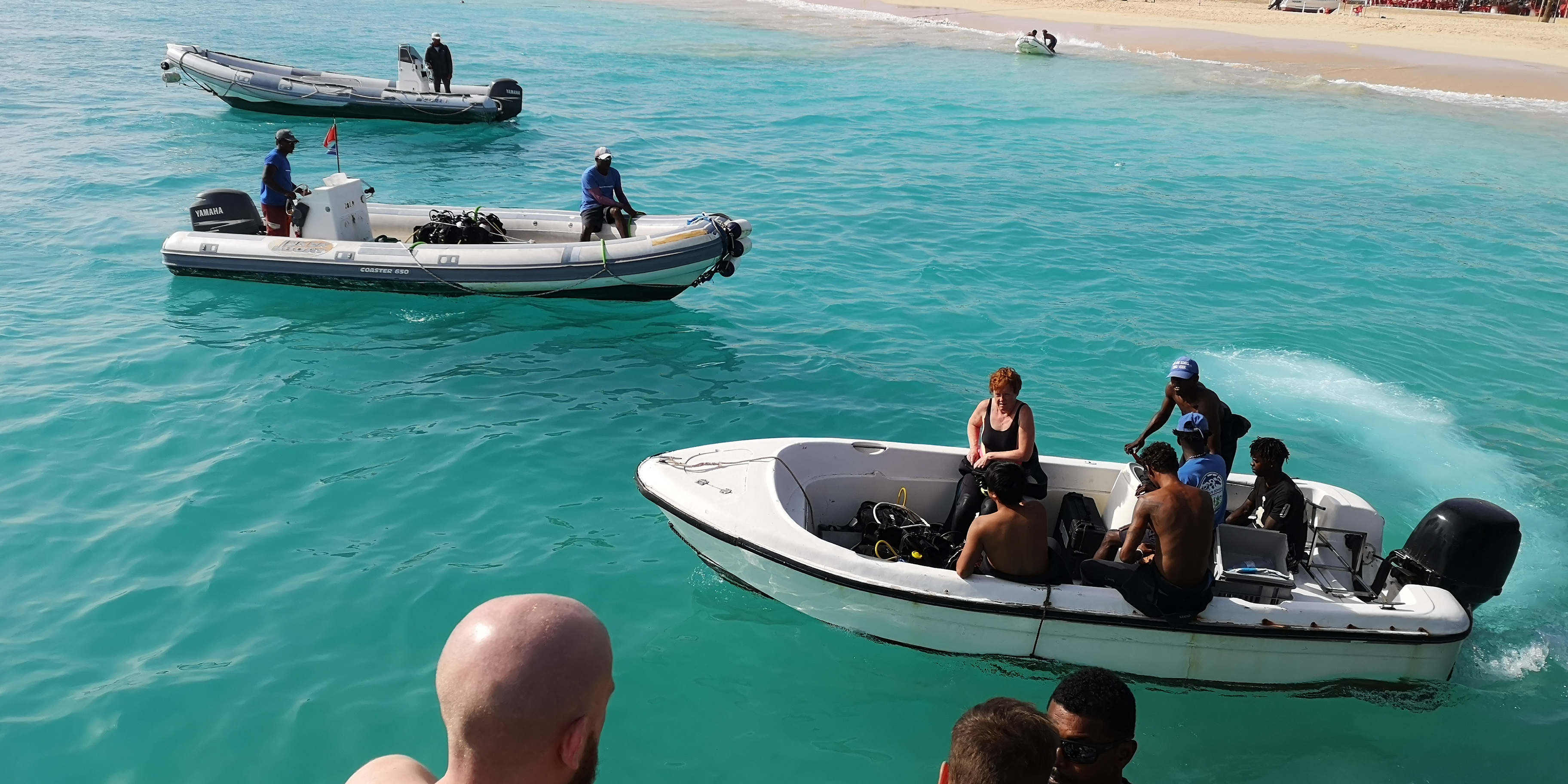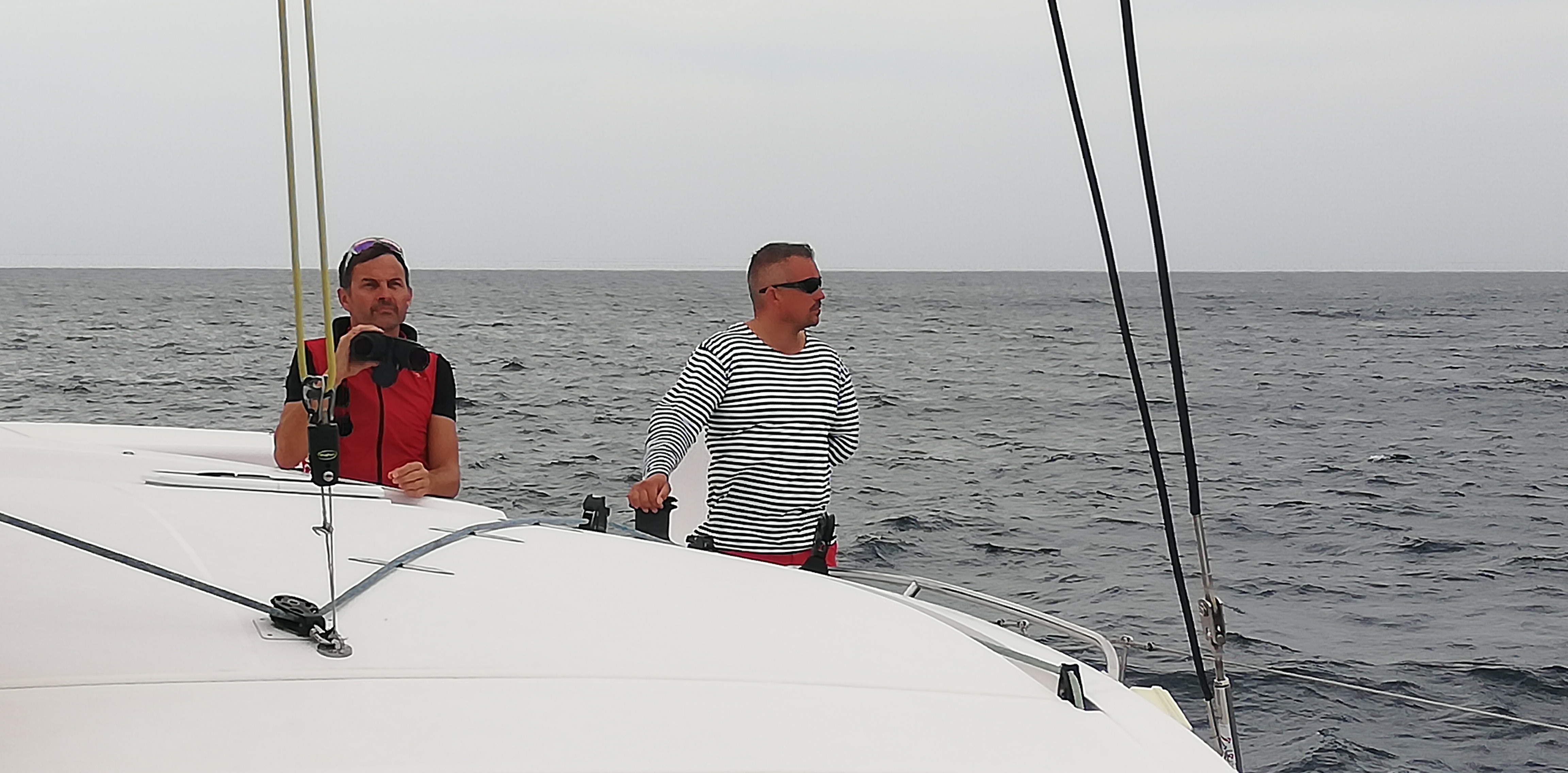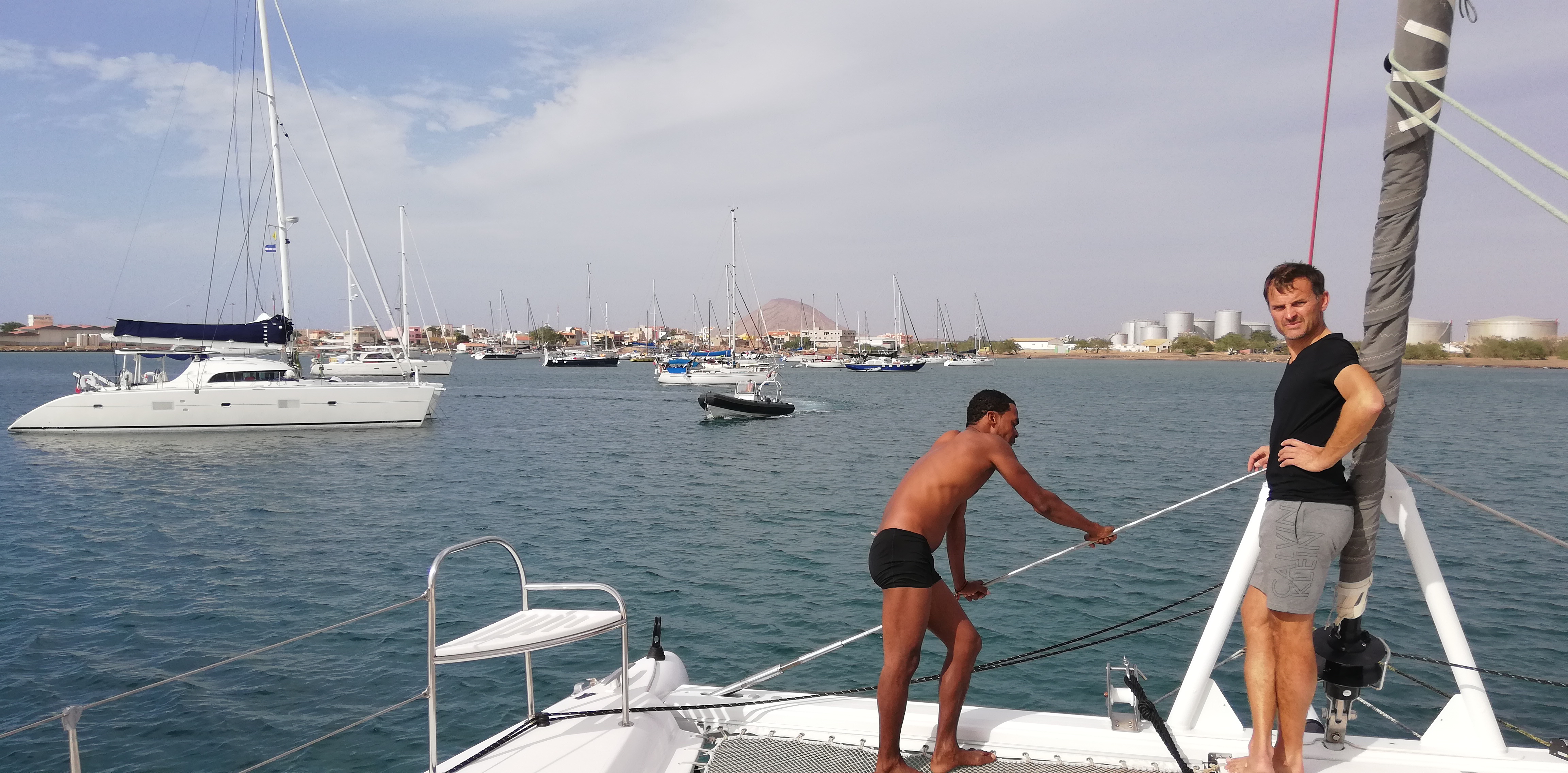 Land in Sicht! Bernhard & Tobias bei der ersten Inaugenscheinnahme von Sal