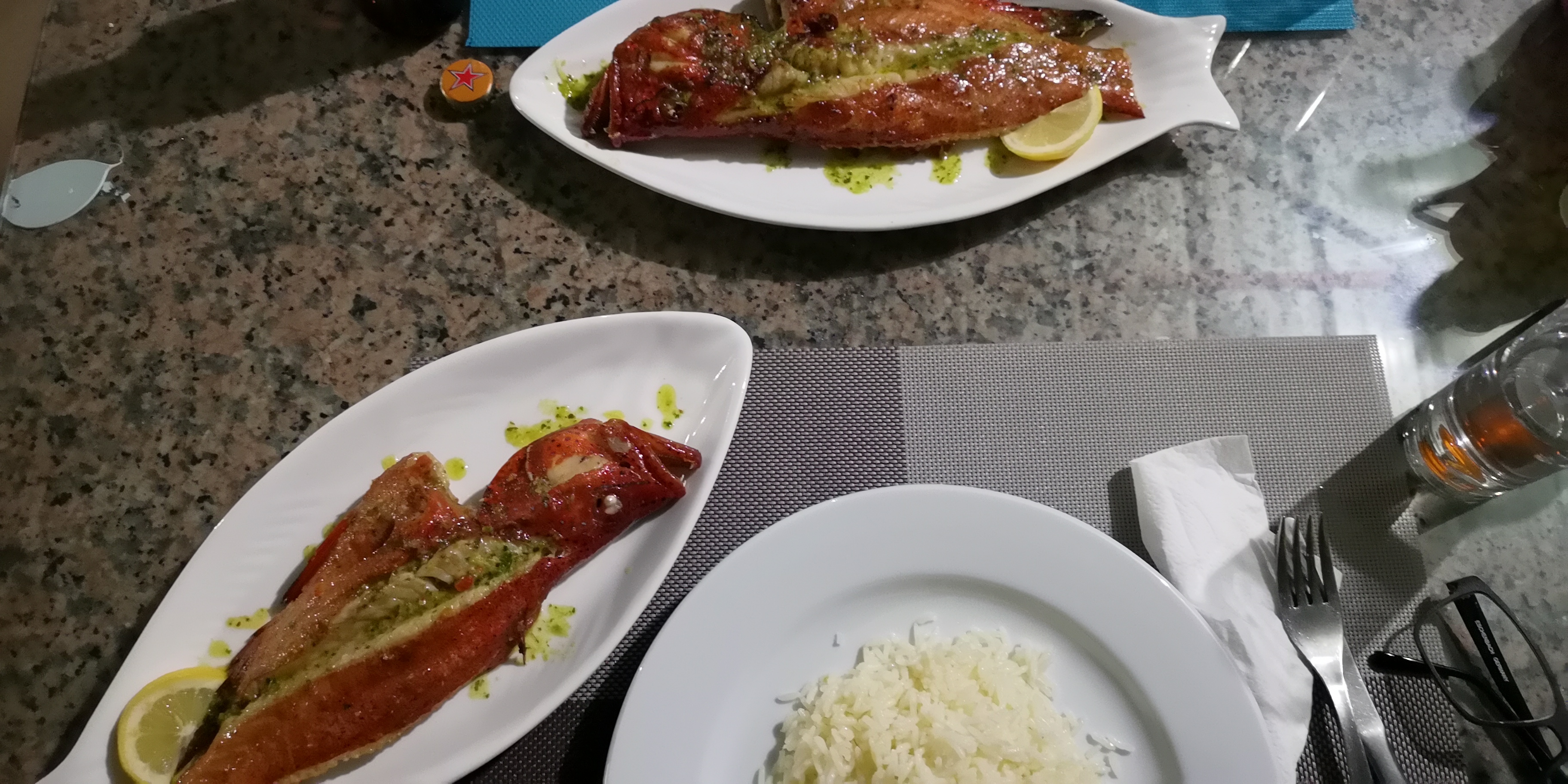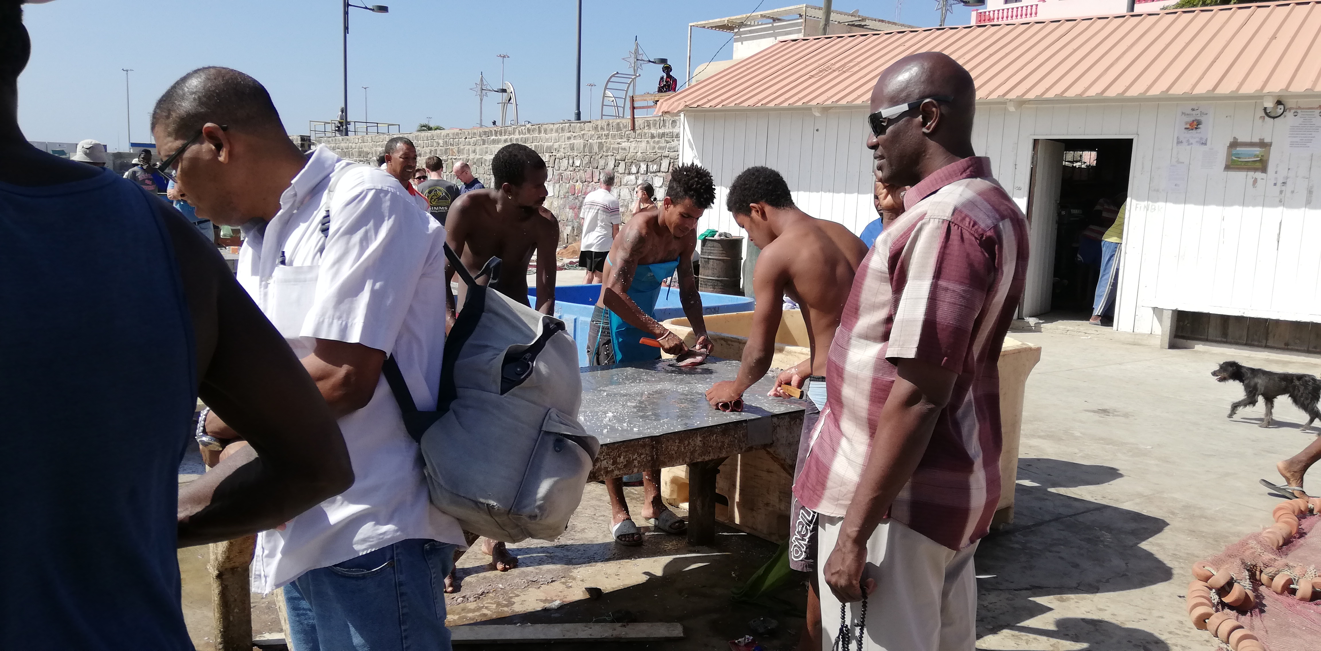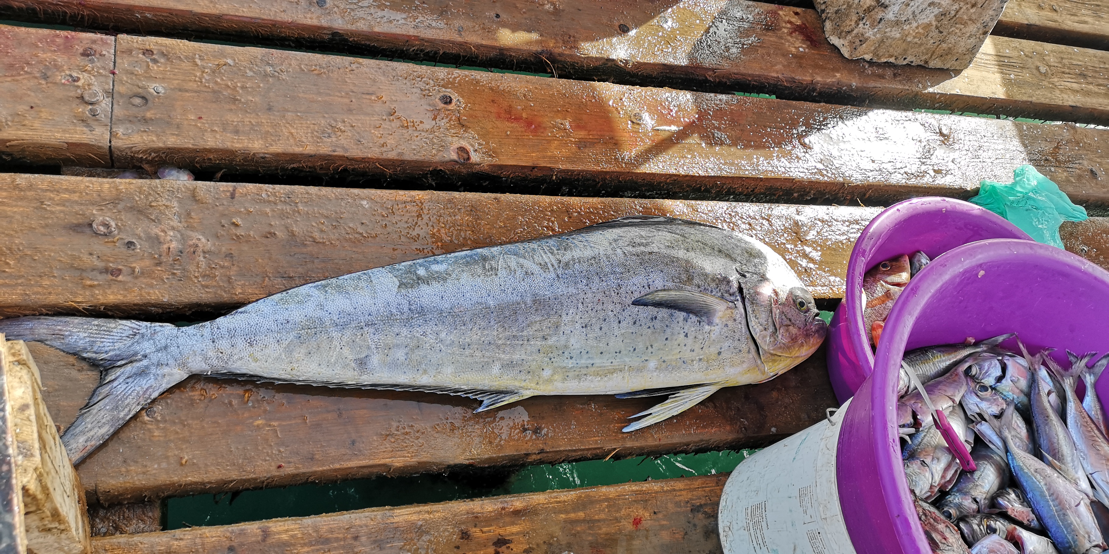 Santa Maria: Auf dem Steg wird der Fang des Tages zum Kauf angeboten. Ich glaube, das ist eine Goldmakrele – oder weiß jemand mehr?