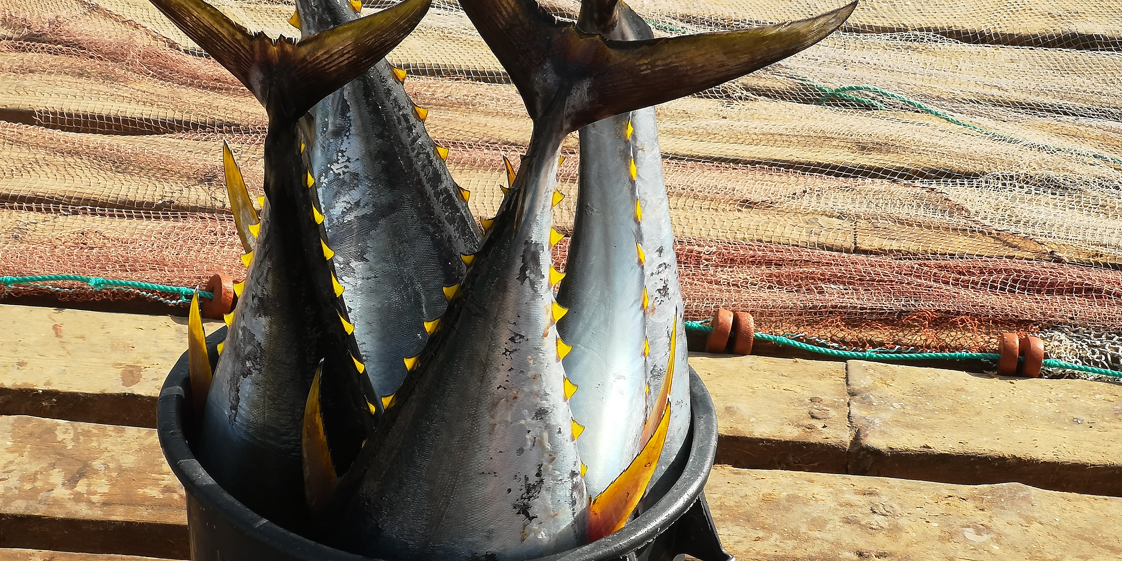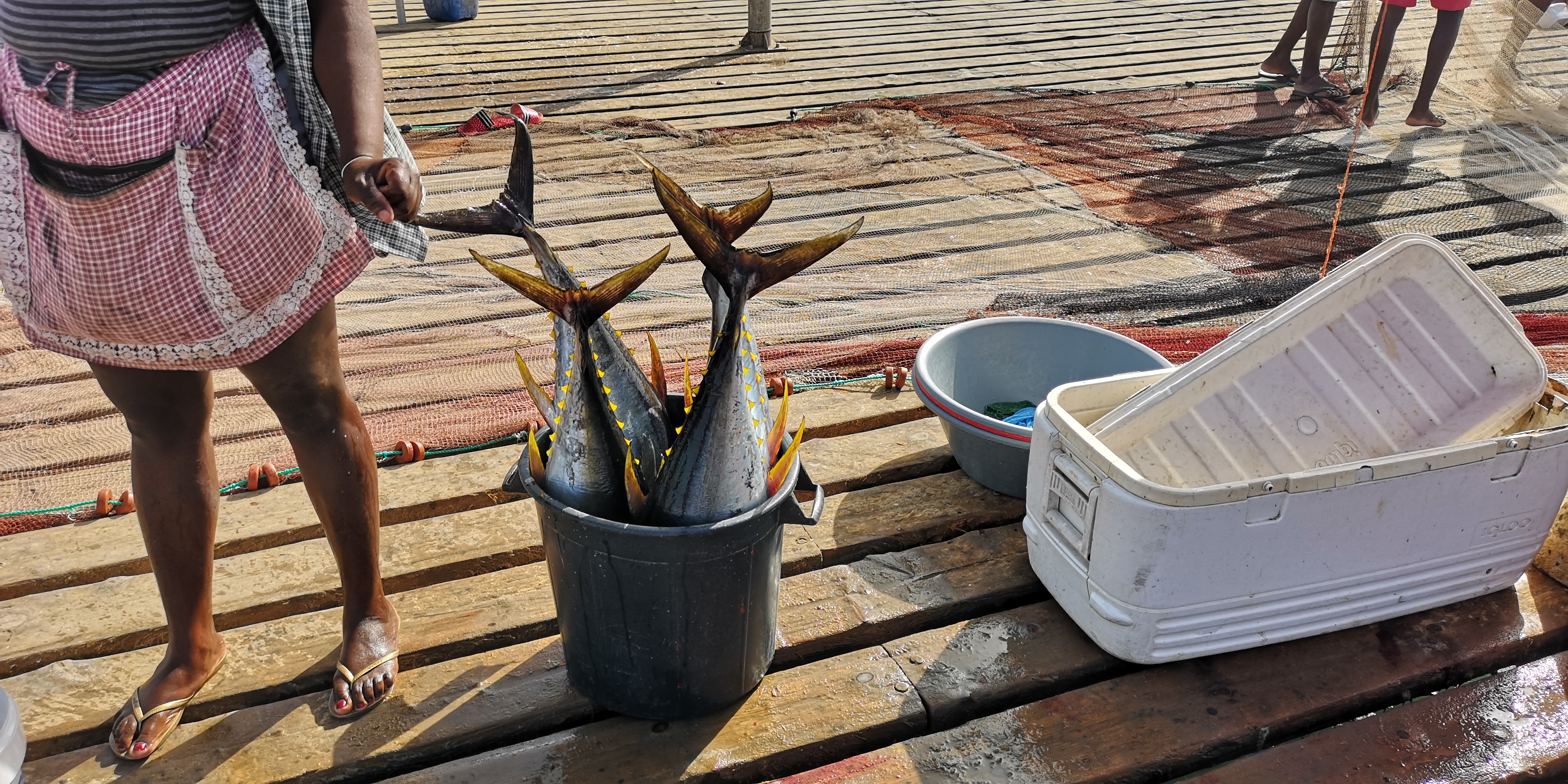 Santa Maria: Auf dem Steg wird der Fang des Tages zum Kauf angeboten. Hier Thunfisch.