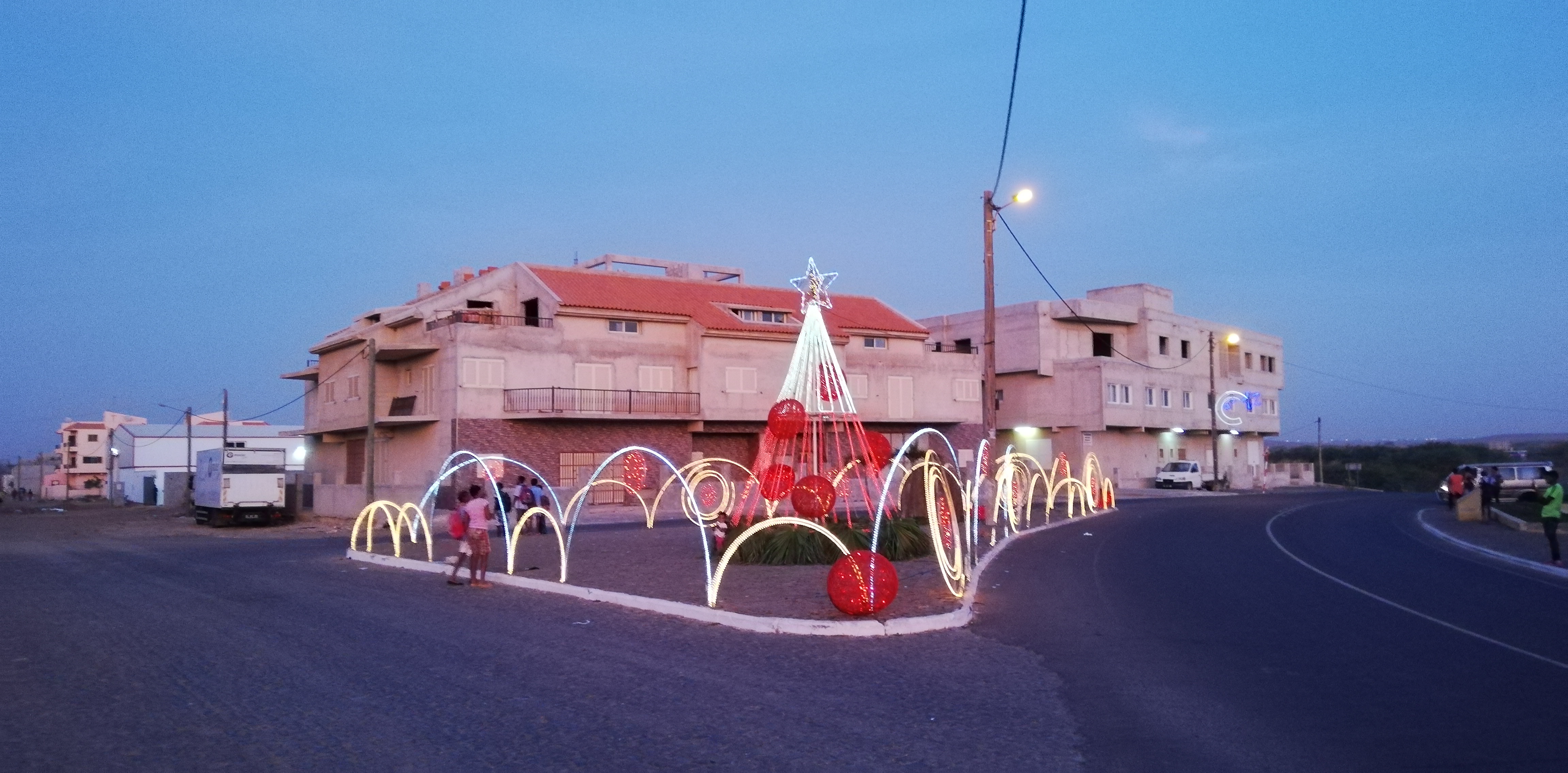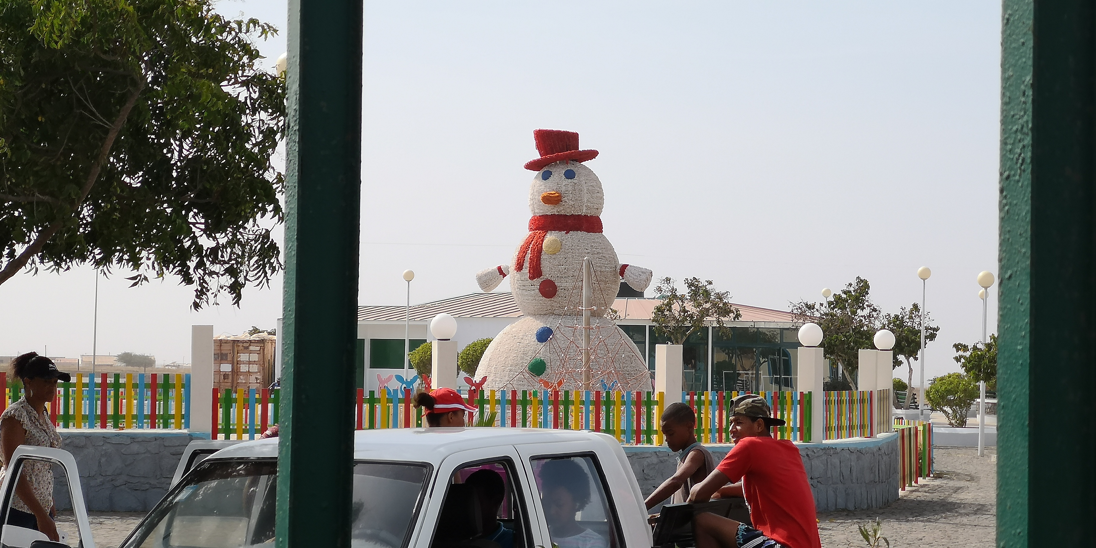 Espargos: Strassenarbeiter mit Weihnachtsmütze