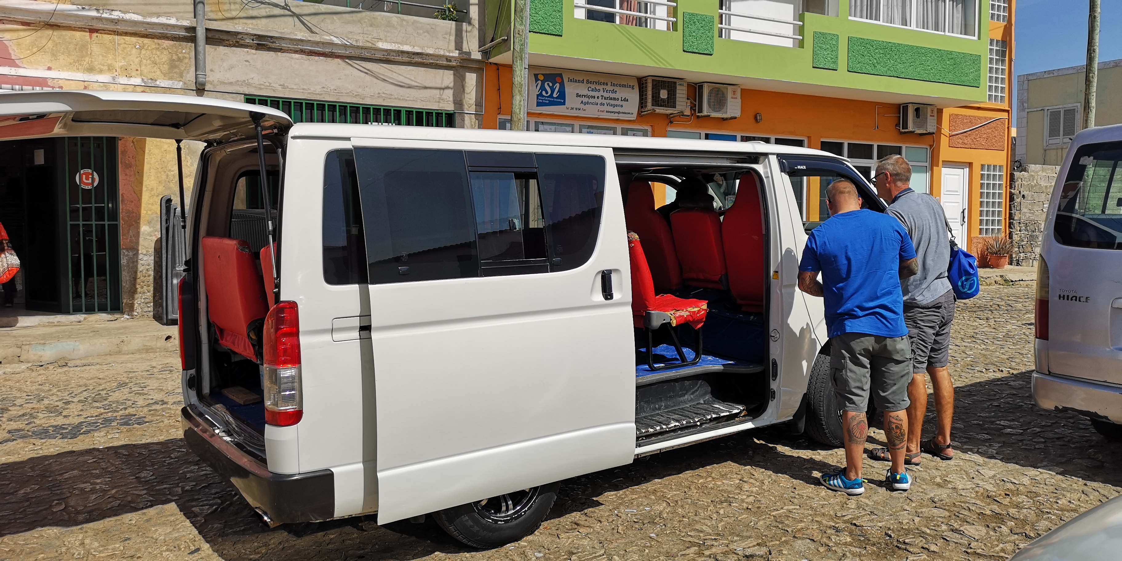 Ich ergattere diesen allerletzten Sitzplatz im Sammeltaxi nach Espargos. Eingepfercht zwischen Tobias und die capitania zu meiner Linken und einer jungen Frau zu meiner Rechten