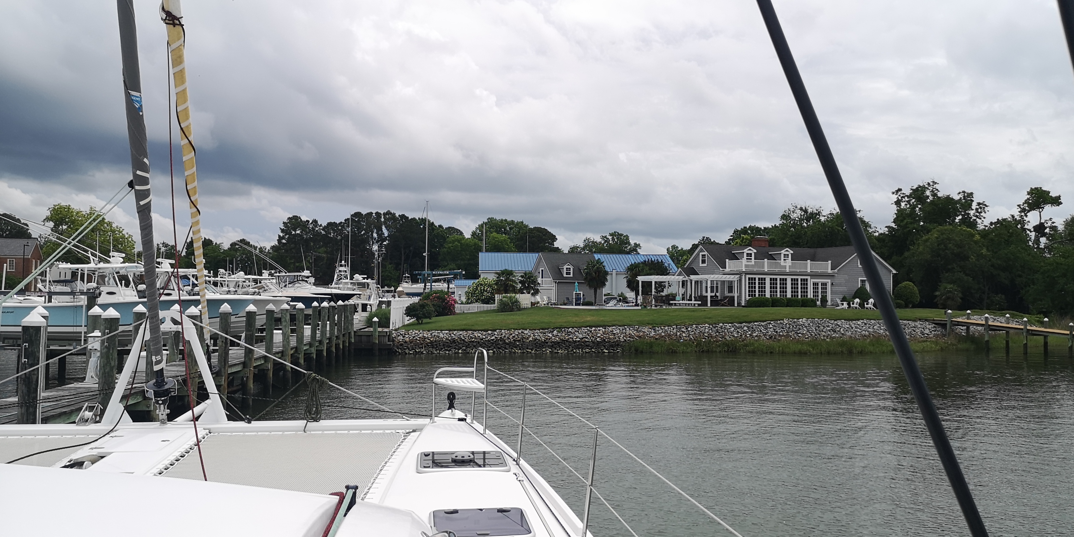 In Hampton ist unser Standort in der Bluewater Yachting Marina ideal gelegen in Dinghynähe zum Downtown mit Restaurants und Bars und in Laufweite zum Lebensmittel Einkauf. Diesel- und Benzinpreise sind günstig und auf der Marina Webseite veröffentlicht. Anlegen längsseits am niedrigen Steg der Tankstelle ist einfach.