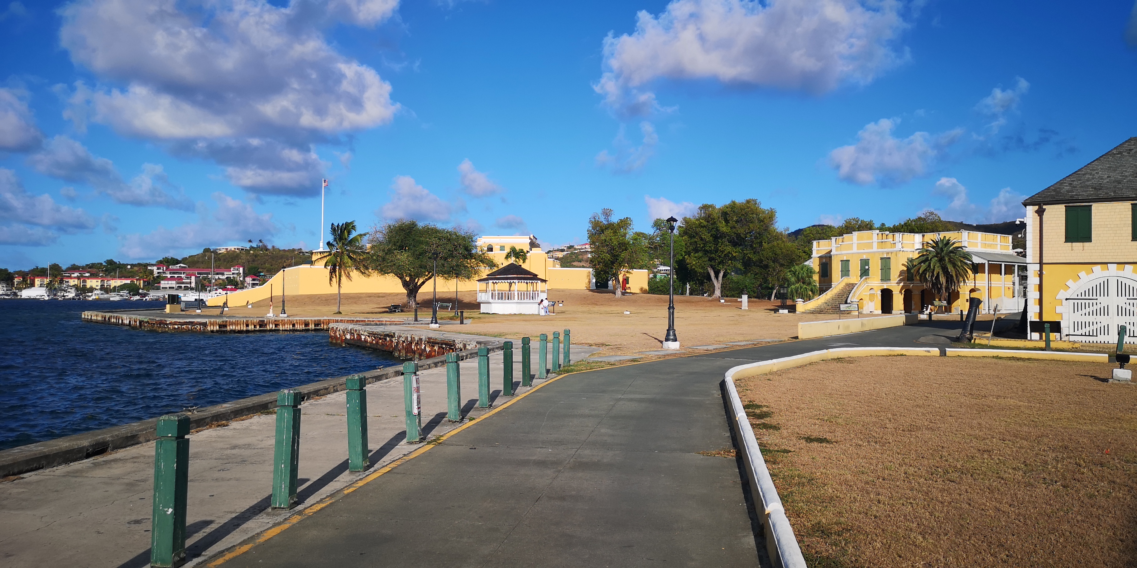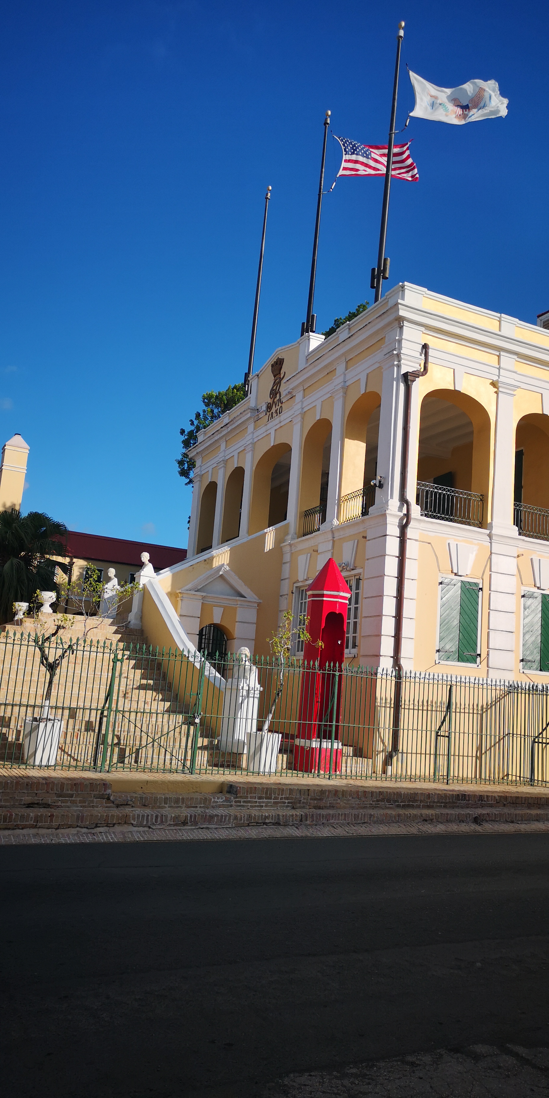 Christiansted ist schön. Viele Gebäude aus der fast 200jährigen dänischen Geschichte zeugen vom Reichtum der Zuckerrohrzeiten. Und etliches zeugt von Sklaven Zeiten, die den Reichtum der Kolonialherren erst möglich machten.