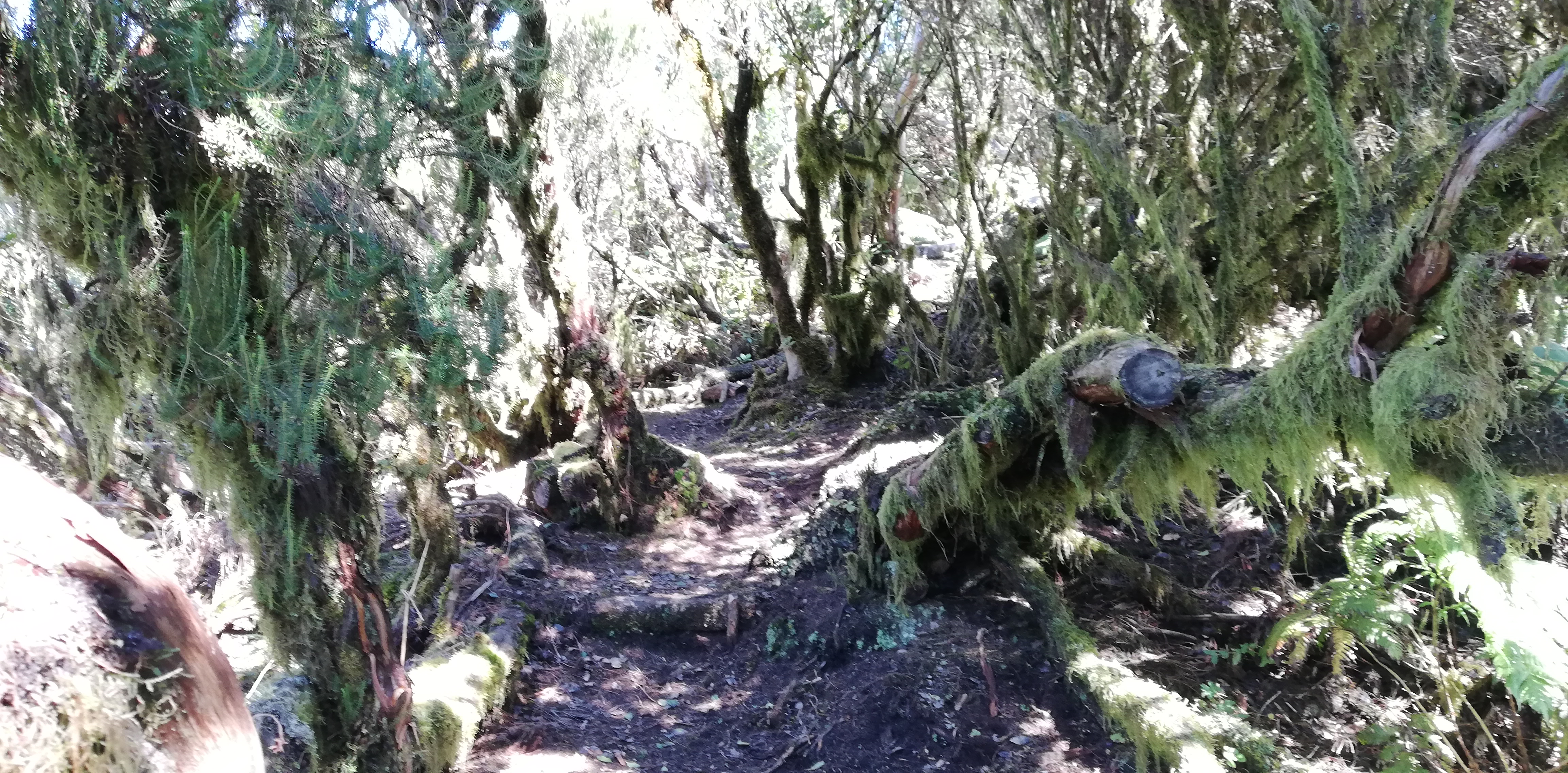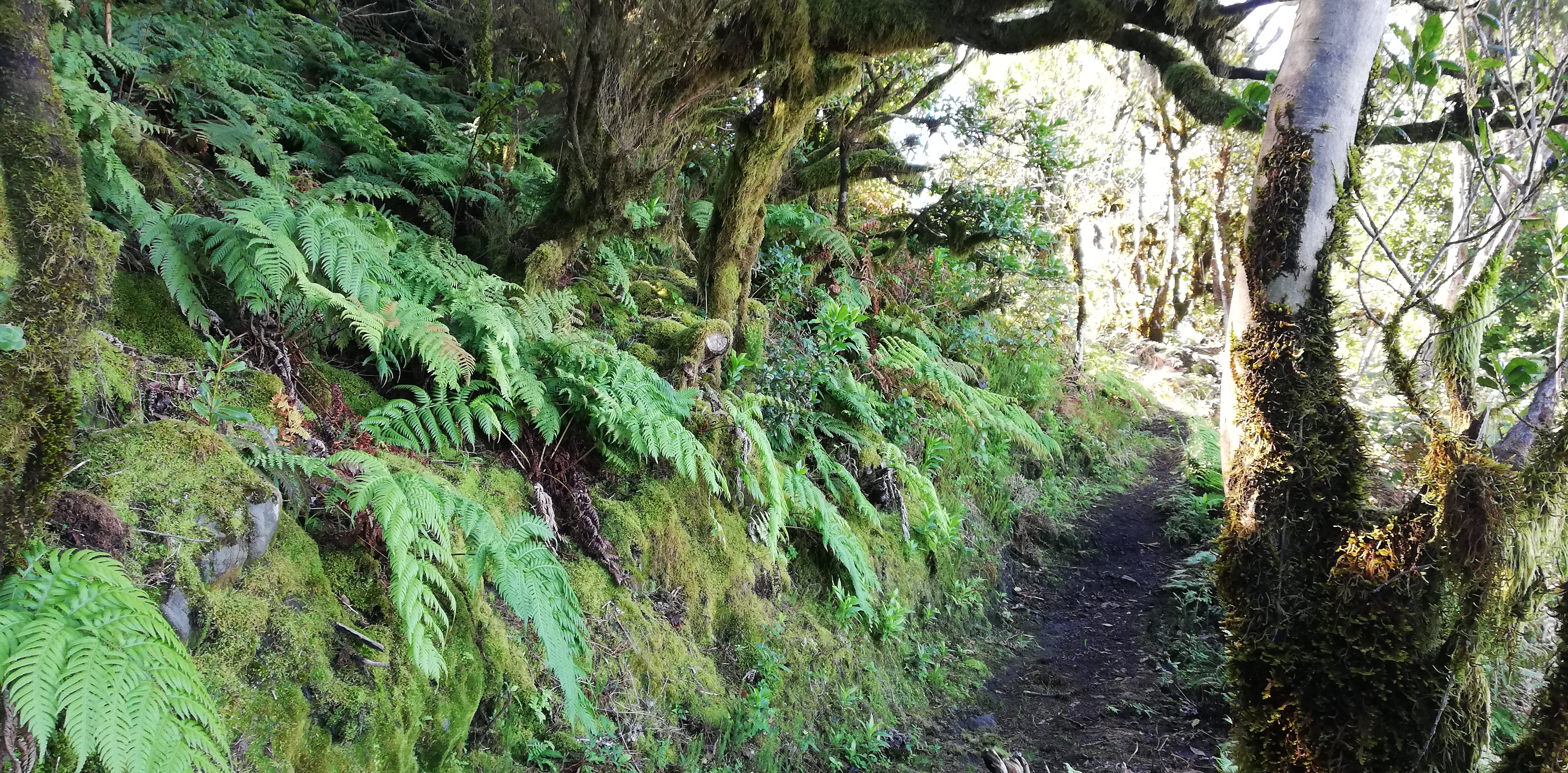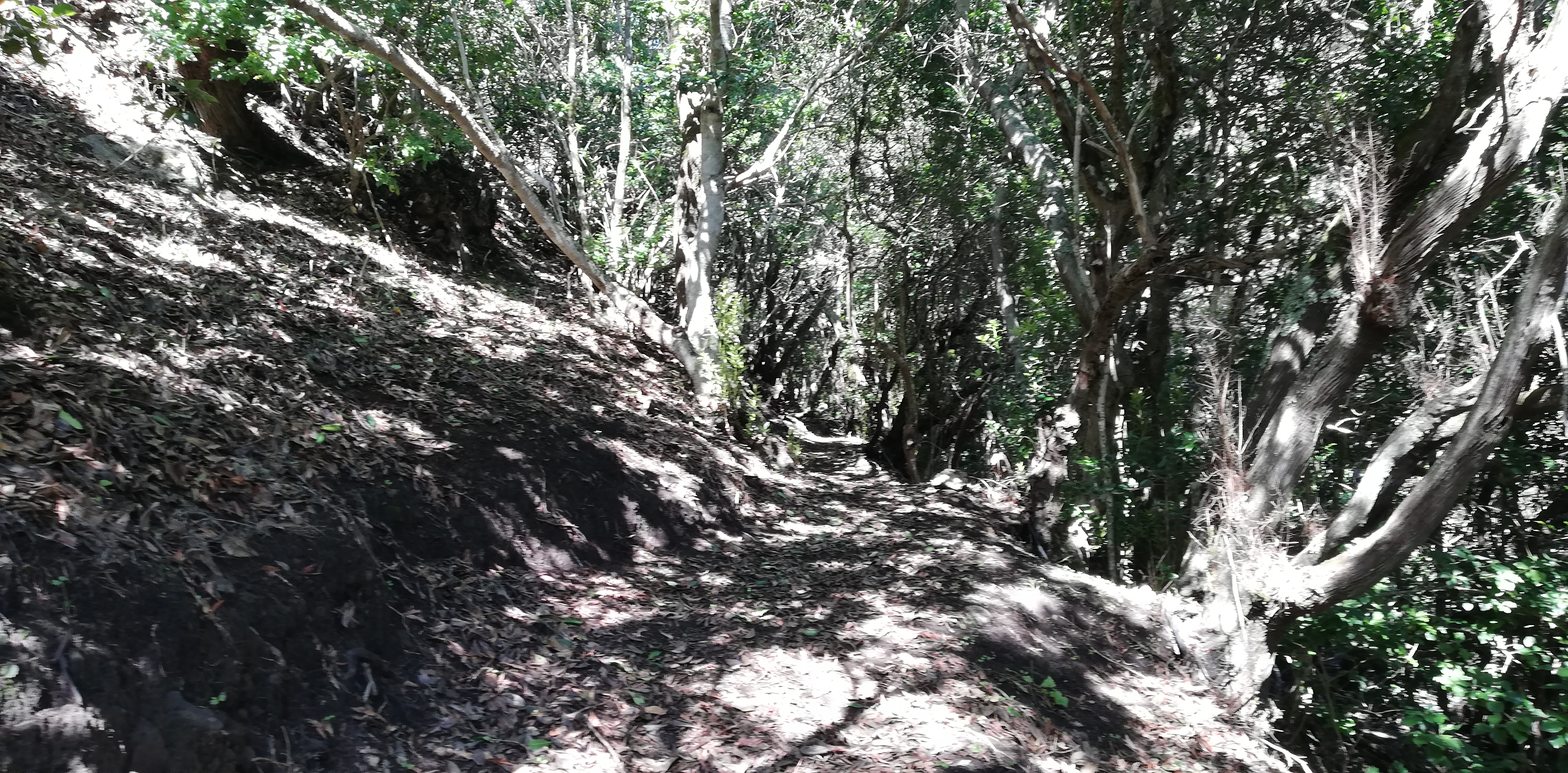 Mit dem dem Taxi fahren wir knapp 8km aus San Sebastian auf der GM-1 bis kurz vor den Mirador A. Lazcano, wo wir den Wanderpfad Richtung Enchereda beginnen. Beim Bauernhof Enchereda gabelt sich der Weg, wir nehmen den linken, kürzeren aber steileren Pfad Richtung Hermigua.