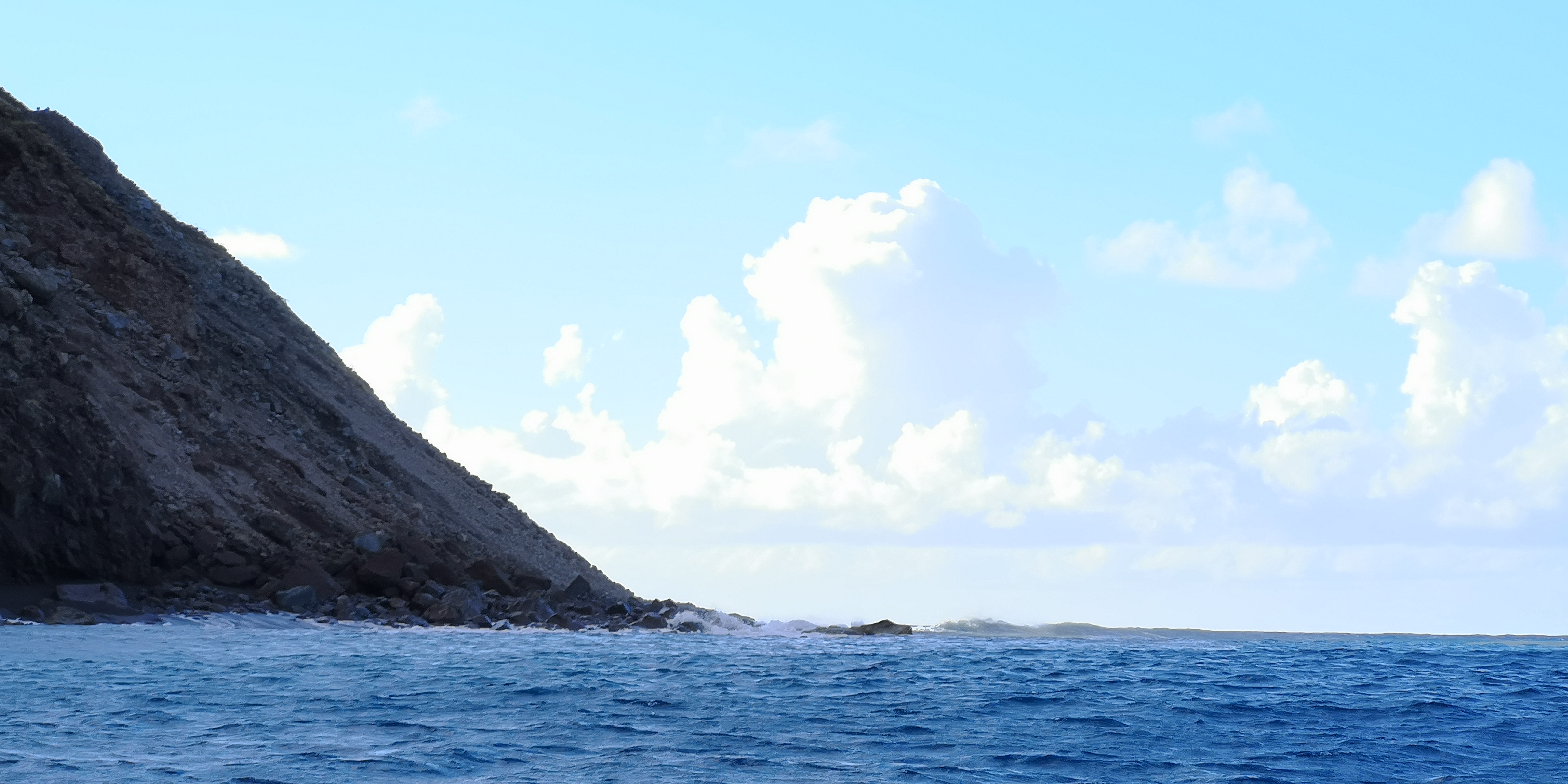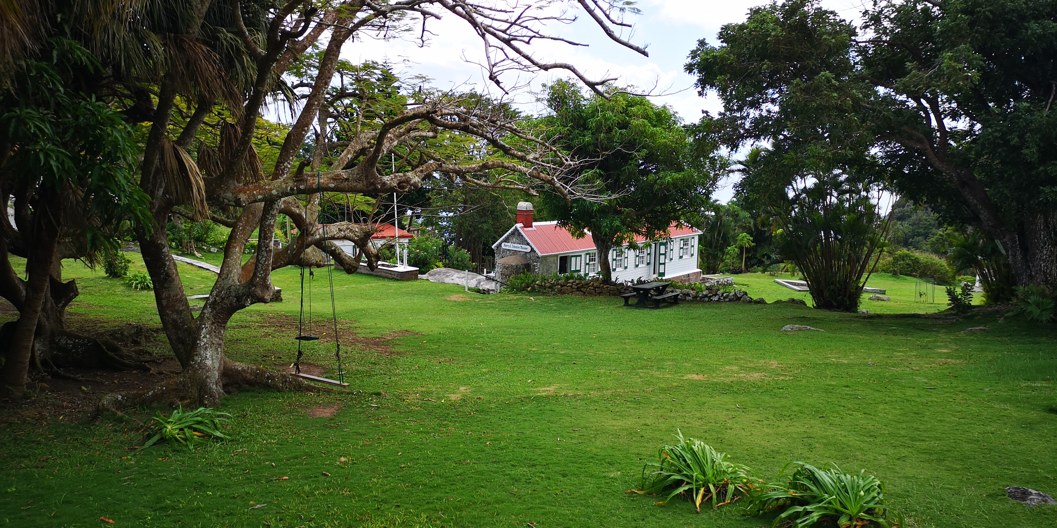 Dazu kommt, dass man von den Bojen aus fast 2 Seemeilen per Dinghy an die Südküste unterwegs ist zum kleinen Hafen in der Fort Bay. Den Wellenbrecher für den Hafen gibt es erst seit 1972. Dort sind Customs und Immigration. Man kommt in jedem Fall nass an. Denn die Dinghy Tour führt um das Kliff Tent Point. Wind- und Wellen Wechsel. Wer vorher noch nicht nass war, wird es auf der zweiten Hälfte des Weges.