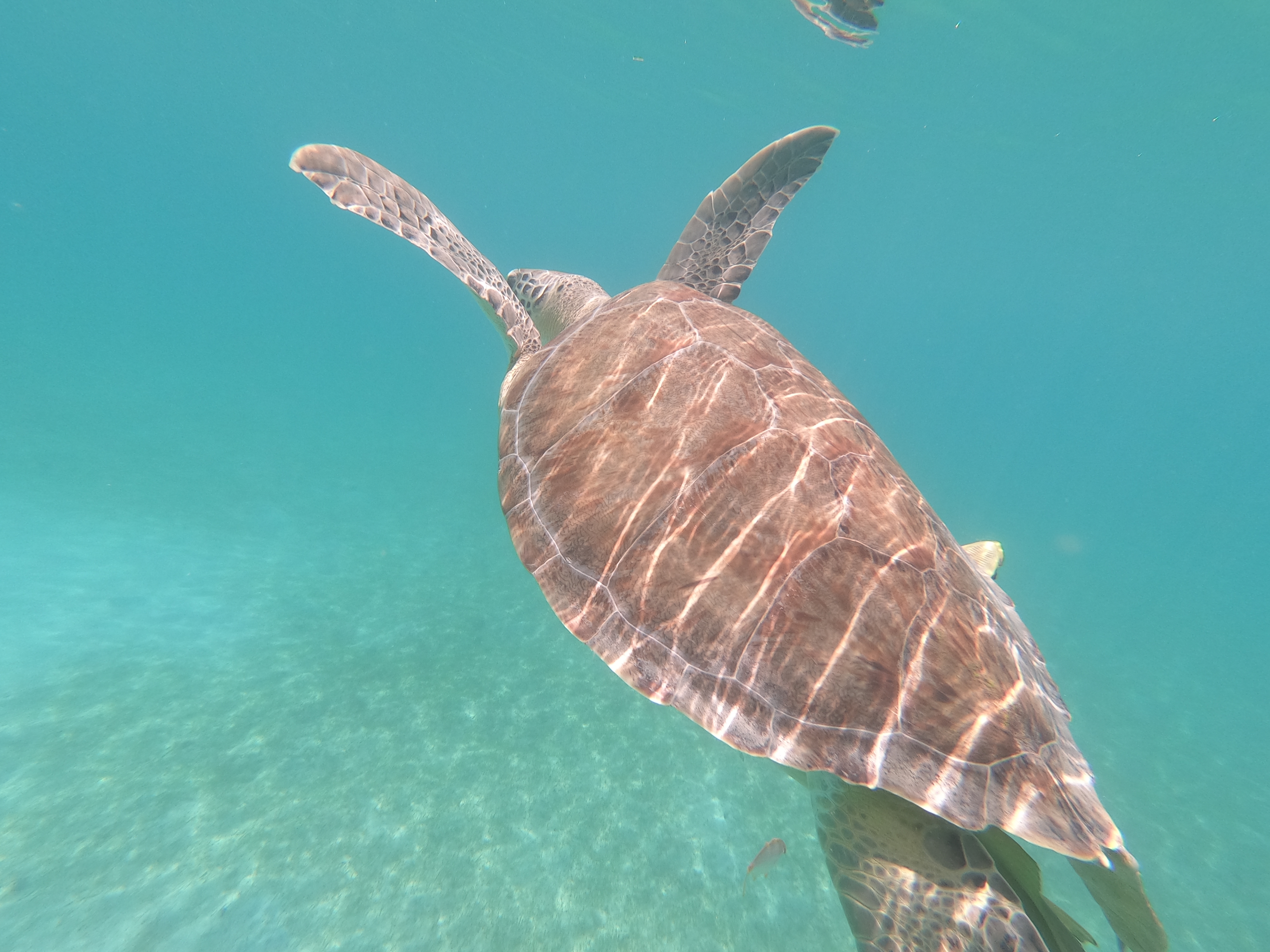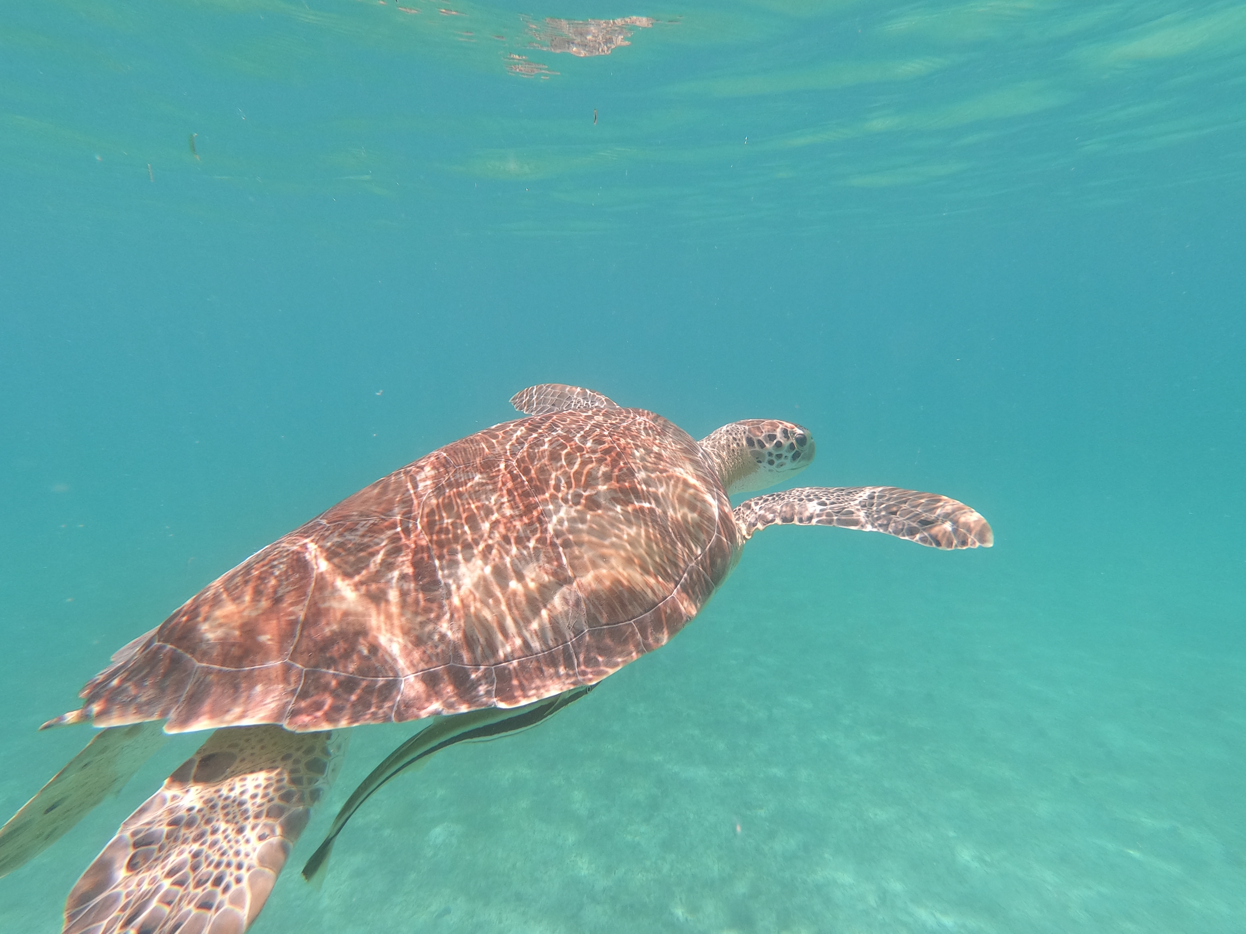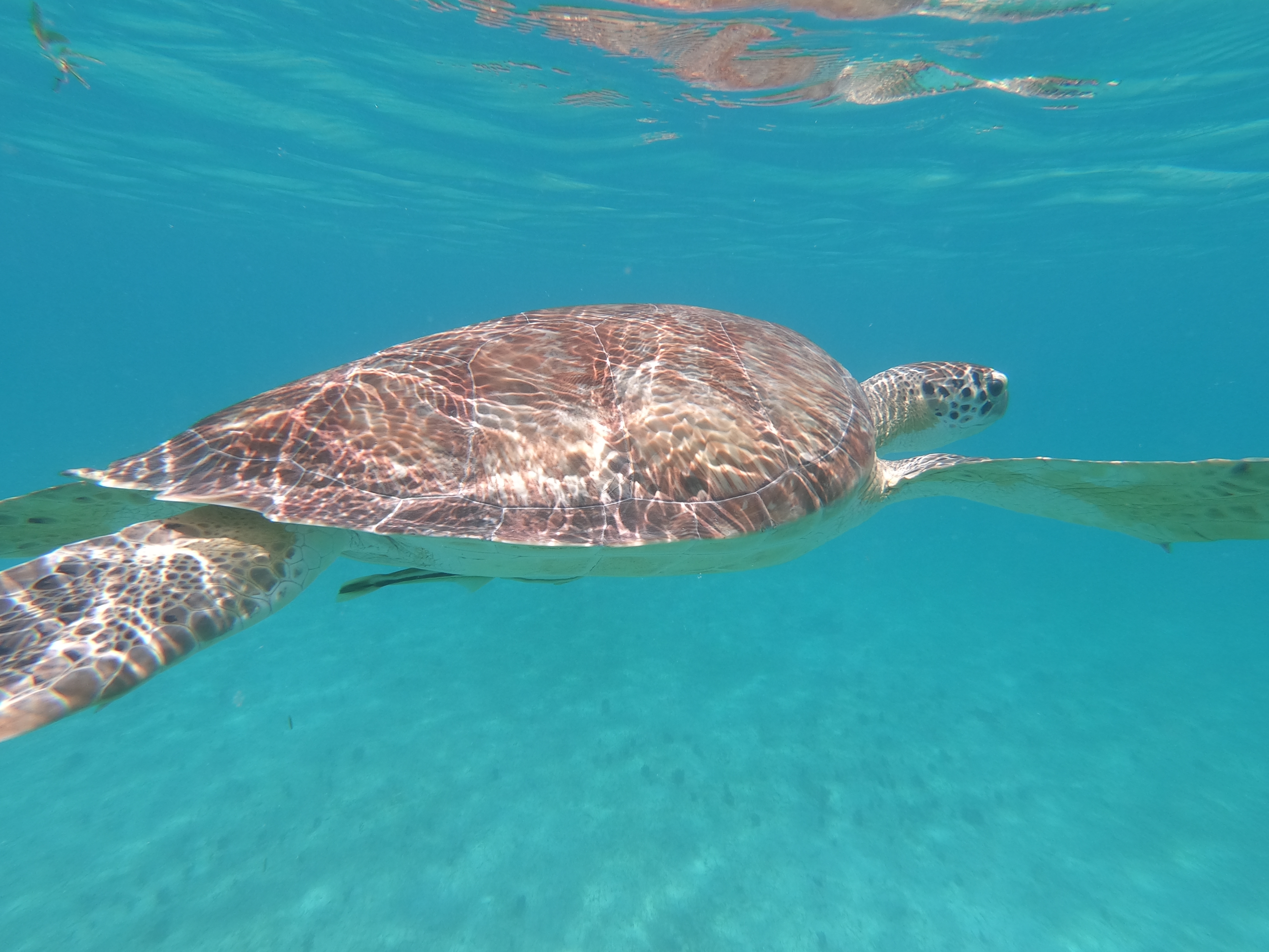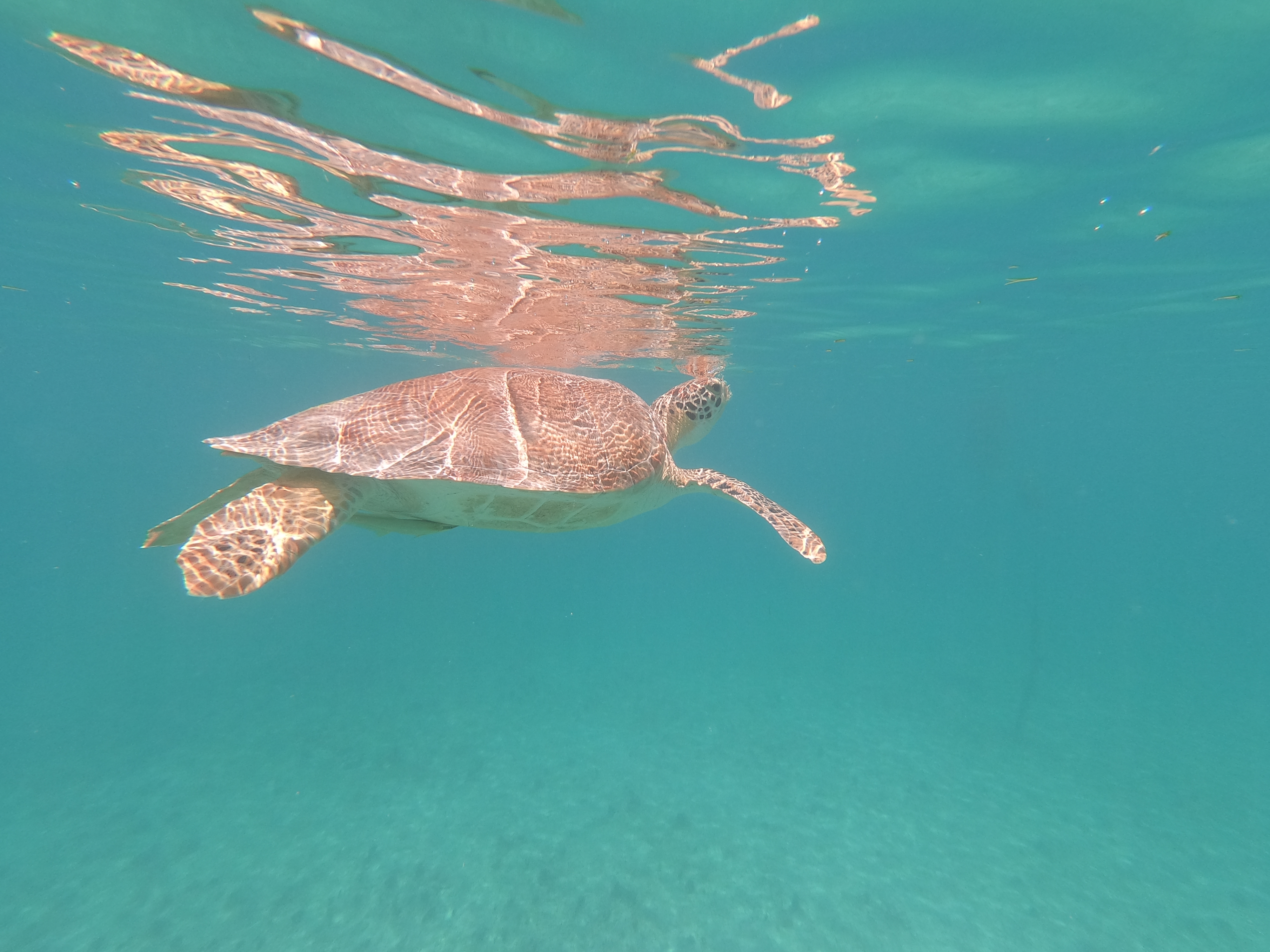 Während sich die Schildkröten selbst durch meine Annäherung per Schnorchel überhaupt nicht stören liessen, wurden die Fische doch etwas nervöser.
