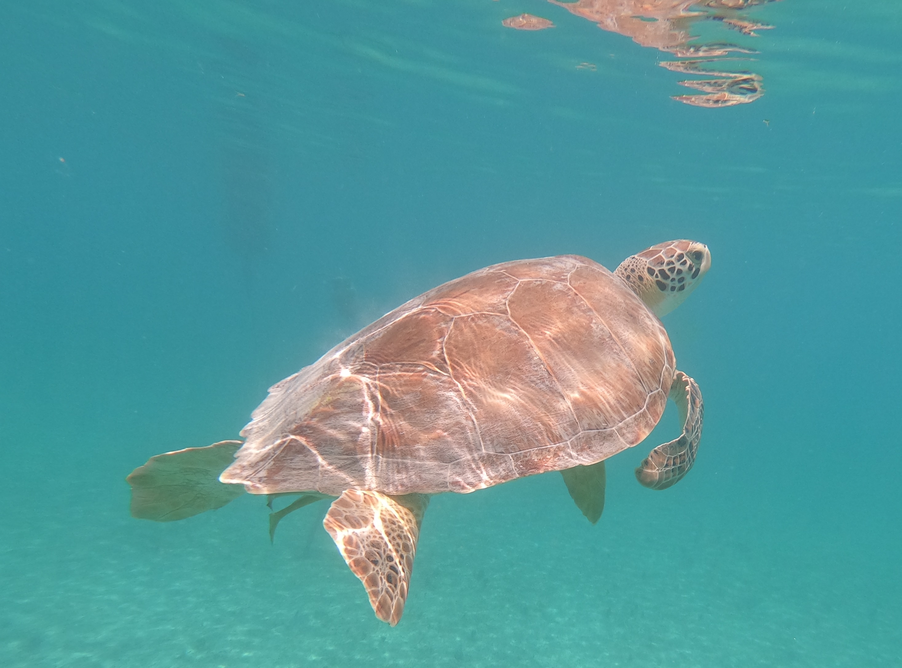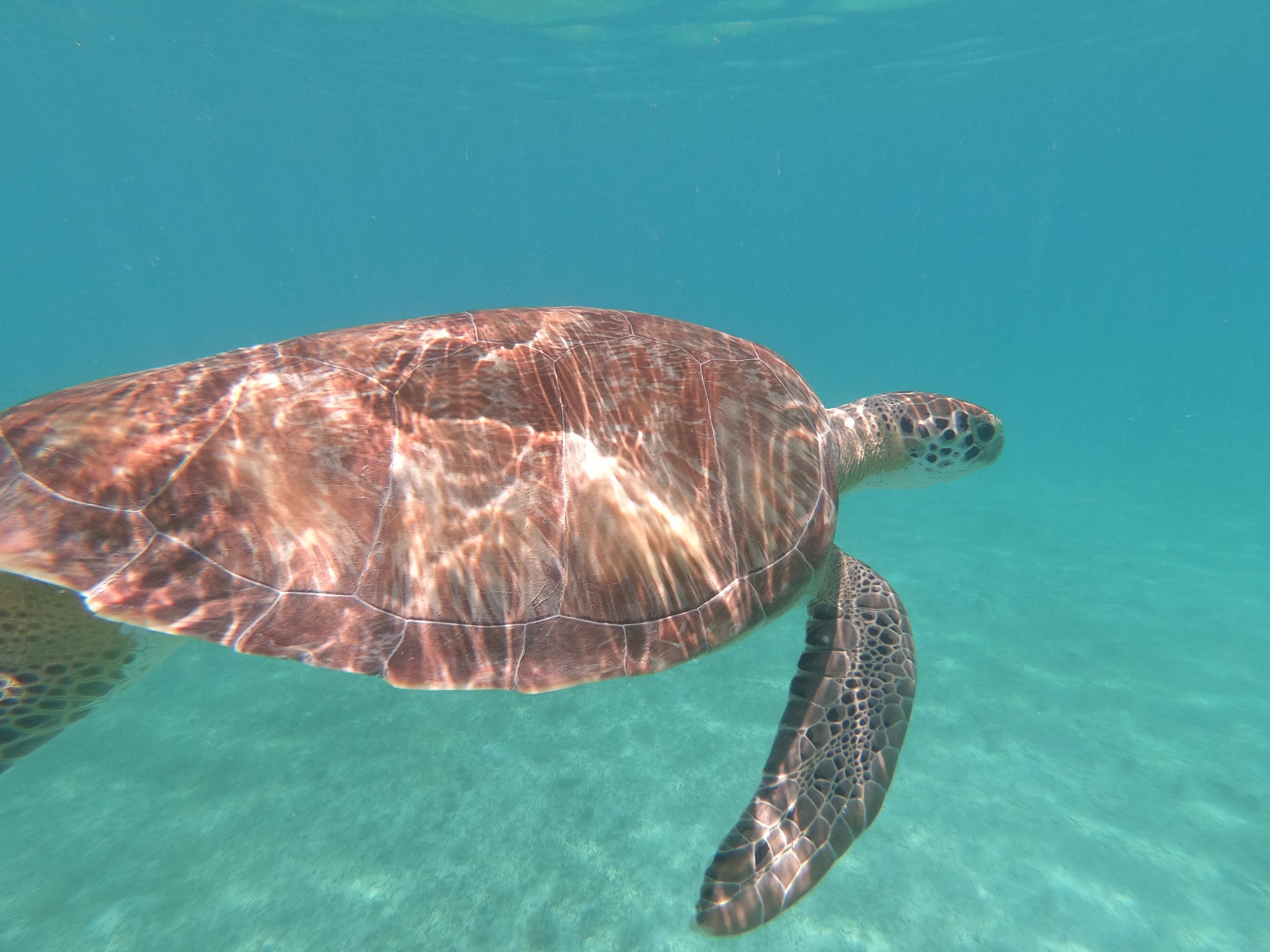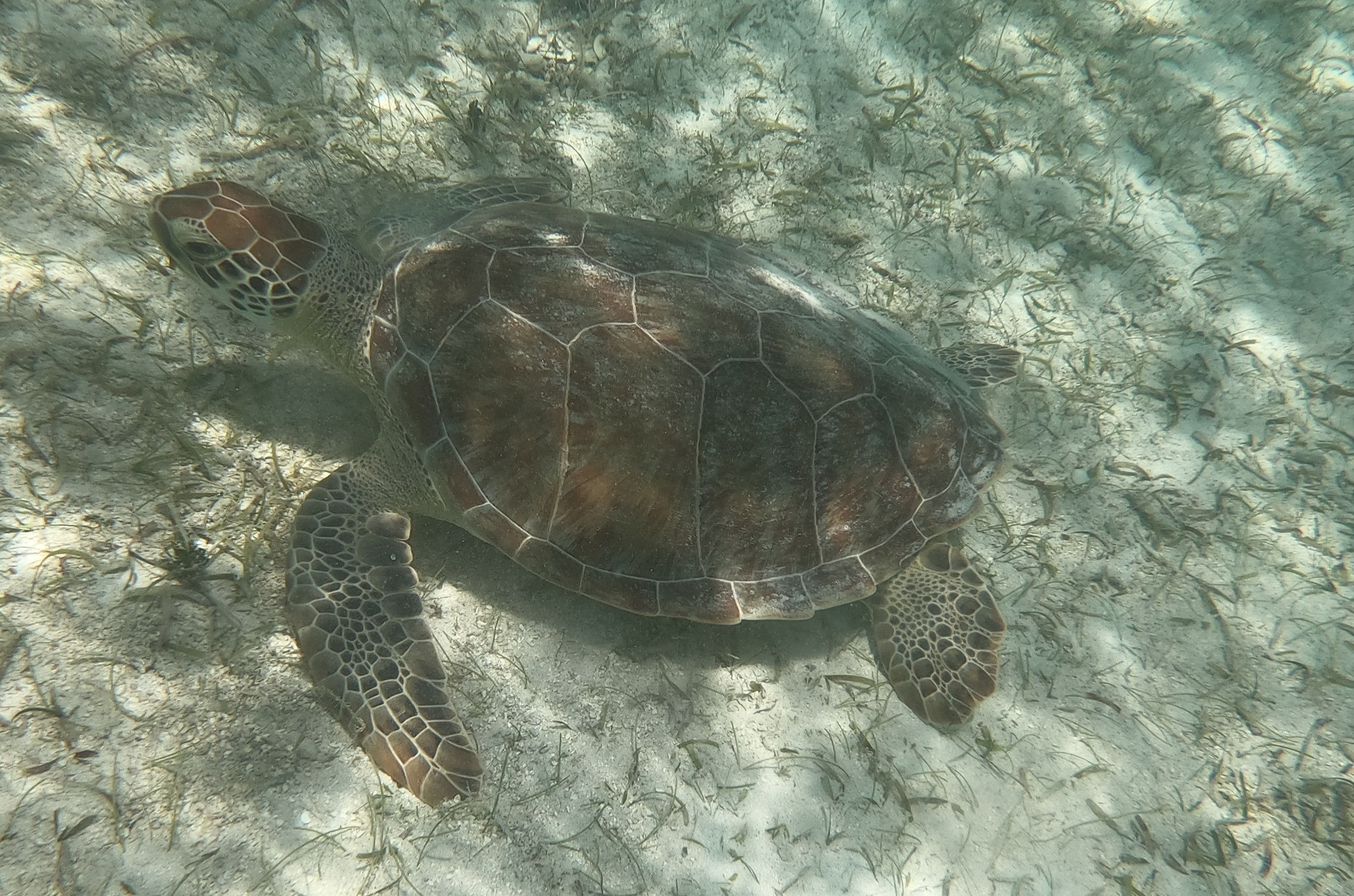 Während sich die Schildkröten selbst durch meine Annäherung per Schnorchel überhaupt nicht stören liessen, wurden die Fische doch etwas nervöser.