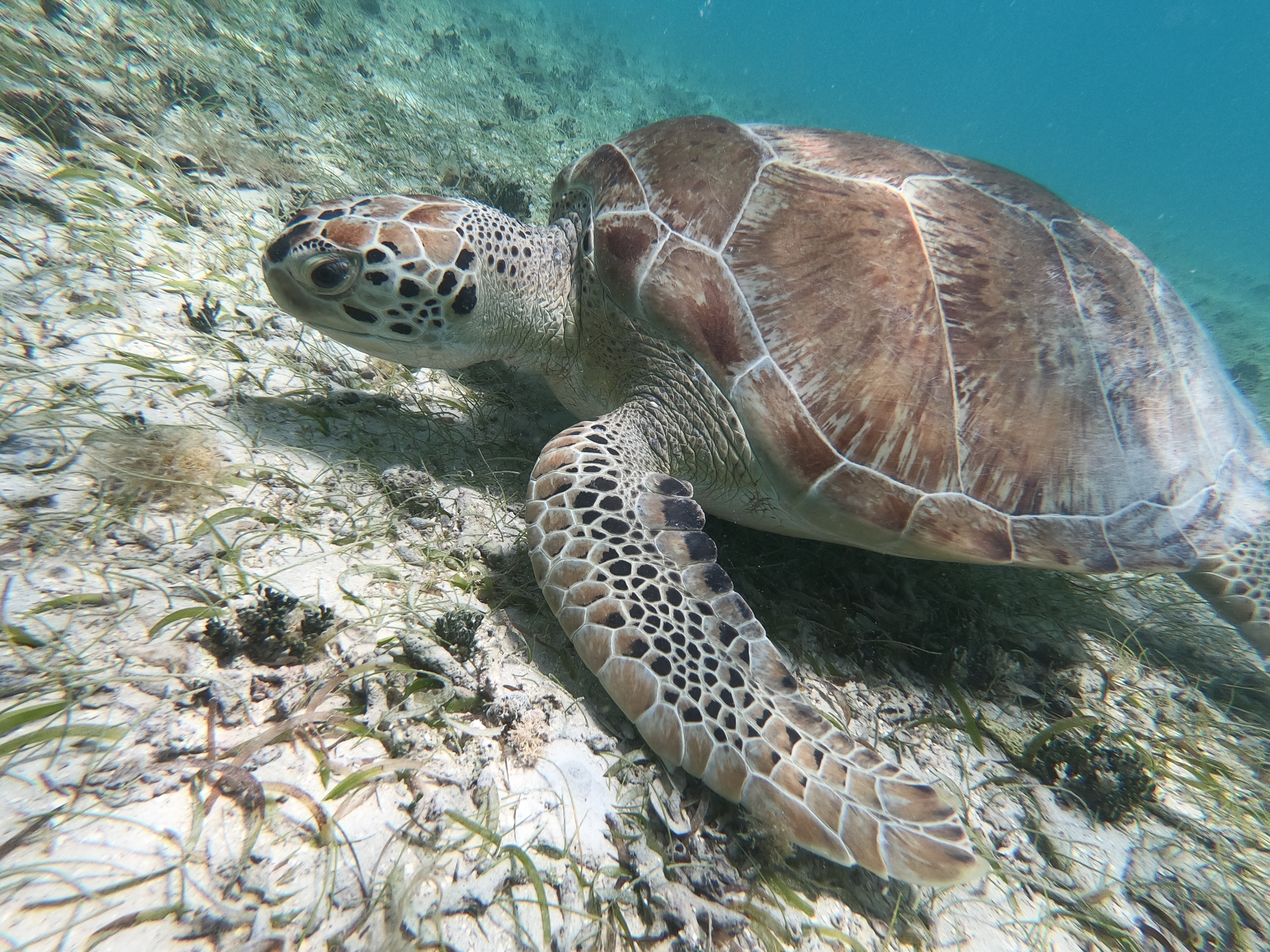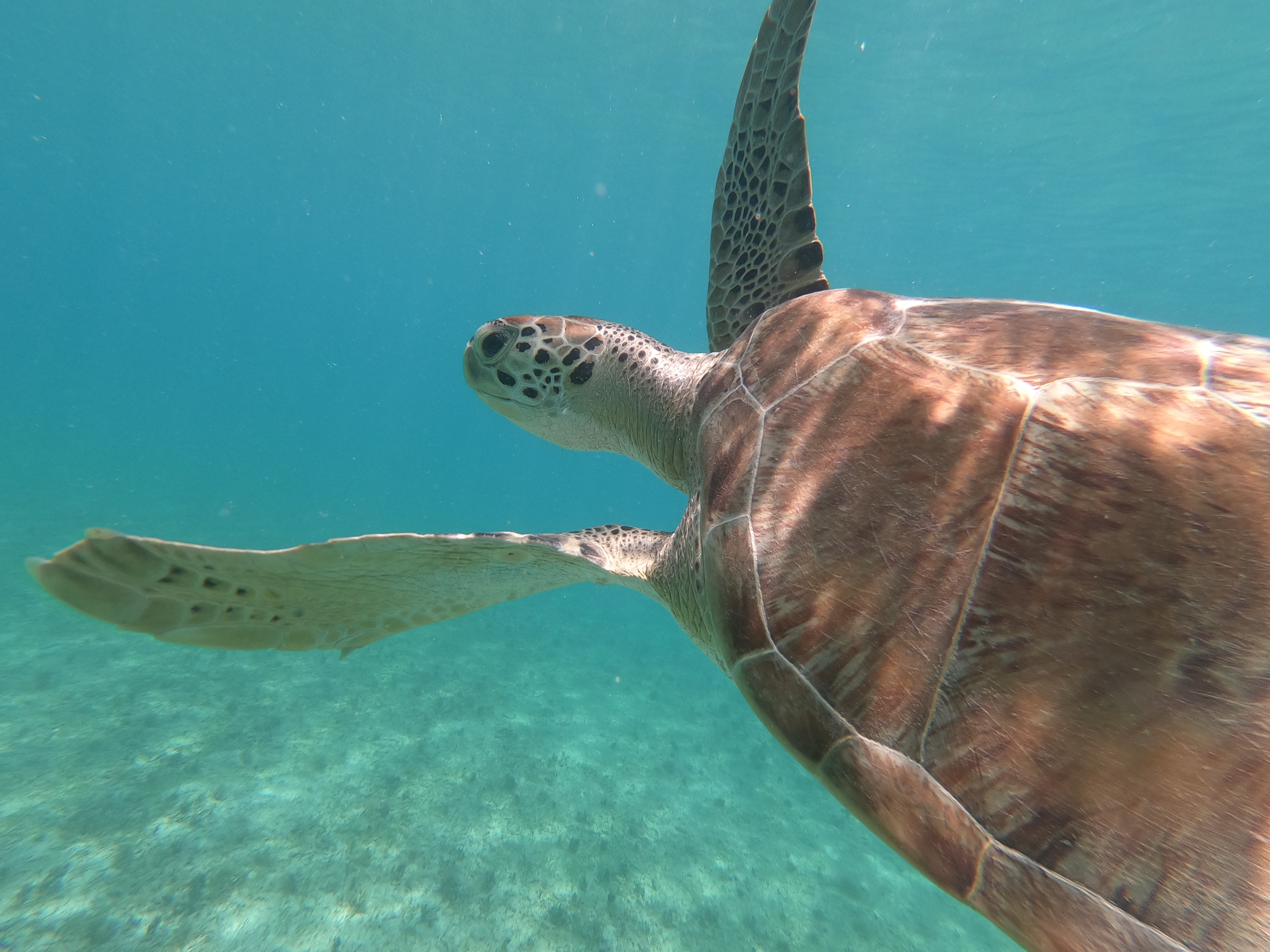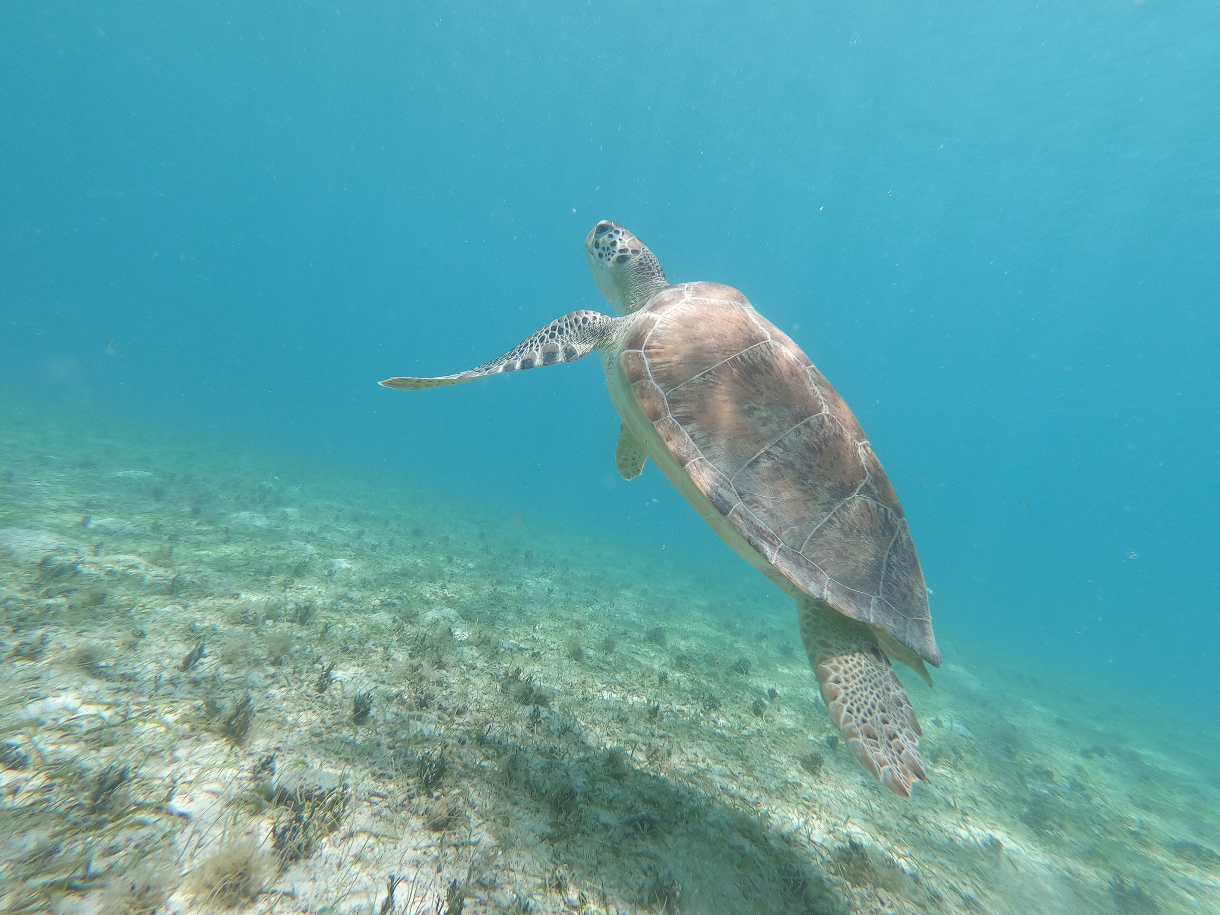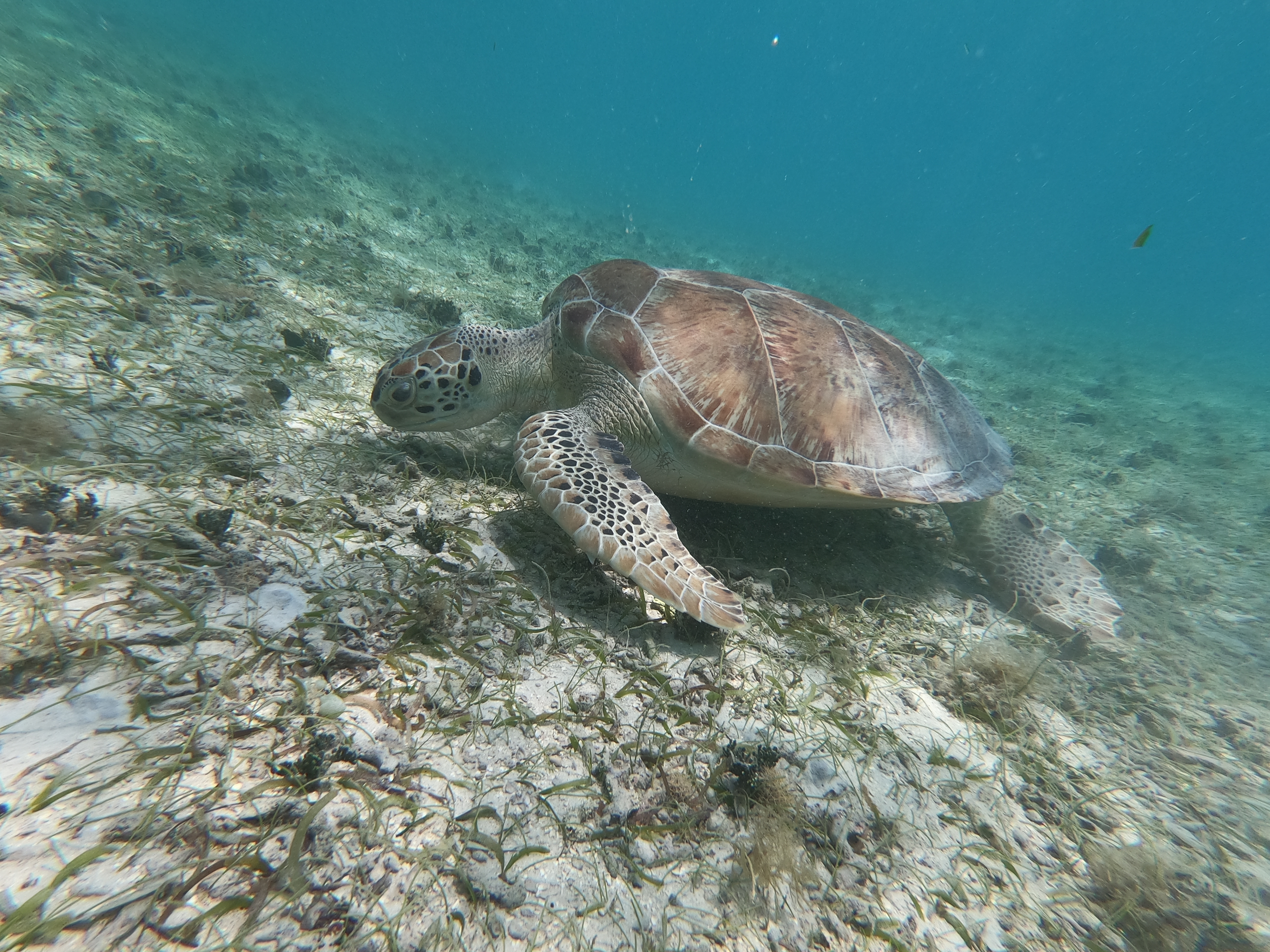 Während sich die Schildkröten selbst durch meine Annäherung per Schnorchel überhaupt nicht stören liessen, wurden die Fische doch etwas nervöser.