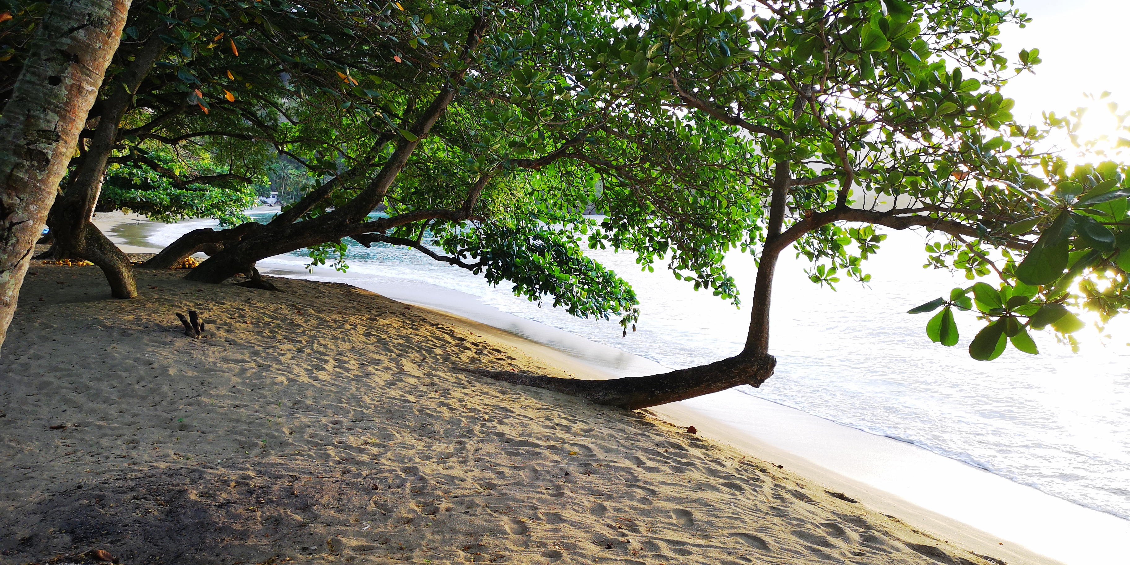 CharlottevilleCharlottevilleAnkerplatz CharlottevilleCharlotteville AnkerplatzStrand von CharlottevilleBlick in den Urwald, am Sandstrand von Charlotteville stehend: Direkt dahinter ist es grün, grün, grün