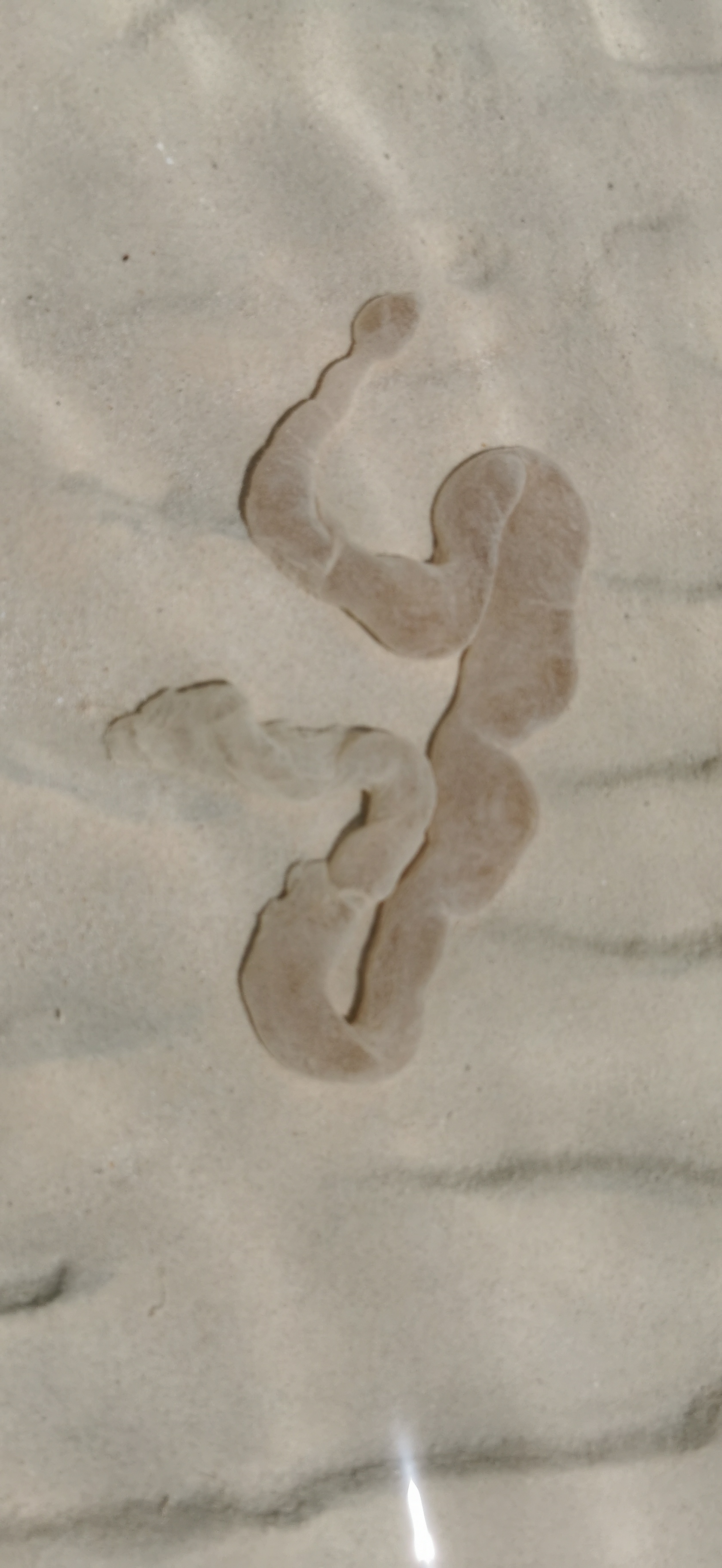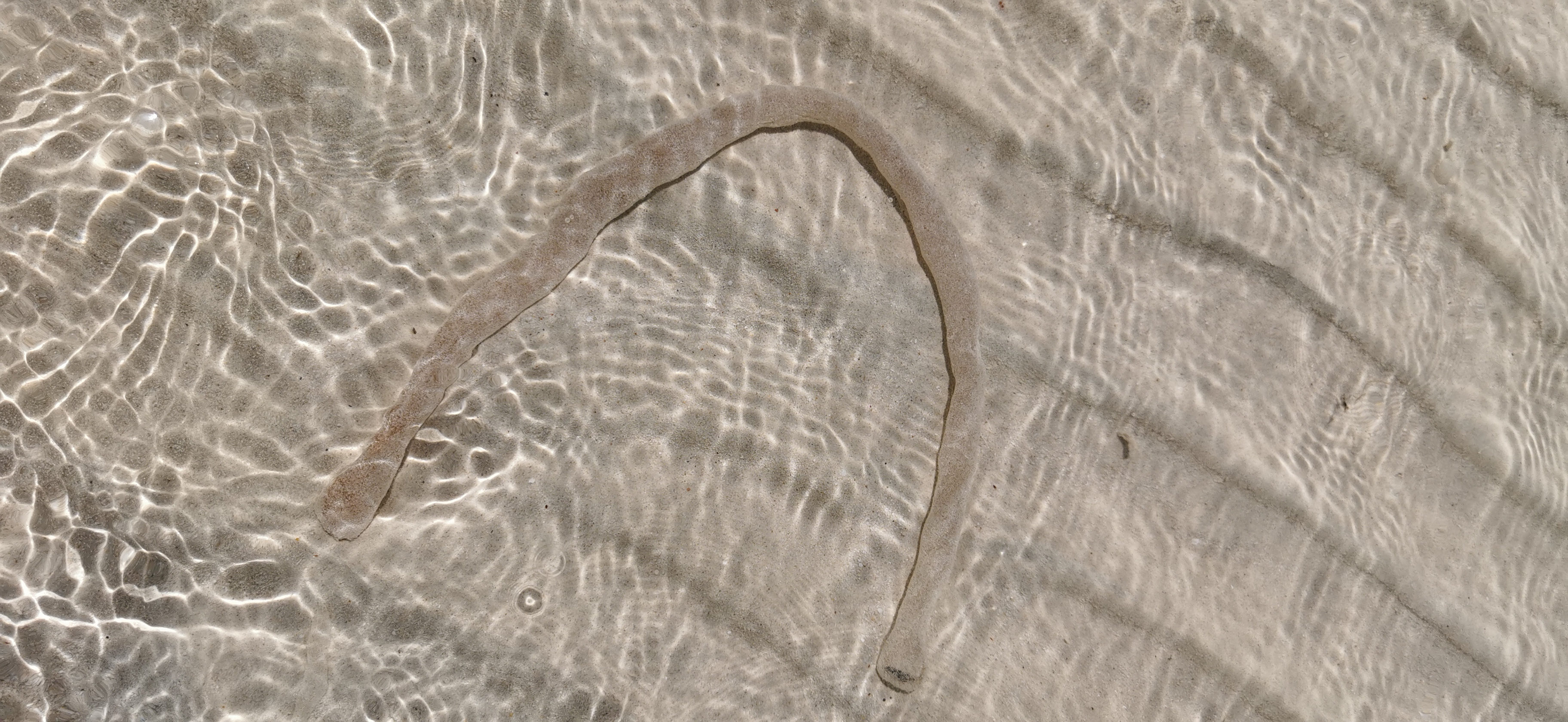 Bereits in der Alabaster Bay fielen uns diese merkwürdigen Schläuche auf. Schlangenförmig, wie eine dünne Haut, an einem Ende im Sand befestigt, während der Rest frei im Wasser schwebte. Eine klare Struktur war nicht zu erkennen.